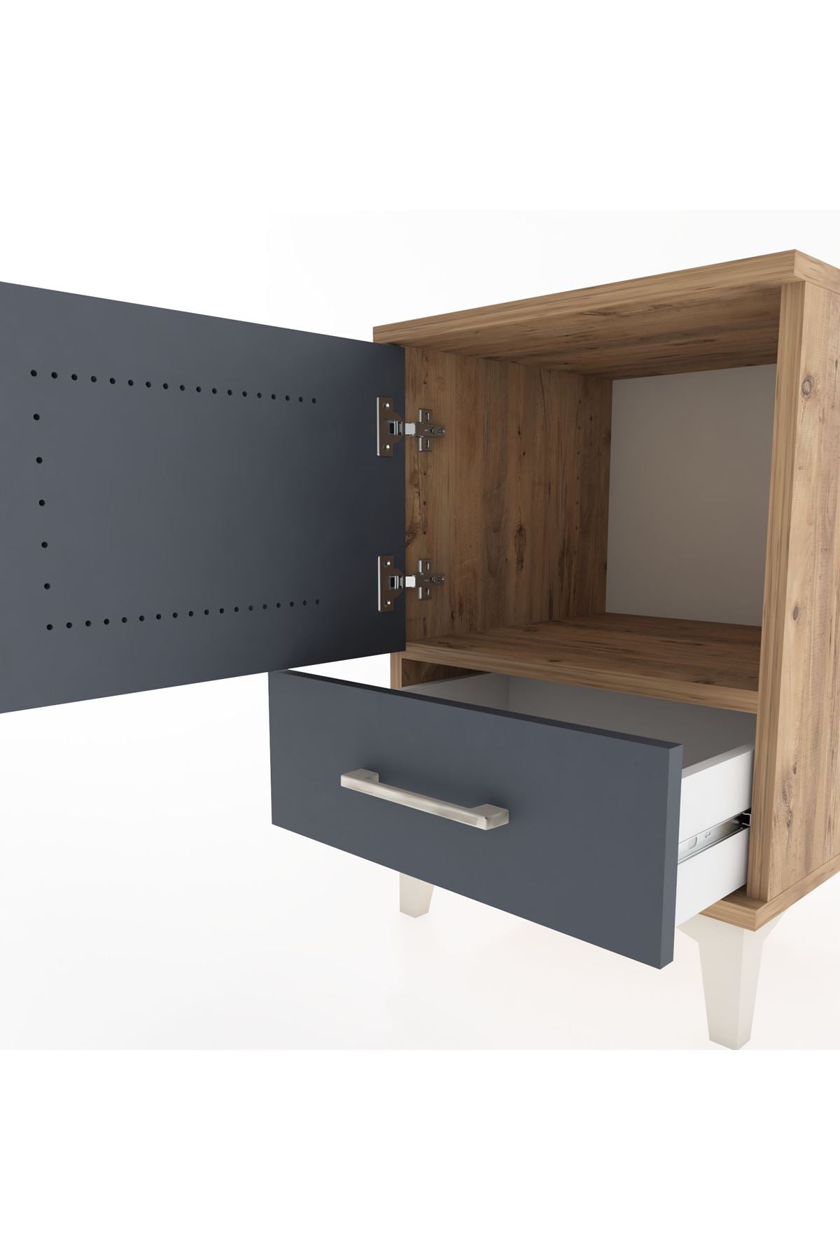 Hyperion Komodin Tek Raflı Tek Çekmeceli Tek Kapaklı 44x44x64 Çam-Antrasit