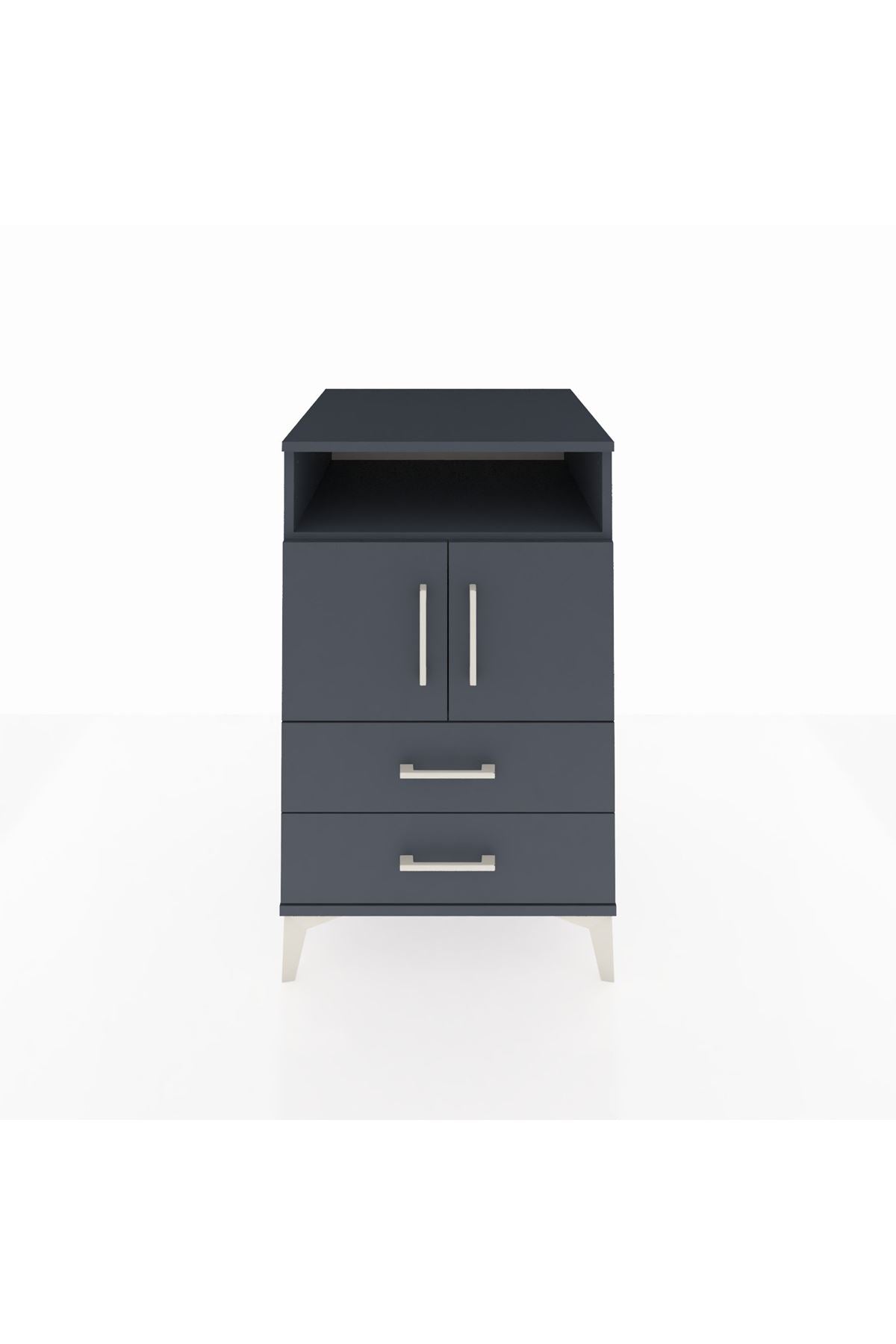 Kronos Komodin 2 Raflı 2 Çekmeceli 2 Kapaklı 60x59x96 Antrasit-Antrasit