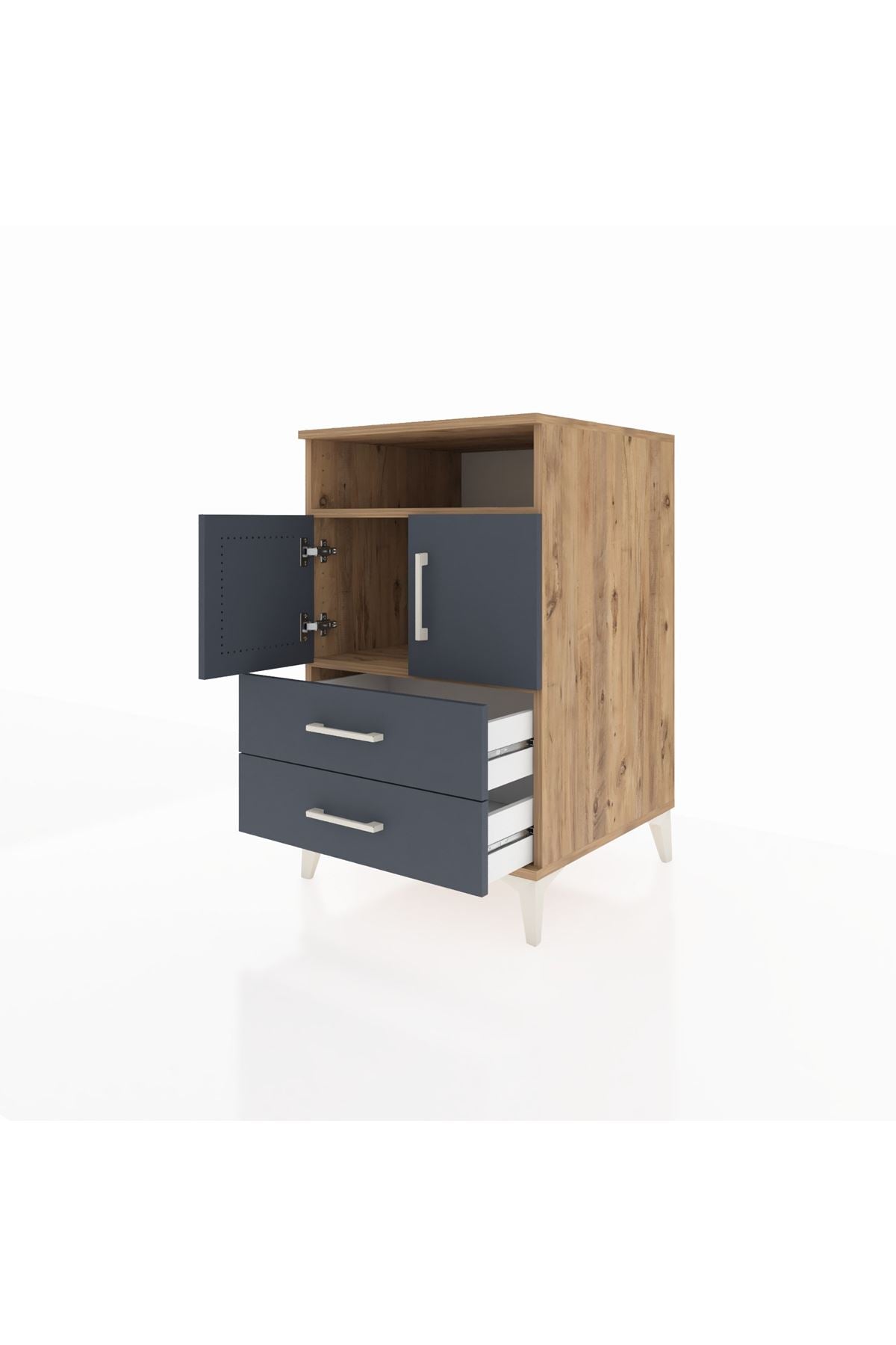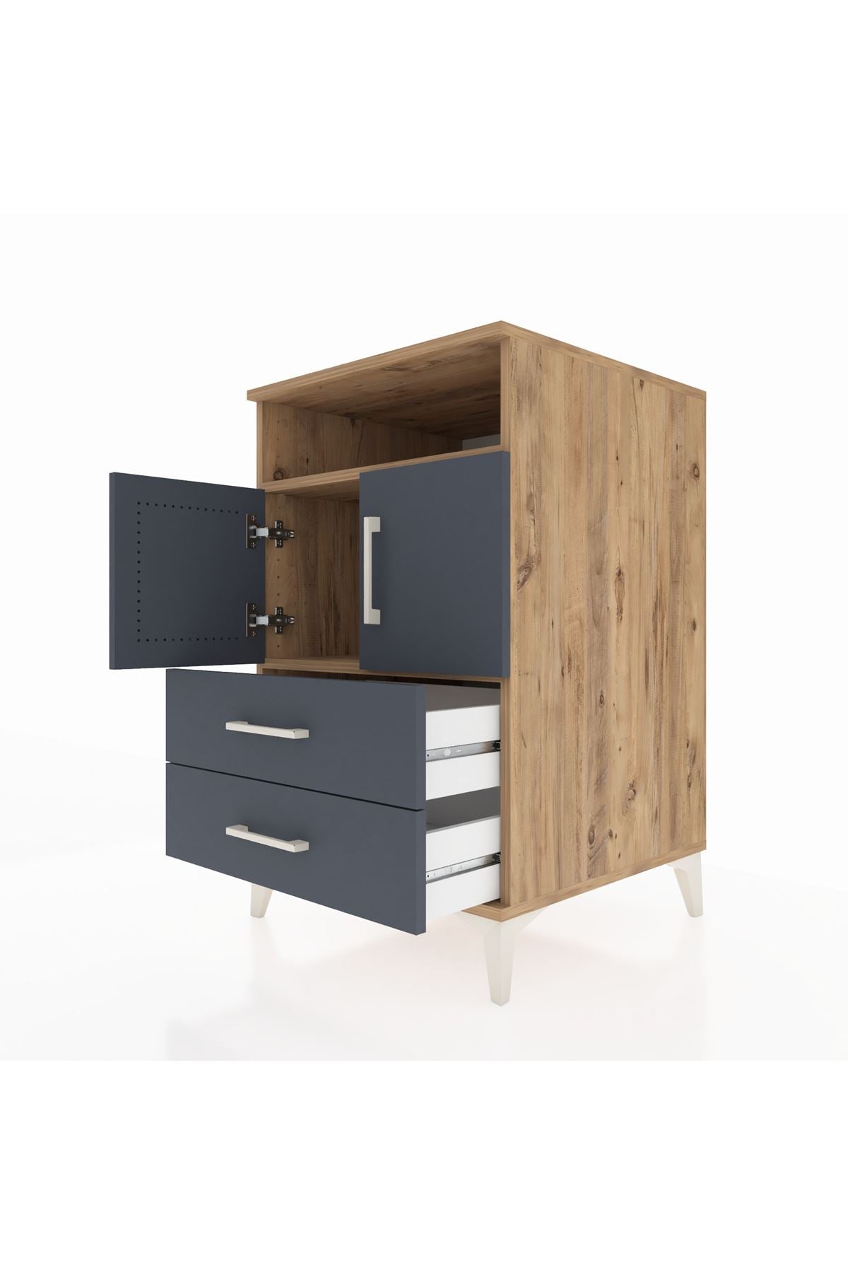 Kronos Komodin 2 Raflı 2 Çekmeceli 2 Kapaklı 60x59x96 Çam-Antrasit