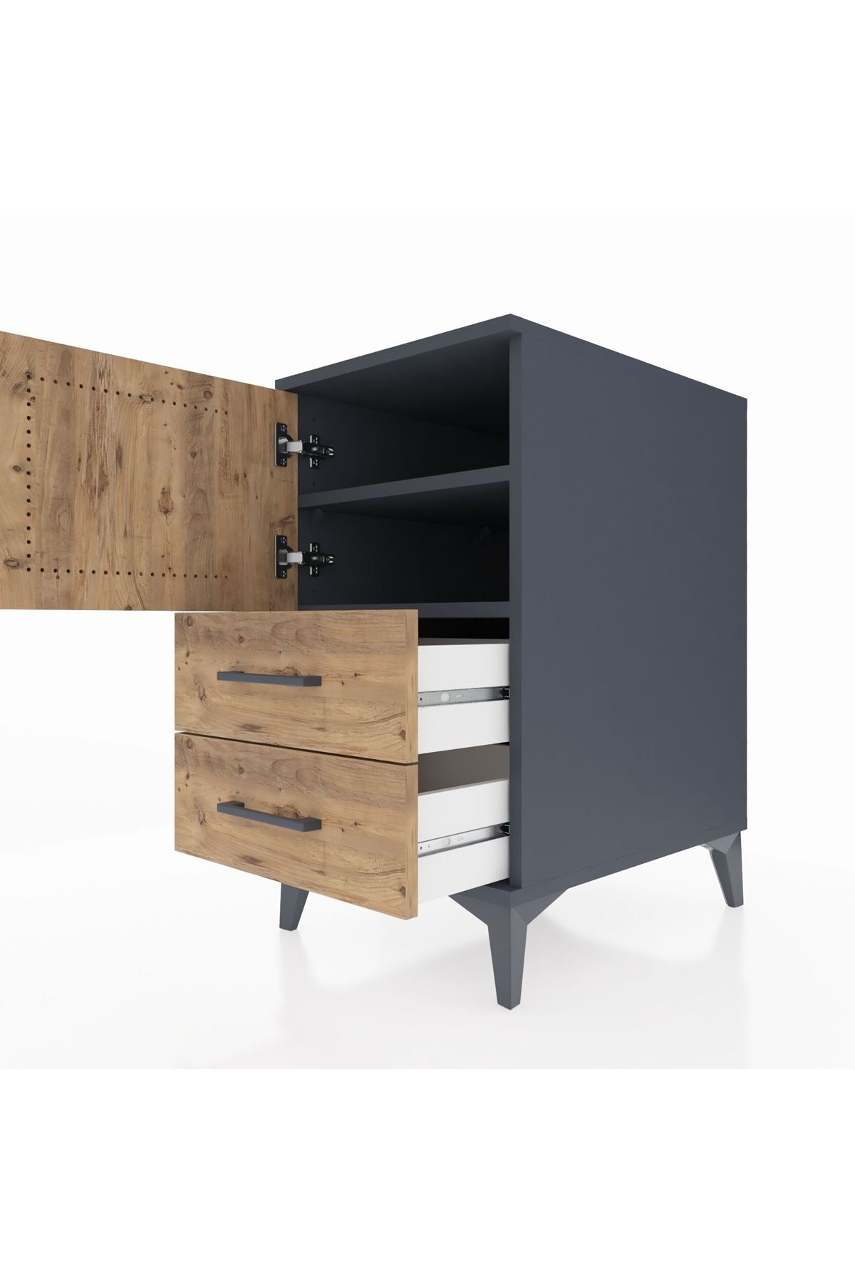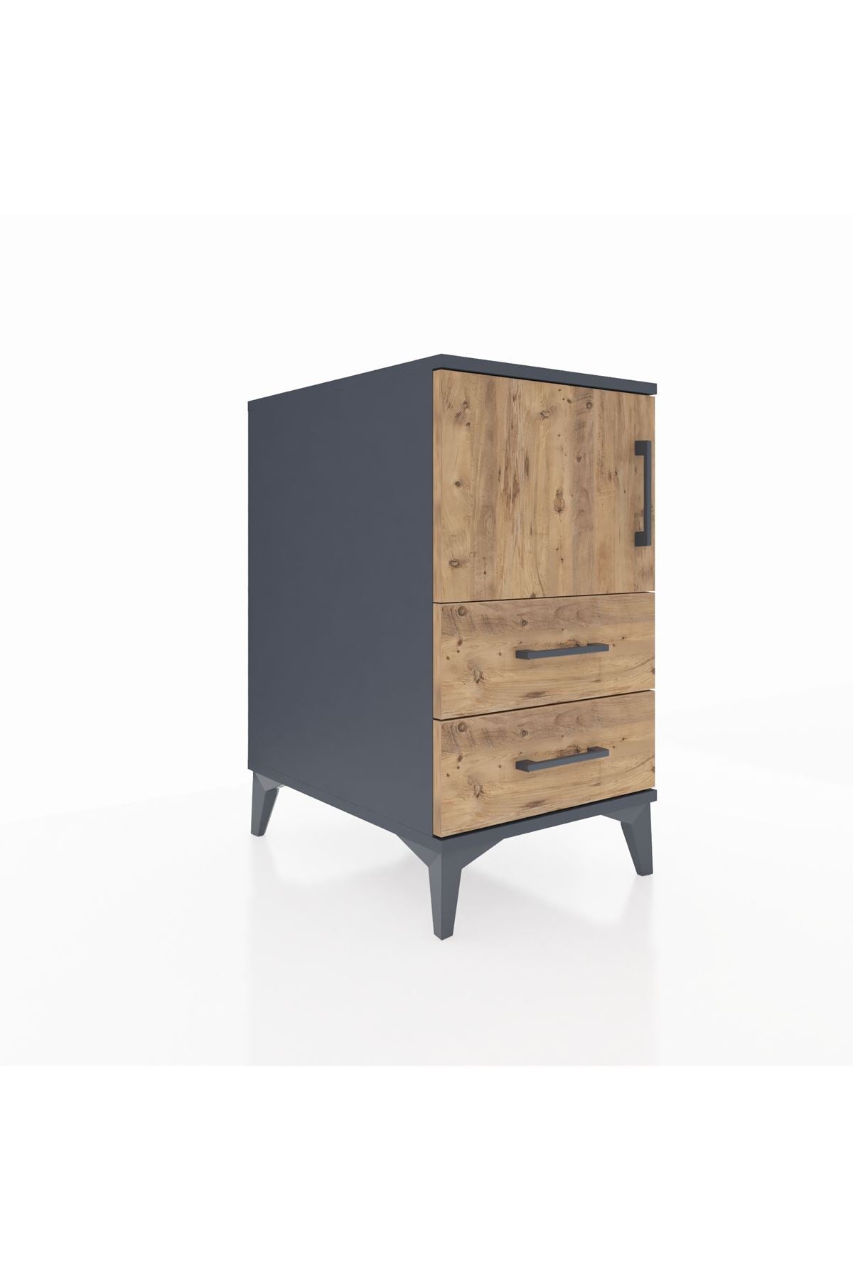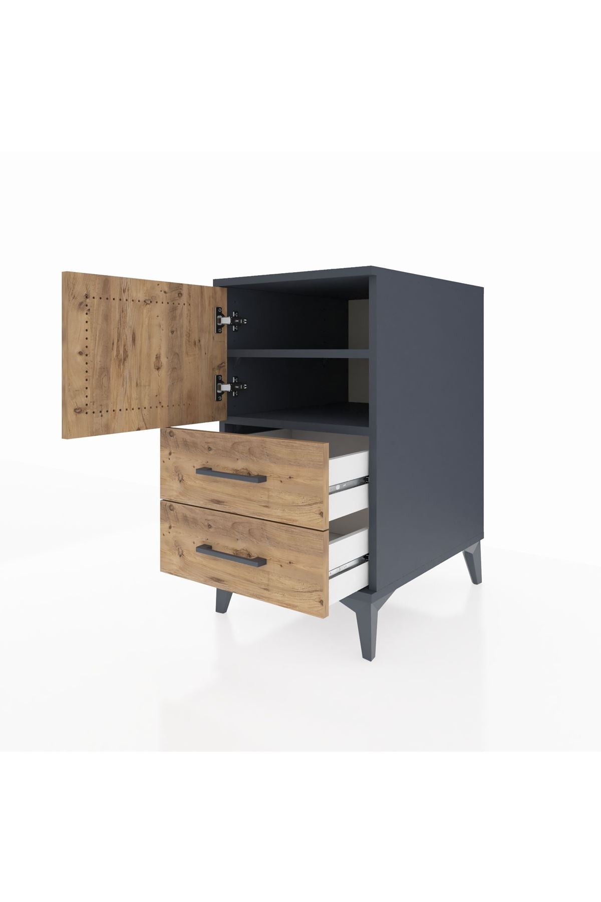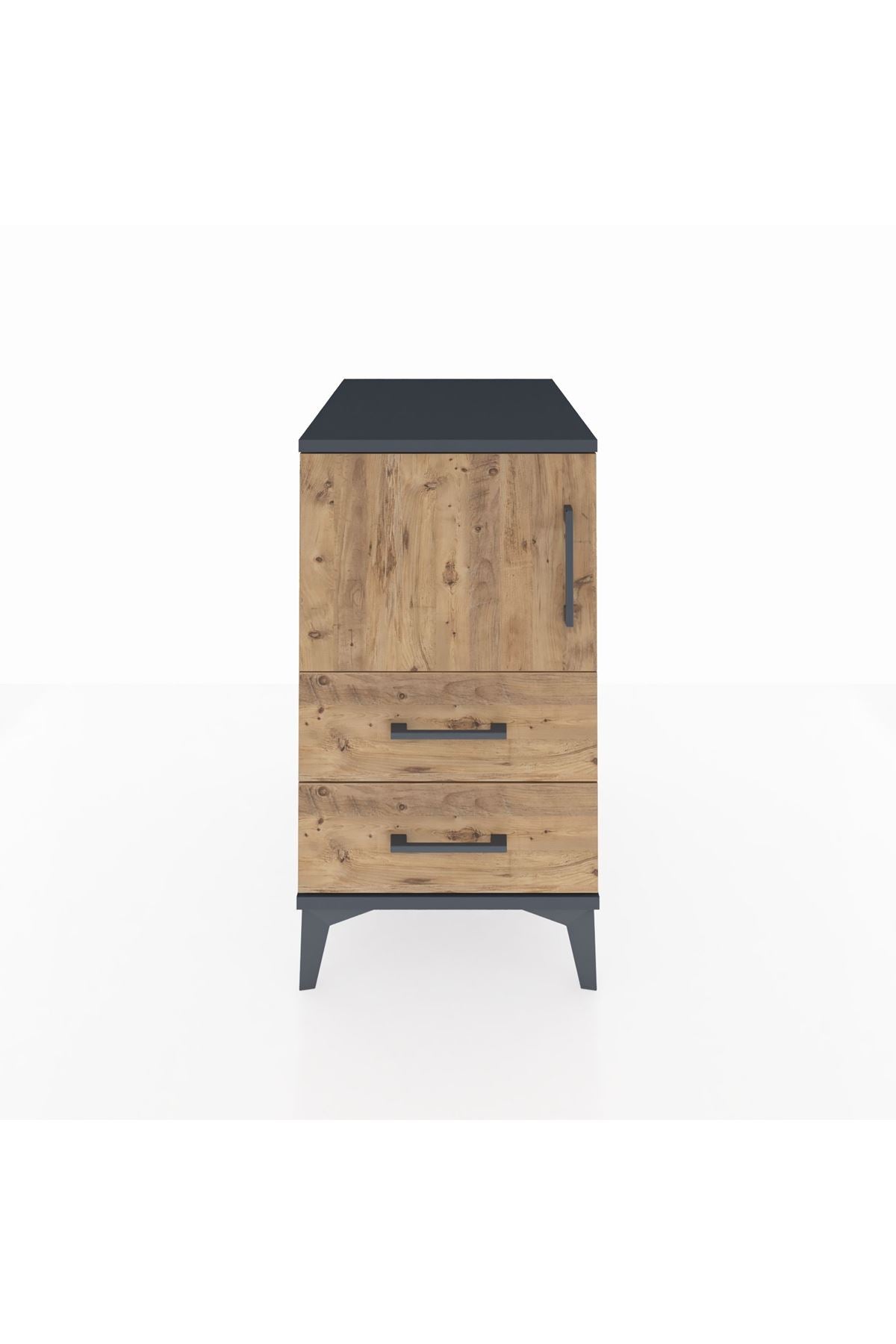 Kronos Komodin 2 Raflı 2 Çekmeceli Tek Kapaklı 44x59x80 Antrasit-Çam