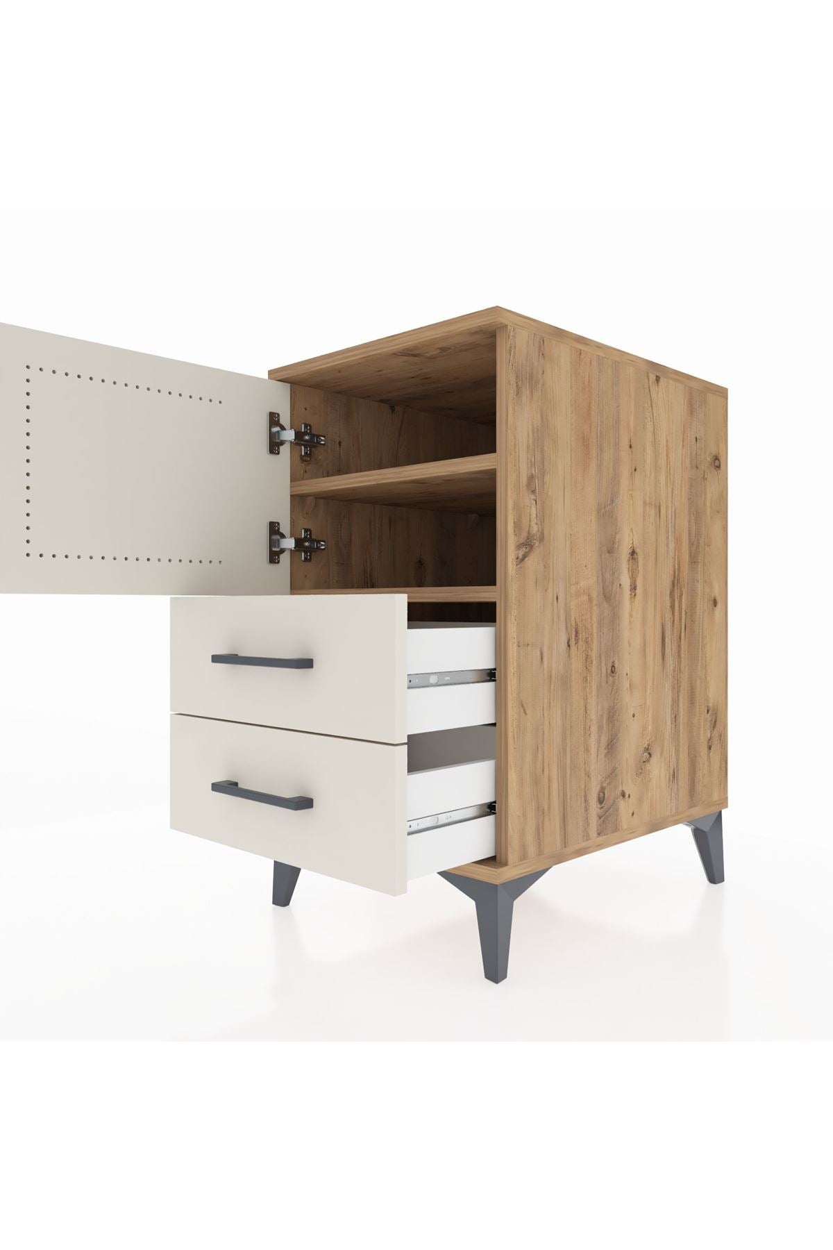 Kronos Komodin 2 Raflı 2 Çekmeceli Tek Kapaklı 44x59x80 Çam-Aytaşı