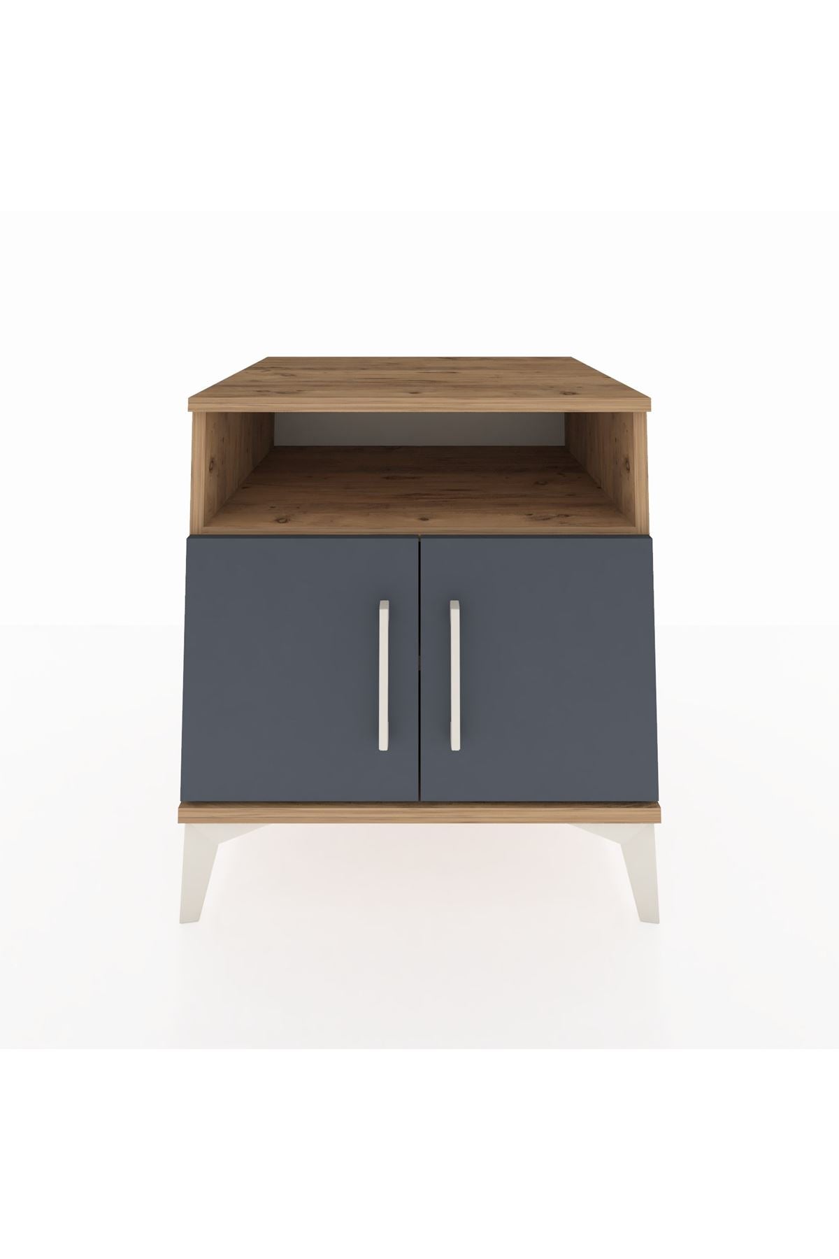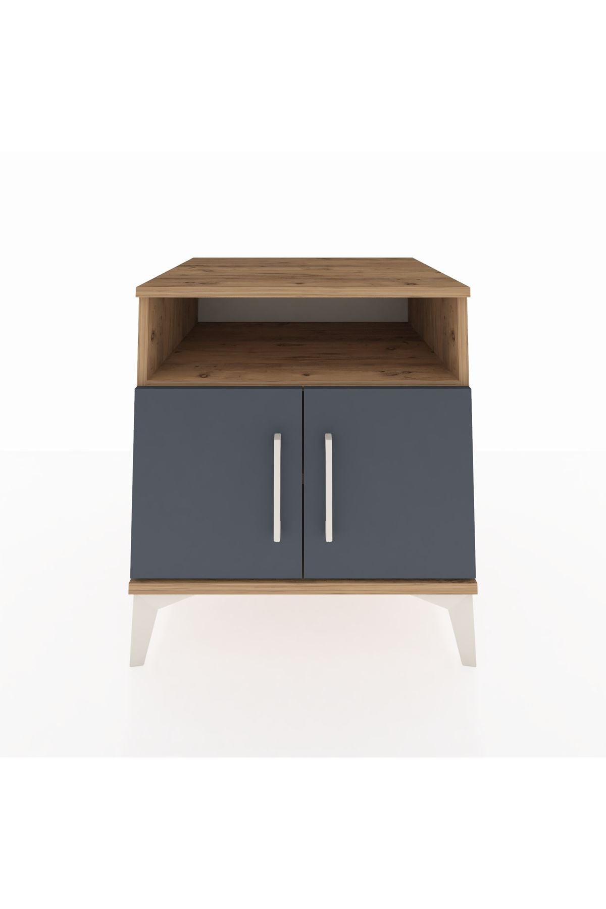 Kronos Komodin 2 Raflı 2 Kapaklı 60x59x64 Çam-Antrasit