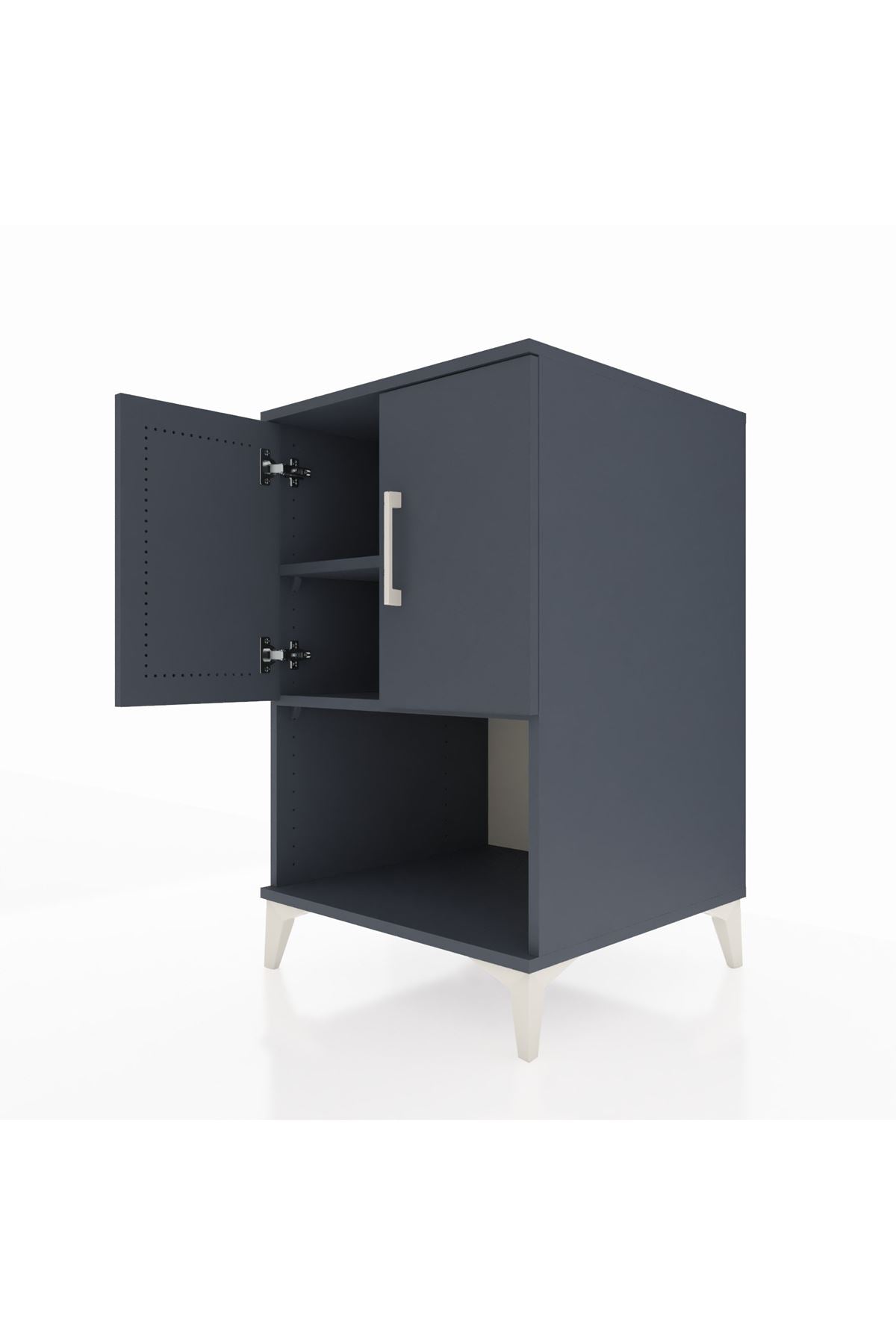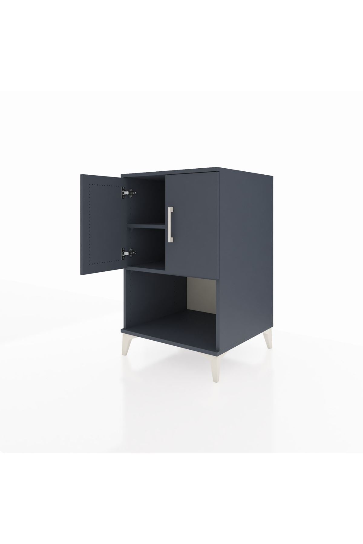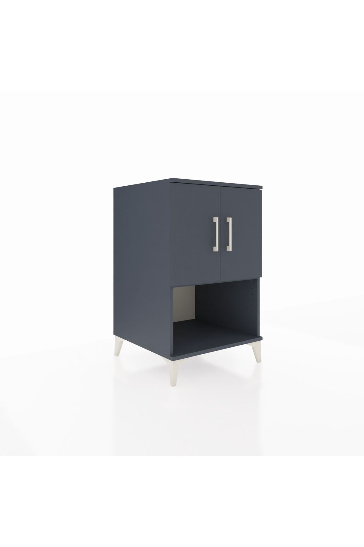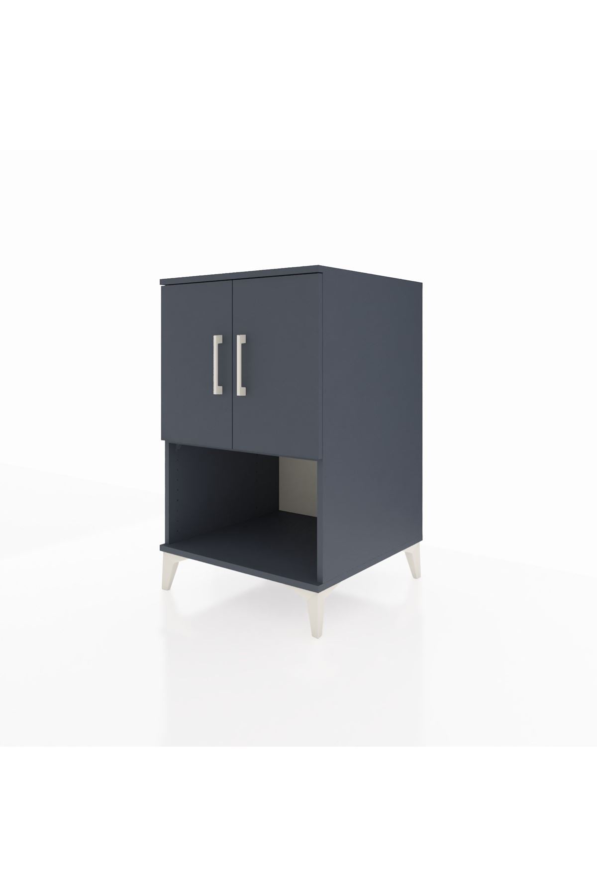 İki kapaklı üst bölme ve genişletilmiş alt raf düzeni sayesinde günlük ihtiyaçlarınızı kolayca sınıflandırabilirsiniz. Ayarlanabilir raf sistemi, kitap, aksesuar veya elektronik cihazların yüksekliğine uygun düzenleme yapma imkânı verir. Çekmece sayısı konfigüre edilebilir özellik sayesinde kişisel tercihinize göre ek çekmece ekleyerek saklama kapasitesini arttırabilirsiniz. Metal ayaklar zeminde sağlam duruş sağlar ve temizliği kolaylaştırır. Komodinin kompakt dikey tasarımı, dar alanlarda bile maksimum depolama sunar.