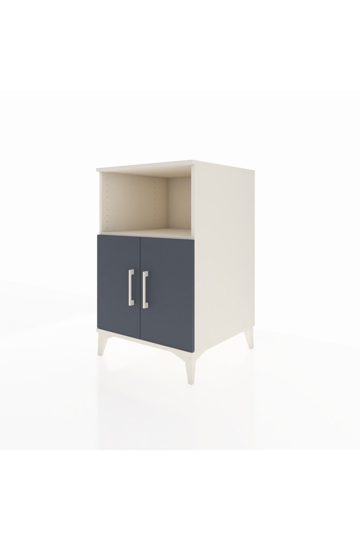 Bu komodin, evinizde düzen ve estetik sağlar. Aytaşı üst yüzeyinin ferah beyaz tonuyla Antrasit kapakların dengeli kontrastı modern bir duruş sunar; Atlas Çam seçeneği ise doğal ahşap dokusunu tercih edenlere sıcak bir alternatif sağlar. Metal ayaklar sağlamlığı ve taban stabilitesini artırırken metal kulplar uzun ömürlü, güvenli açma-kapama imkanı verir. İç kısımda iki raflı düzenleme ile günlük kullanım eşyaları için pratik depolama sunulur; raflar ayarlanabilir olduğundan farklı yüksekliklerde kitap, elektronik veya dekoratif kutular rahatça yerleştirilebilir. İhtiyaca göre çekmece sayısı konfigüre edilebilir, böylece çekmeceli veya raflı kullanım tercihinize göre kolayca özelleştirme yapılabilir.
