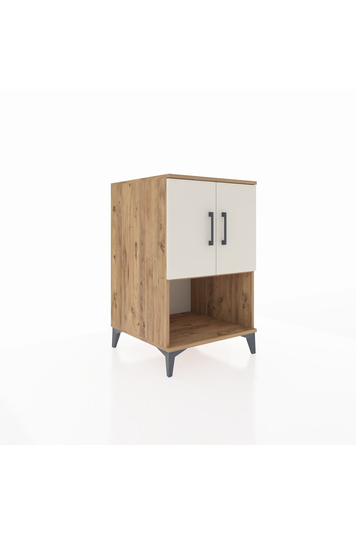 Kompakt ölçüleriyle dar alanlarda bile geniş depolama olanağı sağlar. İki açık raf ve iki kapaklı bölme günlük eşyalarınızı, kitapları ve gece ihtiyaçlarınızı düzenli tutar. Ayarlanabilir raf sistemi sayesinde saklama yüksekliğini ihtiyaca göre değiştirebilirsiniz. Çekmece sayısı konfigüre edilebilir özelliğiyle kişiselleştirilebilir kullanım sunar. Yüzey dayanıklılığı ve kolay temizlenebilirlik günlük hijyen sağlarken, metal donanım mobilyaya ekstra stabilite katar.