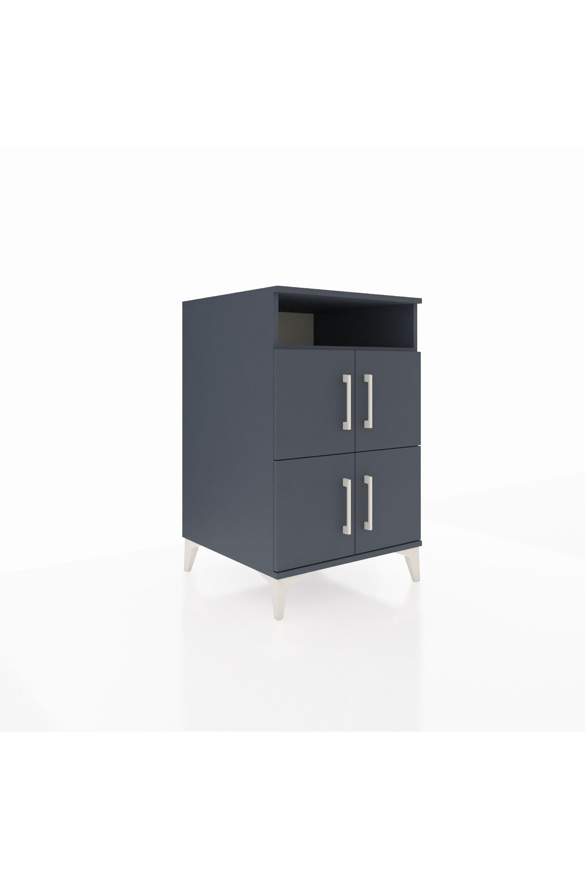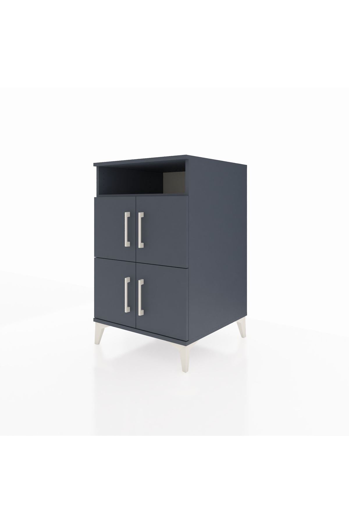Bu komodin, evinizde düzen ve kullanım kolaylığı sağlar. Antrasit renk seçeneği modern ve sakin bir atmosfer sunar; düz hatları ve mat yüzeyi ile birçok dekorasyon stiline uyum gösterir. Metal ayakları sağlamlık ve uzun ömür sunar, metal kulplar ergonomik tutuş ve estetik bir dokunuş sağlar. İç bölümde yer alan iki raf ayarlanabilir yapısıyla farklı yüksekliklerde depolama imkanı verir; üst bölme, kitap, gece lambası veya telefon şarj istasyonu olarak kullanılmaya uygundur. Dört kapaklı düzen, eşyalarınızı göz önünden saklarken kolay erişim sağlar. Çekmece sayısı konfigüre edilebilir; ihtiyaca göre ekstra çekmece eklenebilir veya mevcut düzen yeniden organize edilebilir.