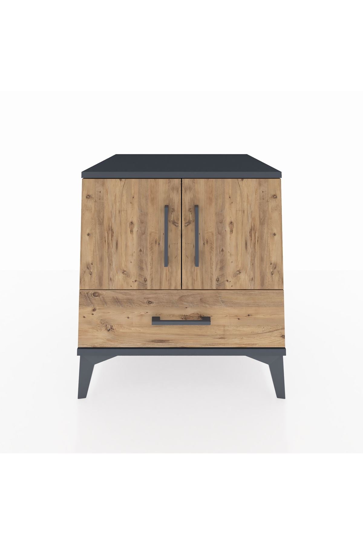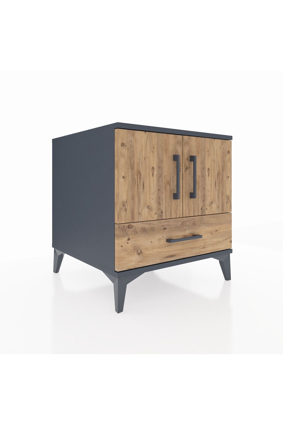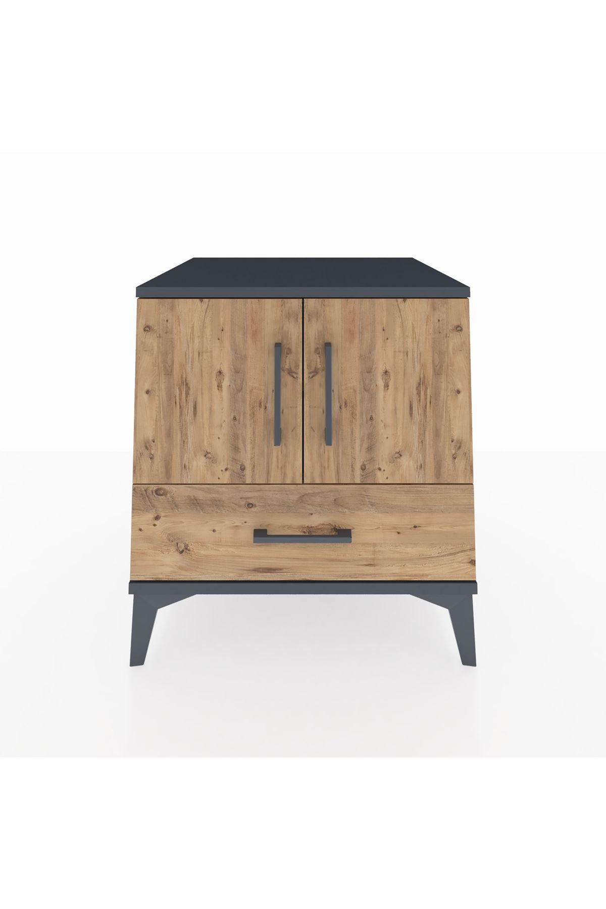 Kronos Komodin 2 Raflı Tek Çekmeceli 2 Kapaklı 60x59x64 Antrasit-Çam