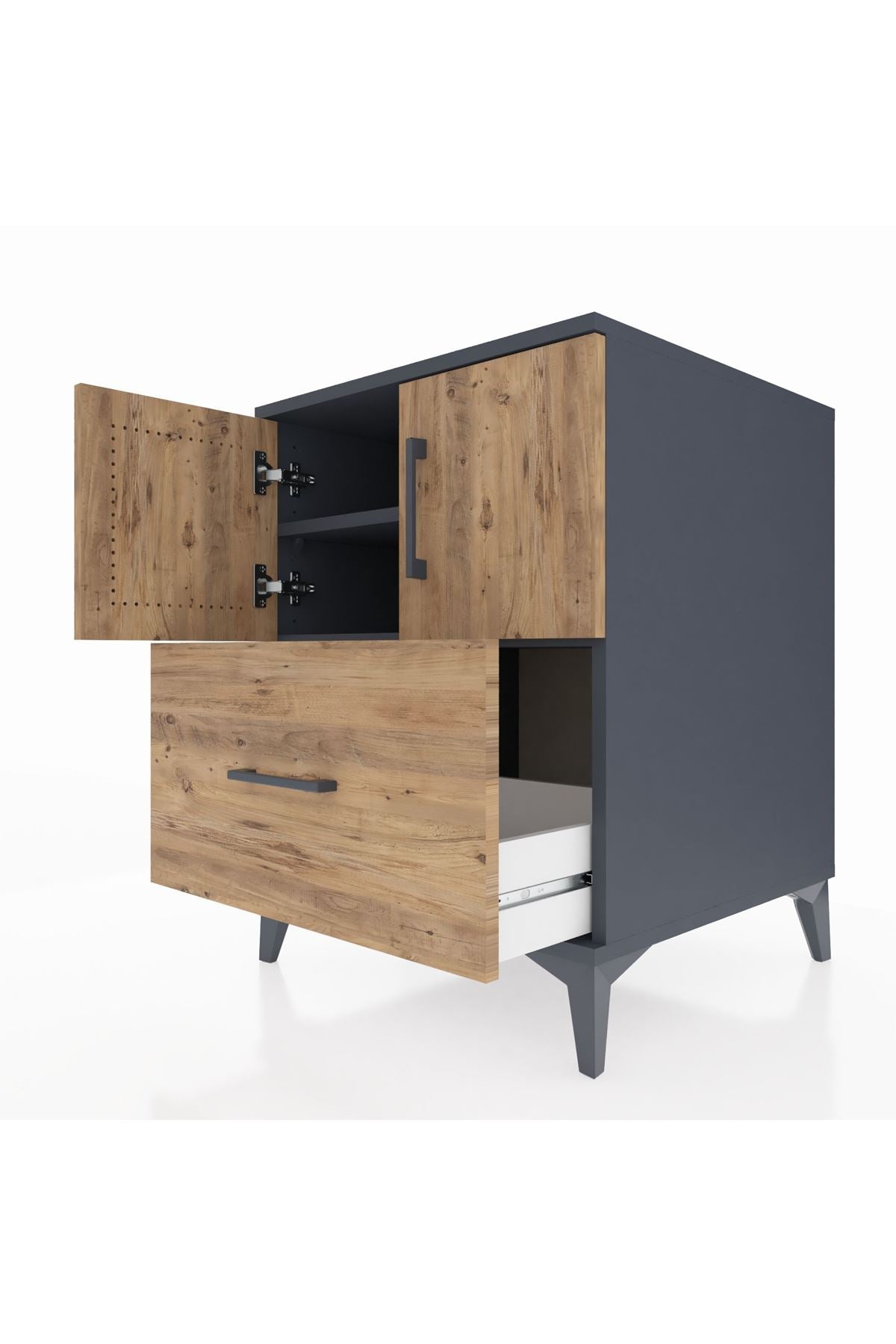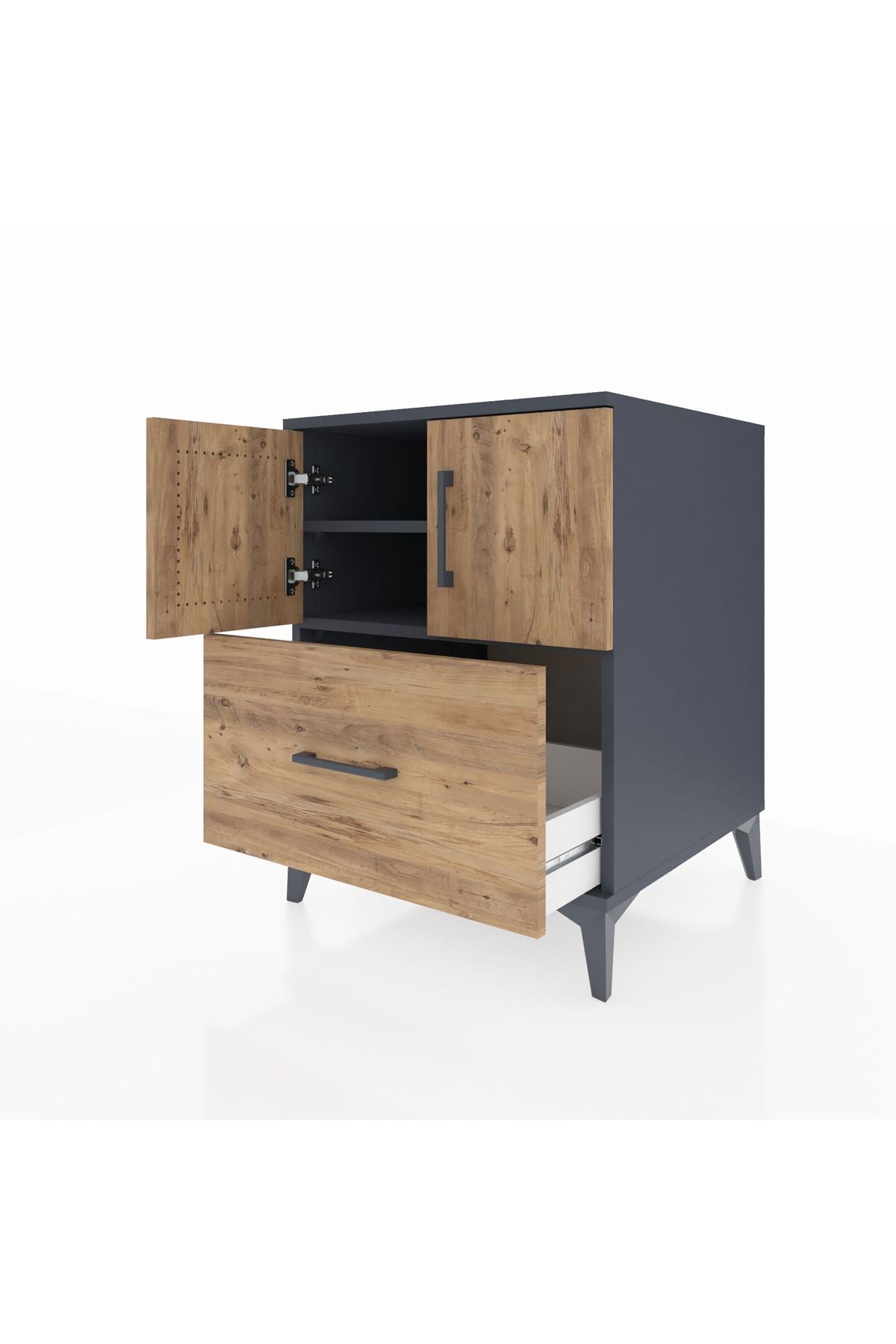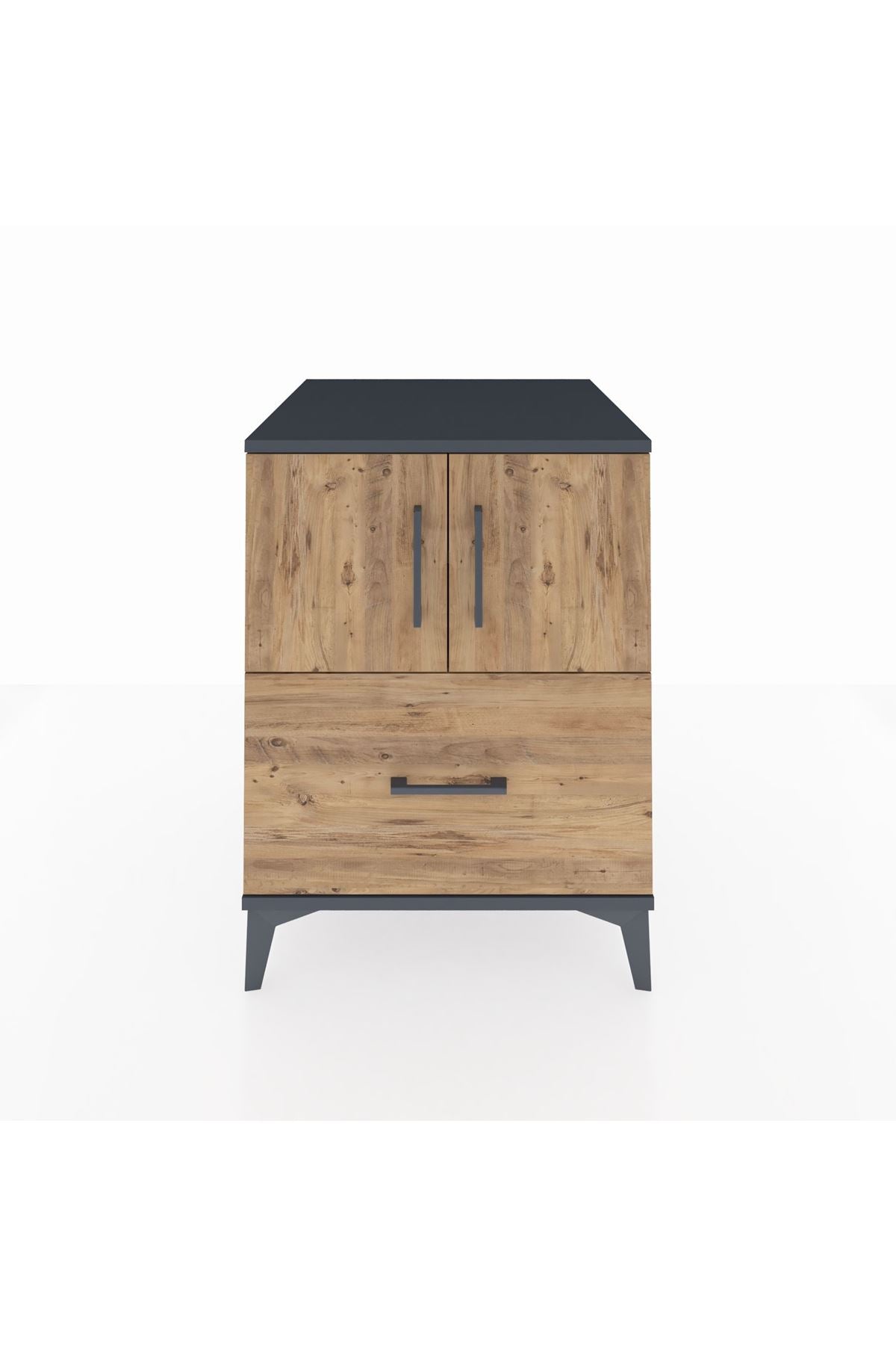Kronos Komodin 2 Raflı Tek Çekmeceli 2 Kapaklı 60x59x80 Antrasit-Çam