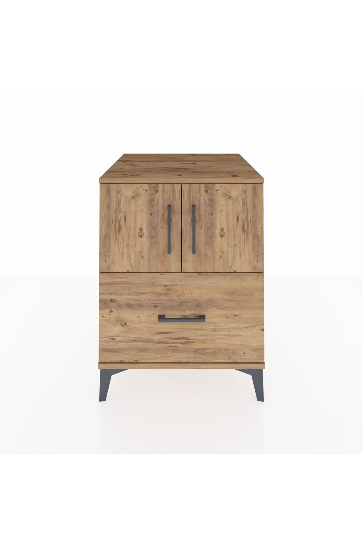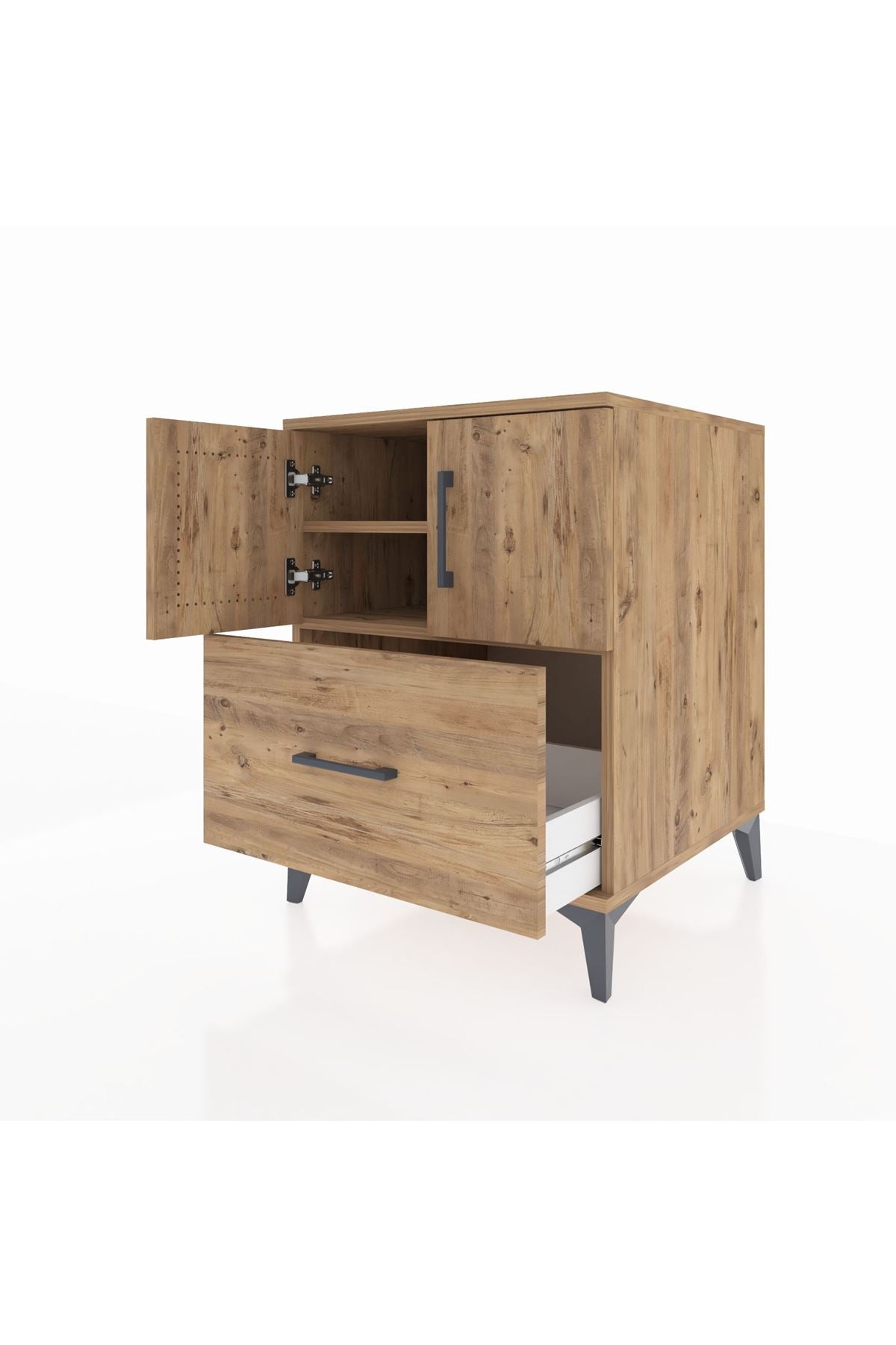 Kronos Komodin 2 Raflı Tek Çekmeceli 2 Kapaklı 60x59x80 Çam-Çam