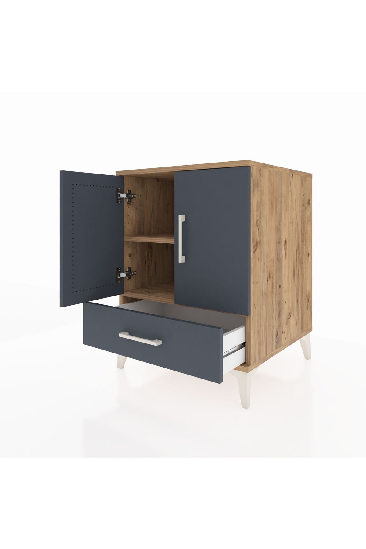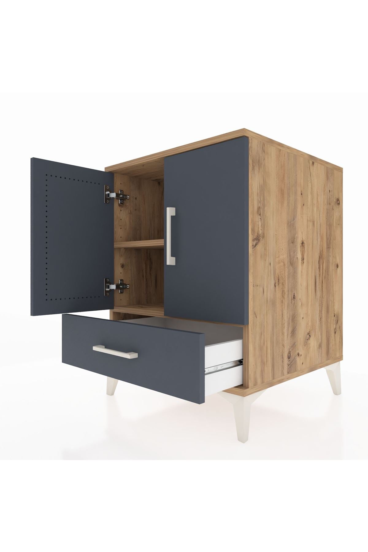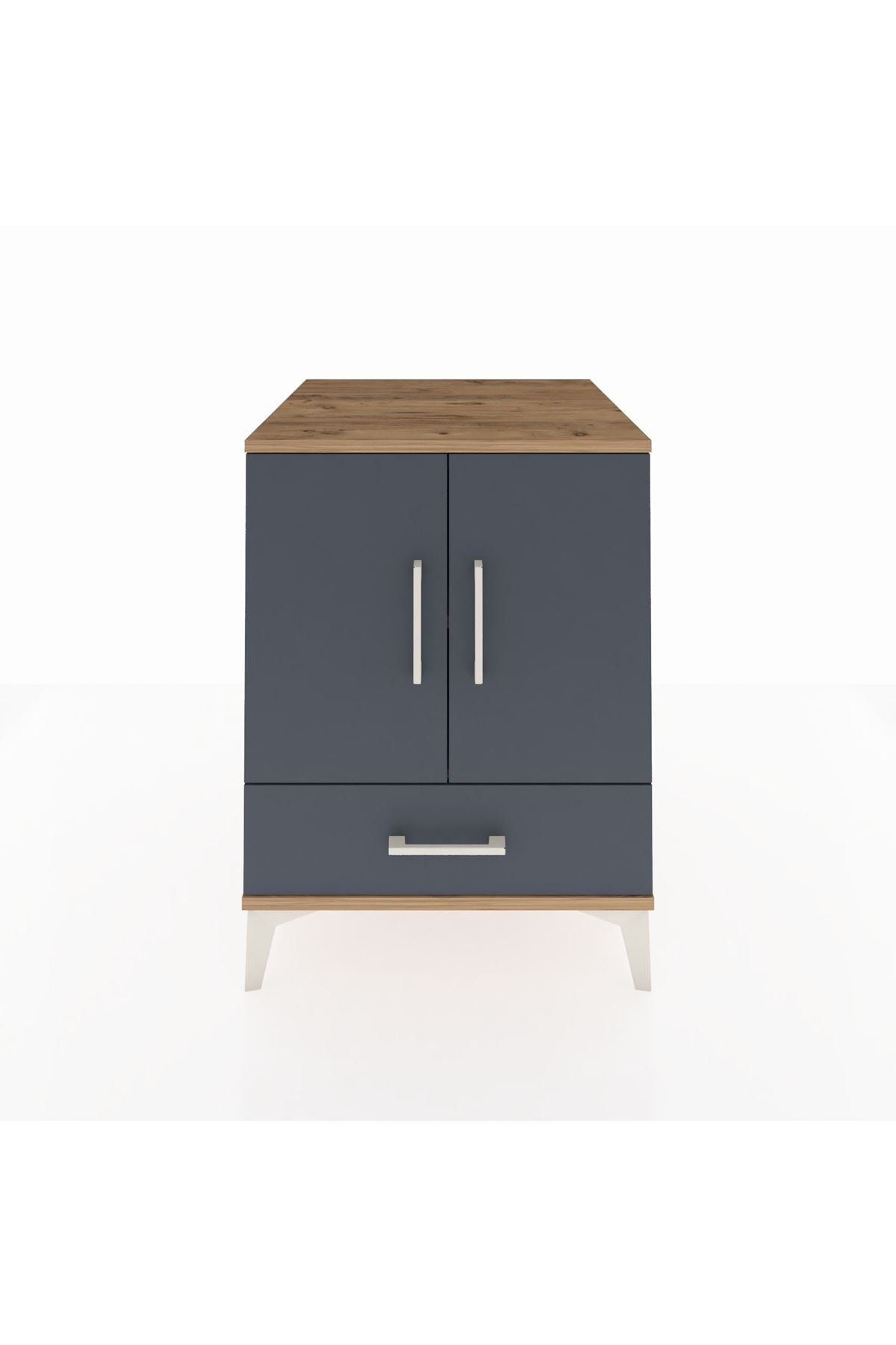 Kronos Komodin 2 Raflı Tek Çekmeceli 2 Kapaklı 60x59x80 Çam-Antrasit