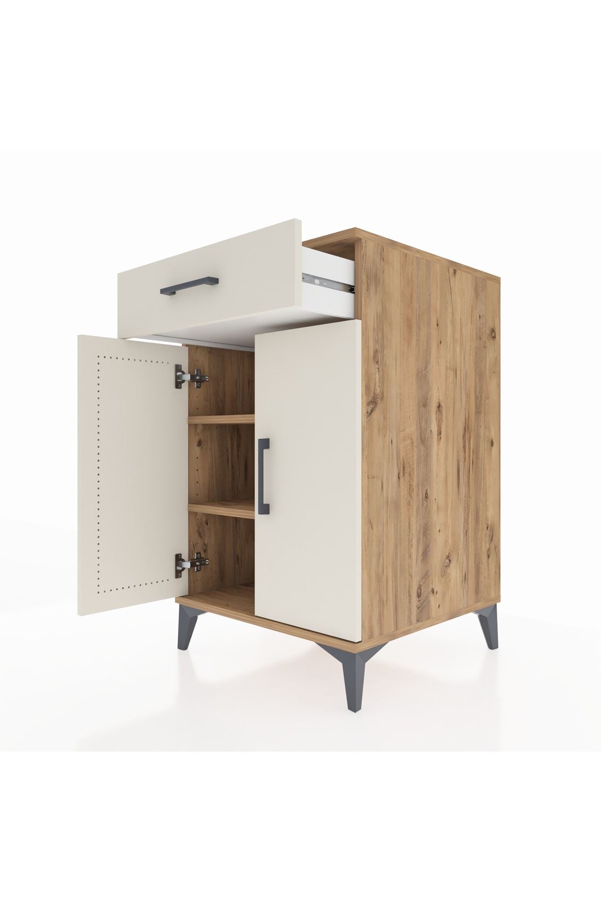 Kronos Komodin 2 Raflı Tek Çekmeceli 2 Kapaklı 60x59x96 Çam-Aytaşı – Fonksiyonel ve Şık Depolama