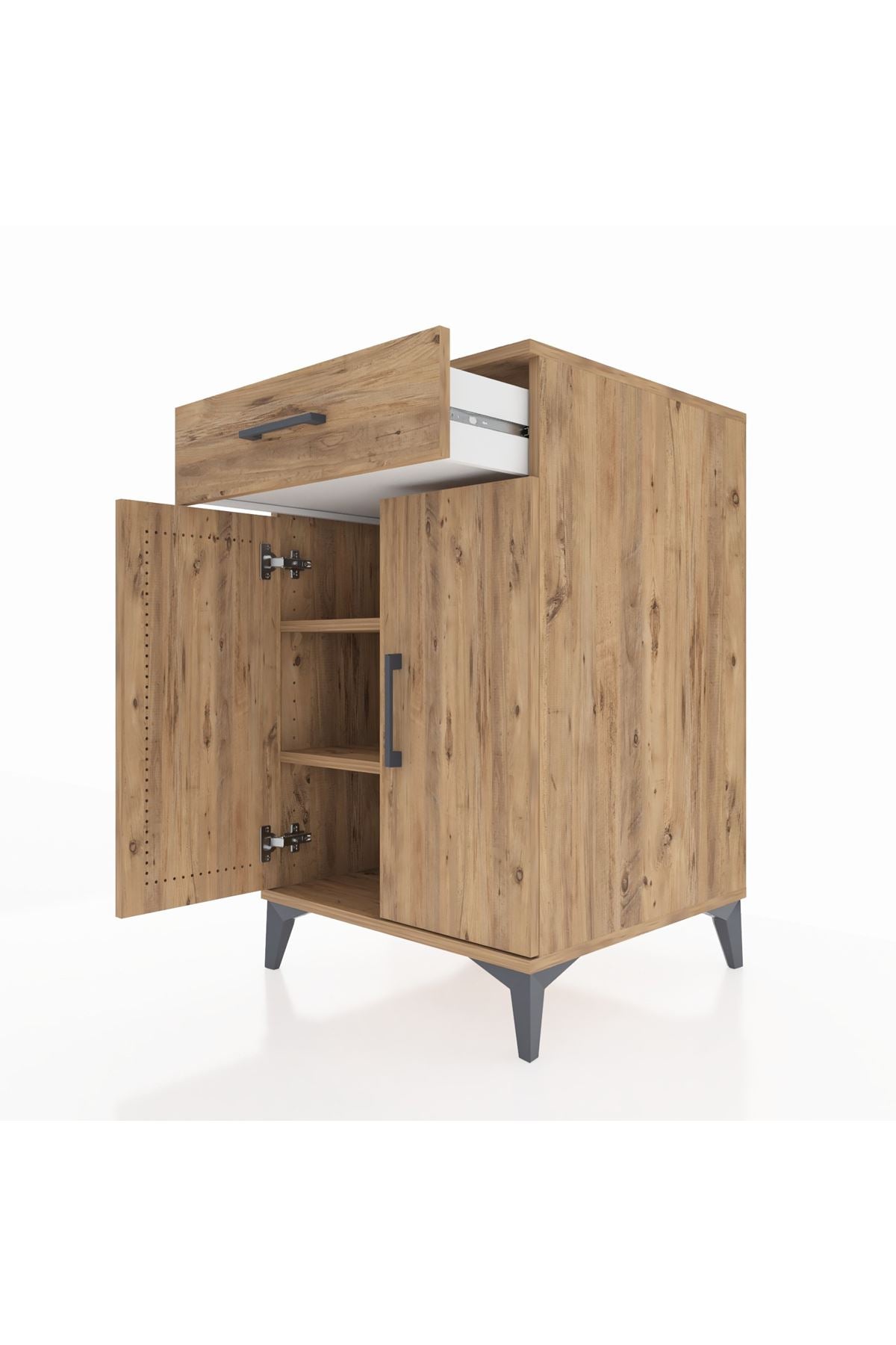 Kronos Komodin 2 Raflı Tek Çekmeceli 2 Kapaklı 60x59x96 Çam-Çam