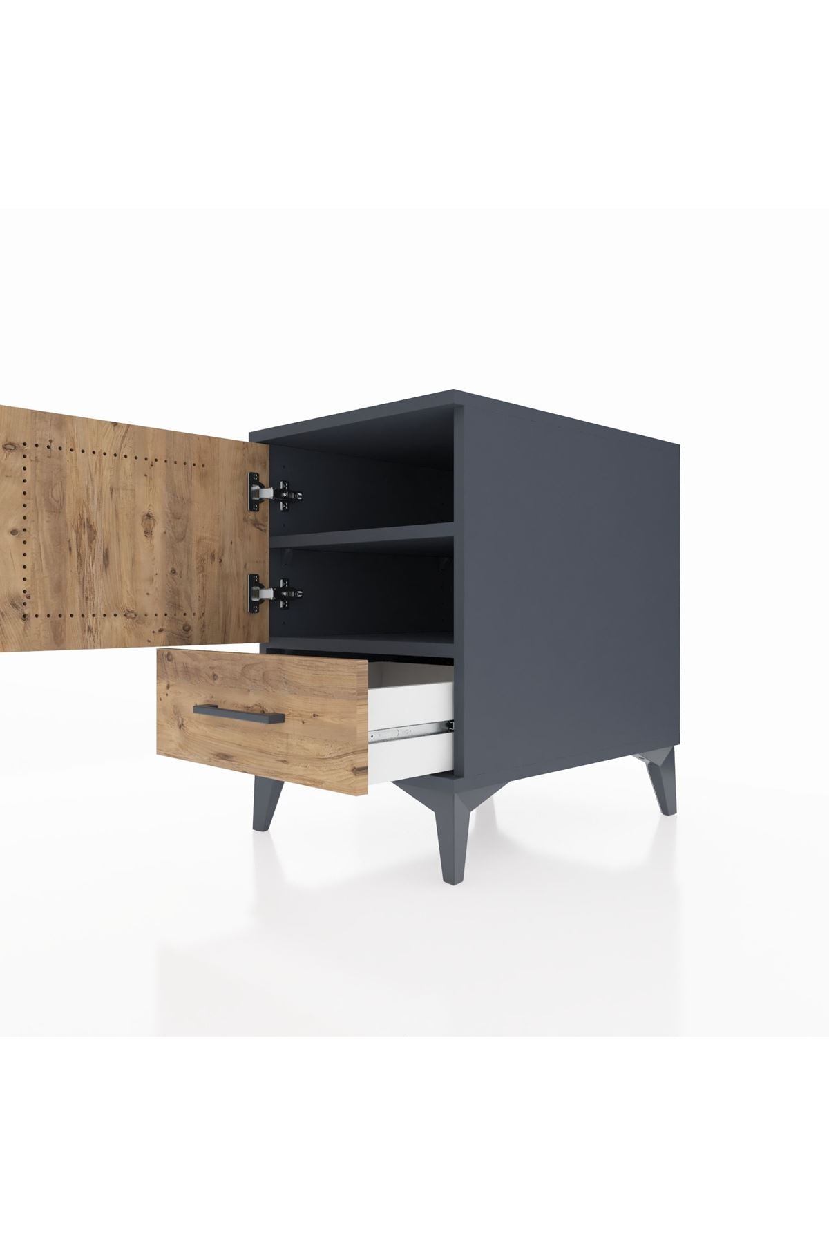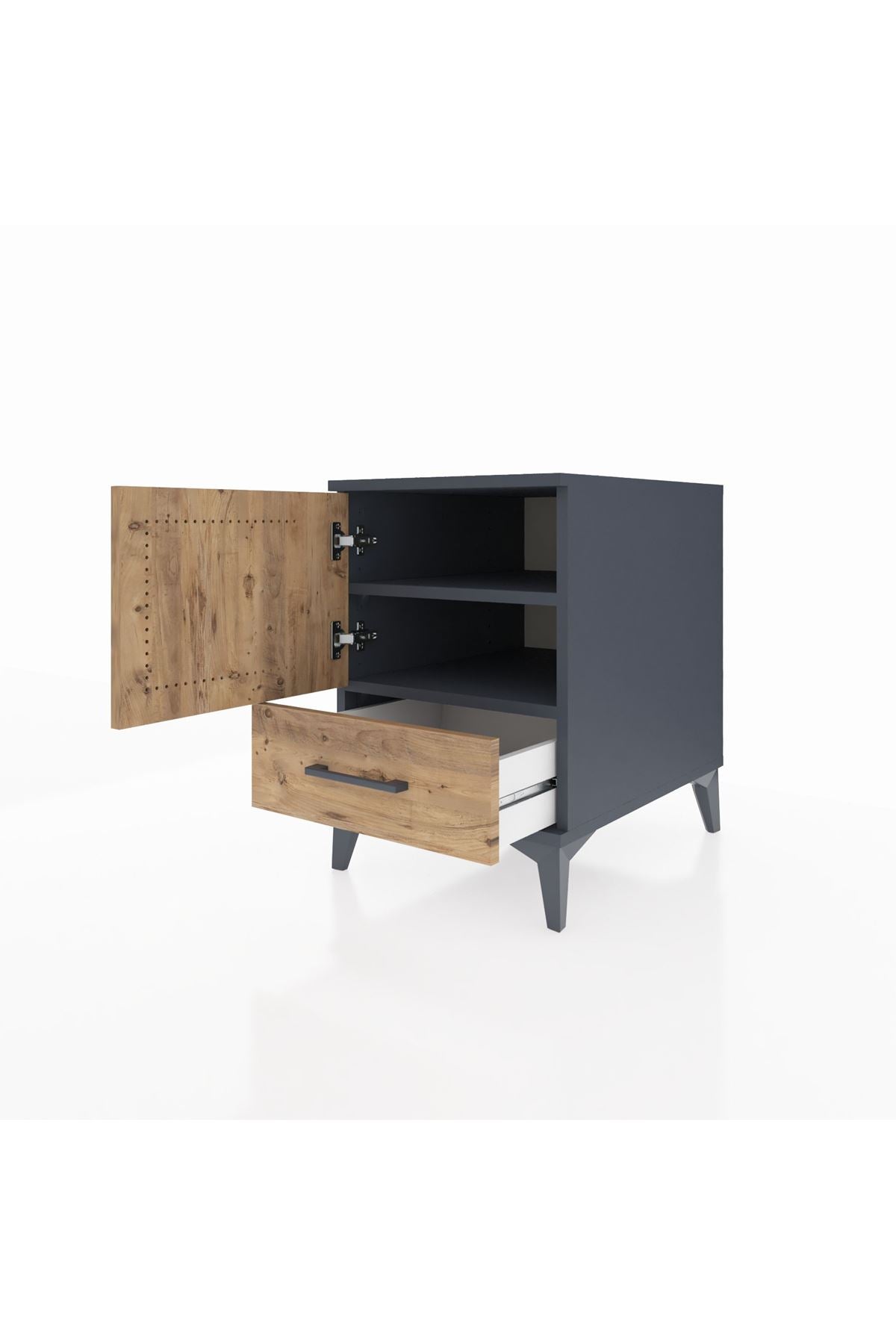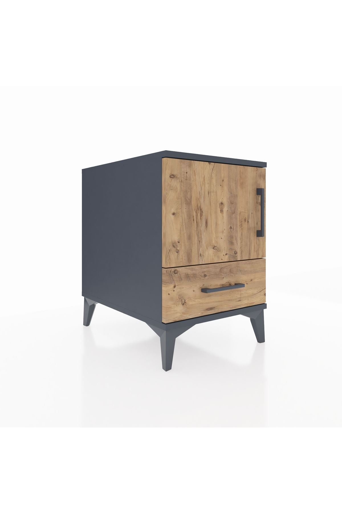 Kronos Komodin 2 Raflı Tek Çekmeceli Tek Kapaklı 44x59x64 Antrasit-Çam