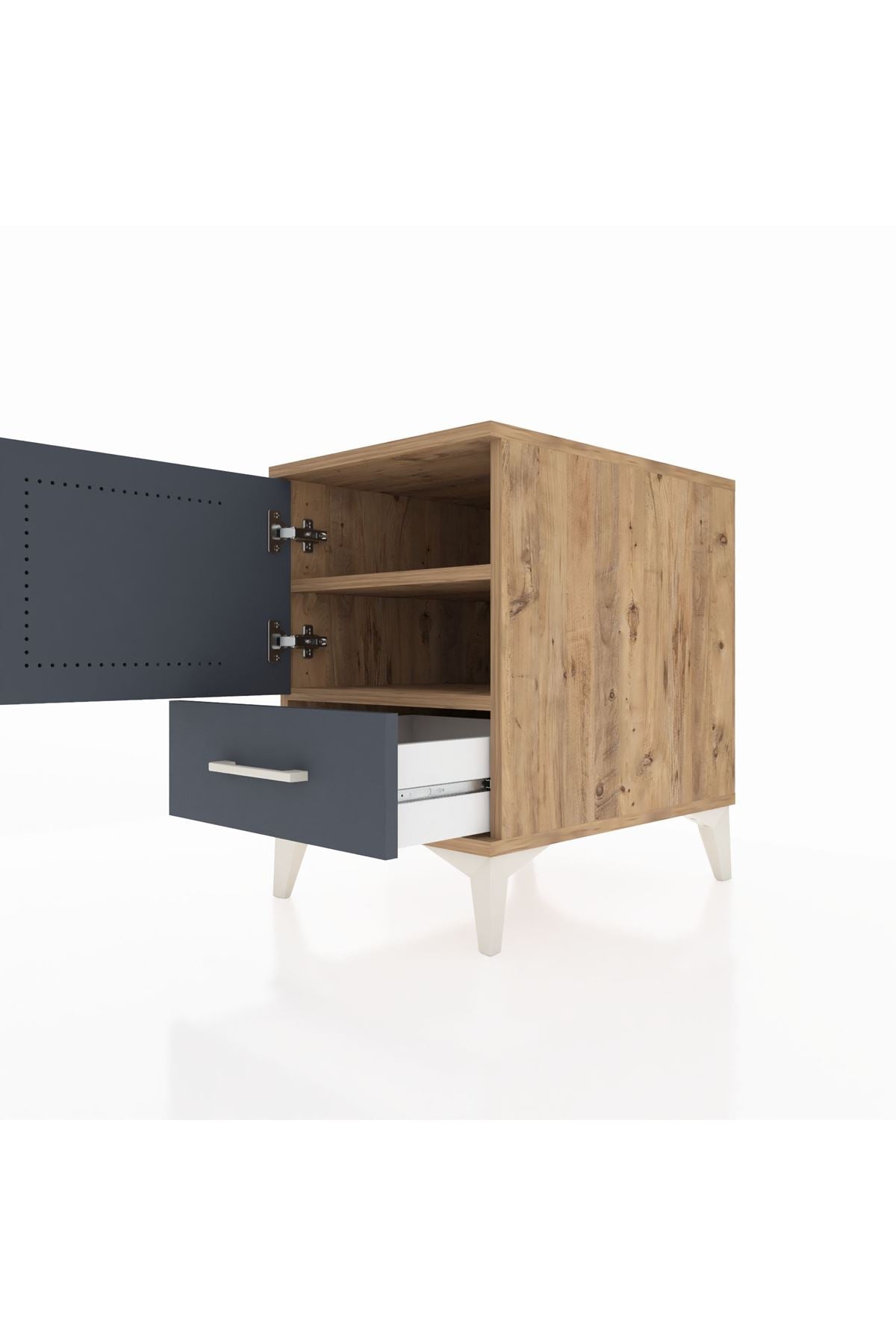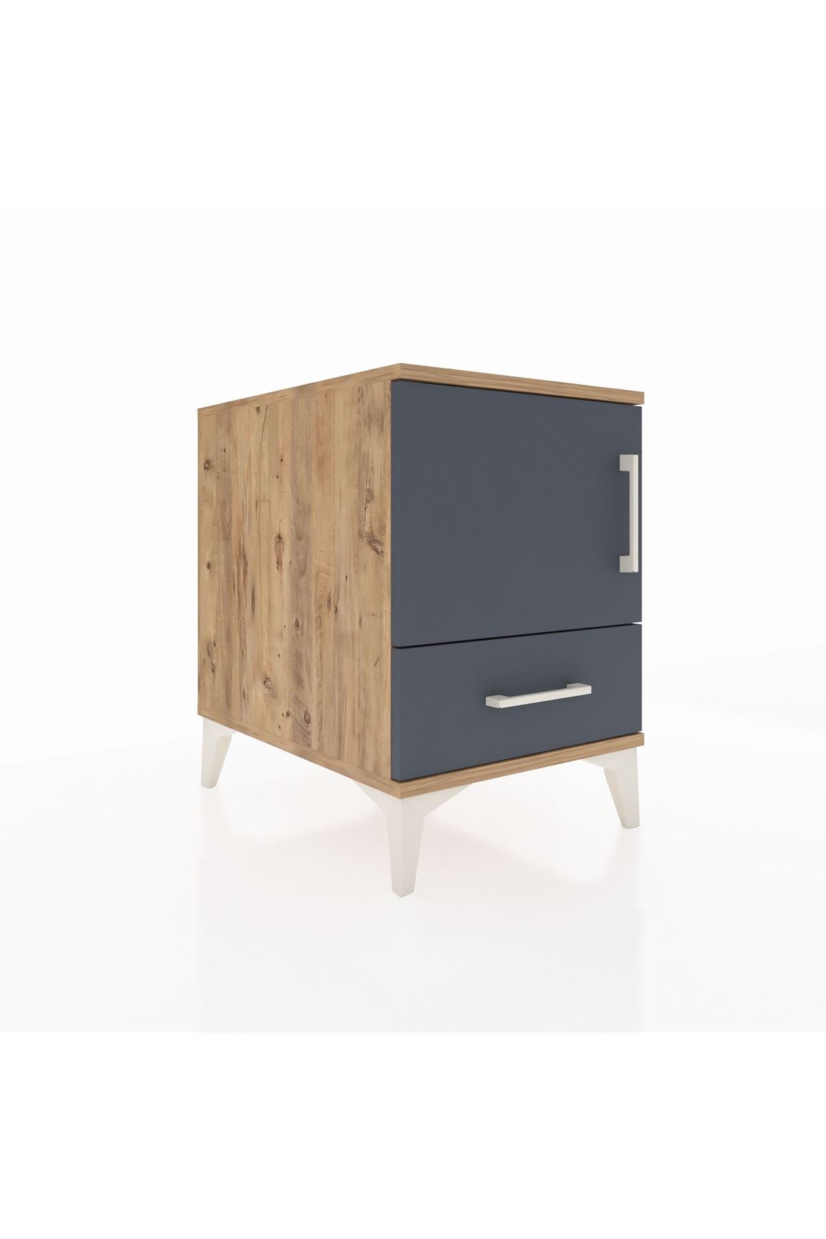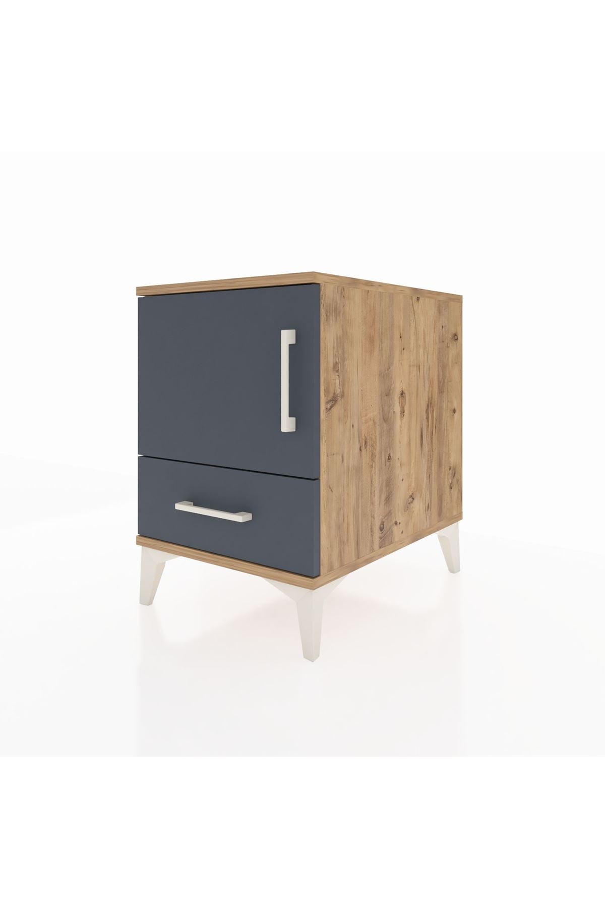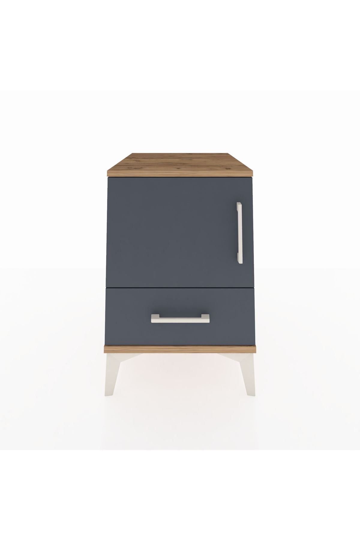 Kronos Komodin 2 Raflı Tek Çekmeceli Tek Kapaklı 44x59x64 Çam-Antrasit
