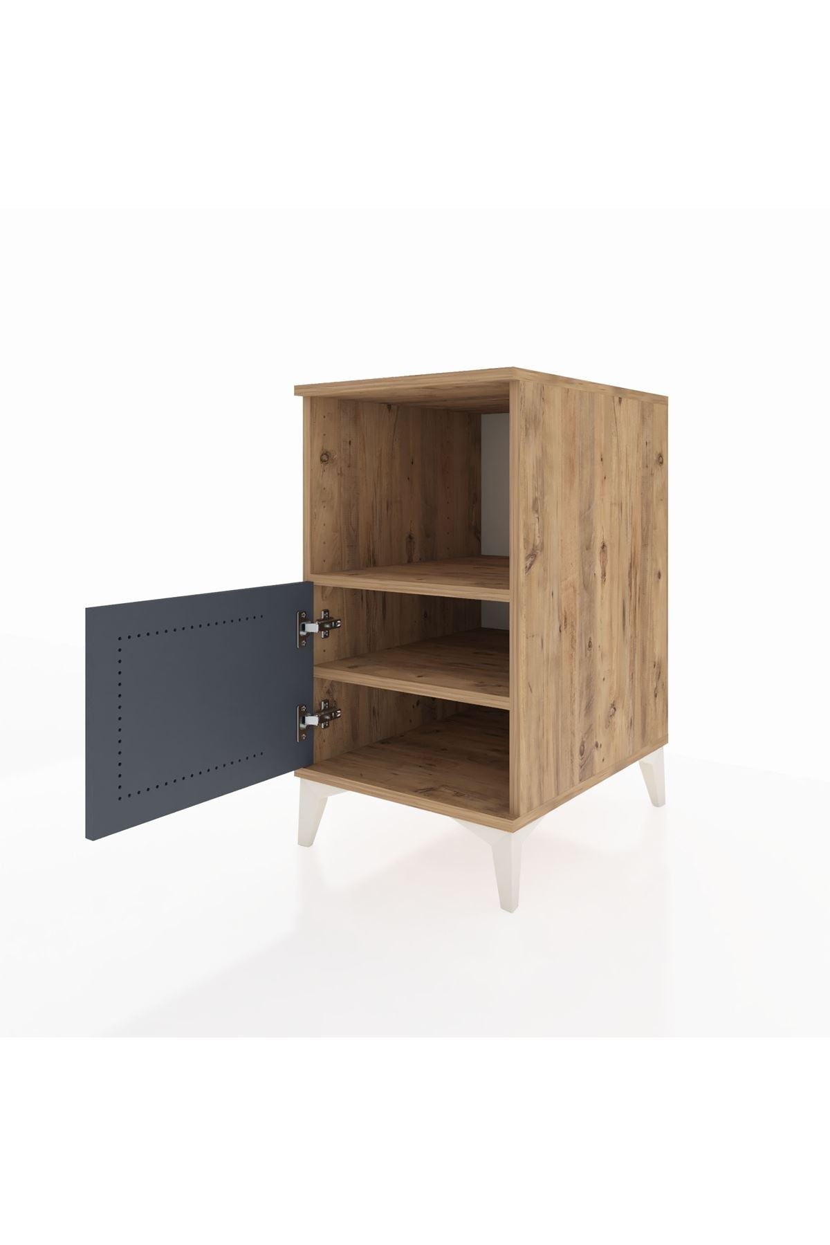 Kronos Komodin 2 Raflı Tek Kapaklı 44x59x80 Çam-Antrasit