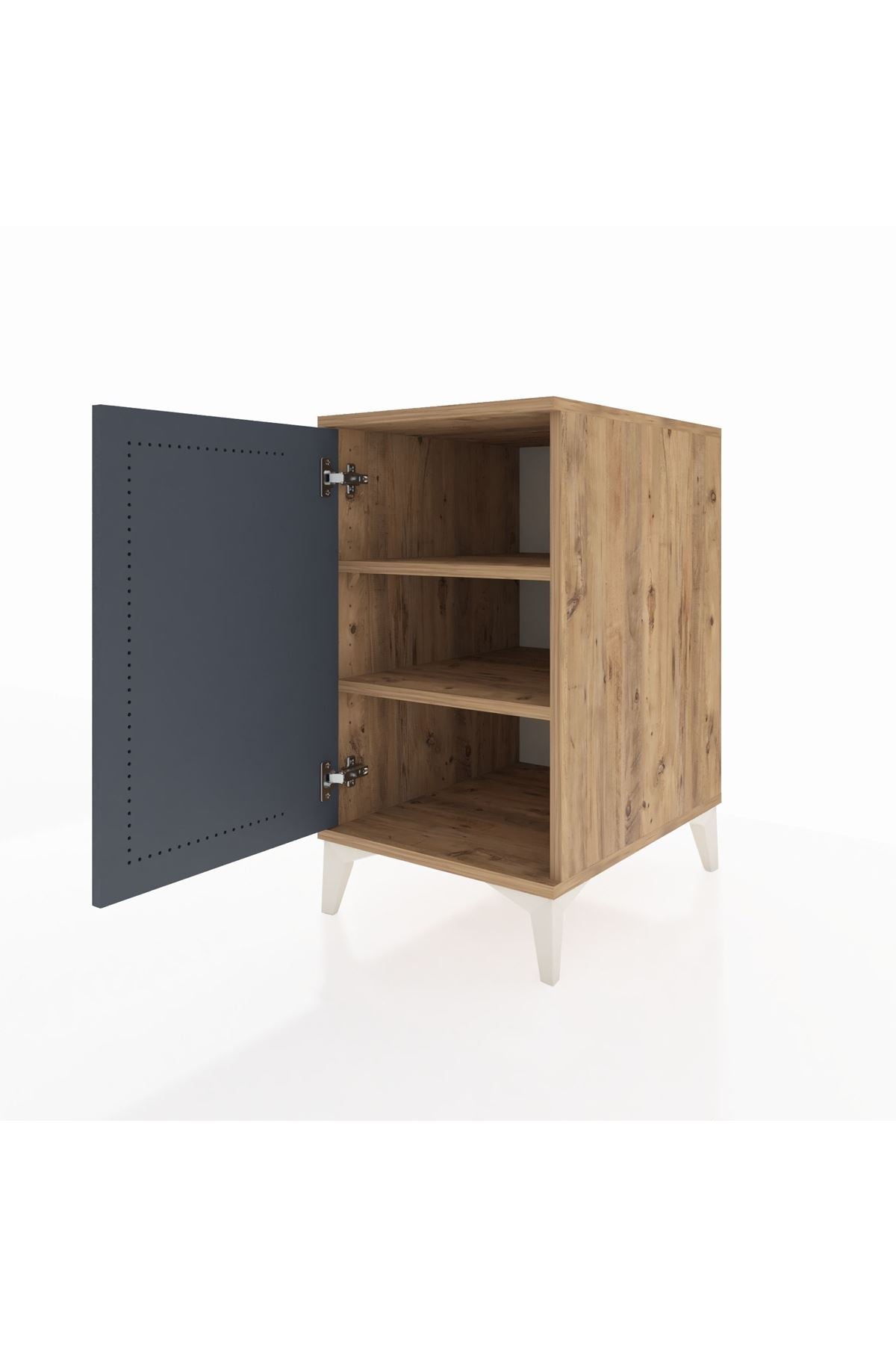 Kronos Komodin 2 Raflı Tek Kapaklı 44x59x80 Çam-Antrasit