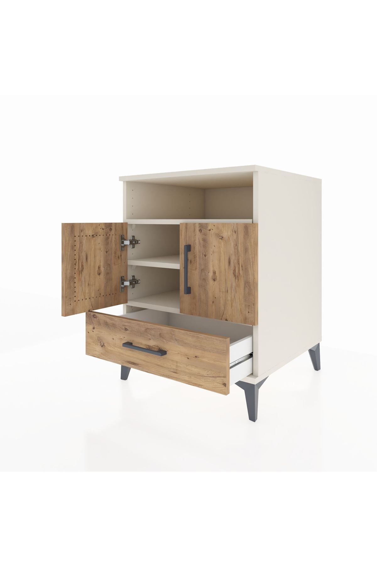 Kronos Komodin 3 Raflı Tek Çekmeceli 2 Kapaklı 60x59x80 Aytaşı-Çam