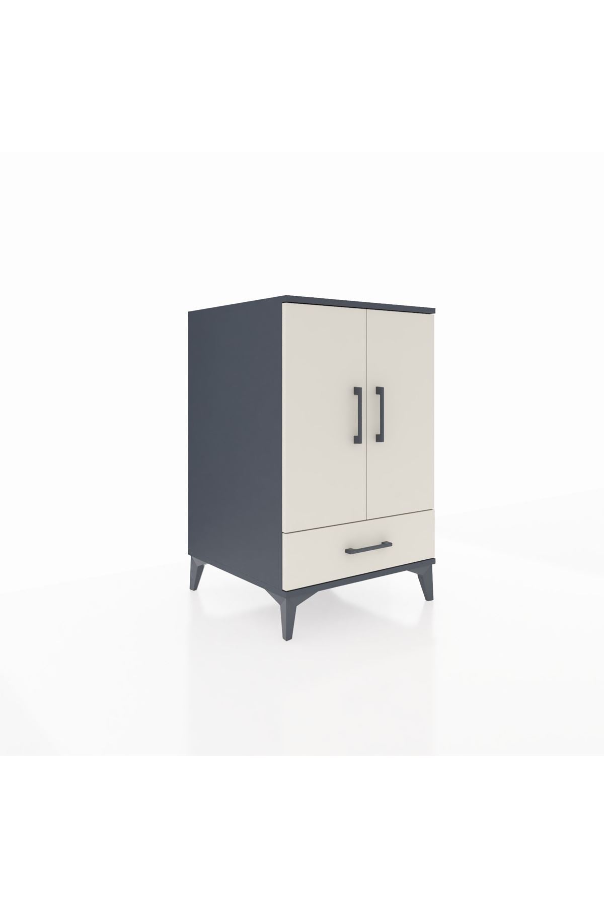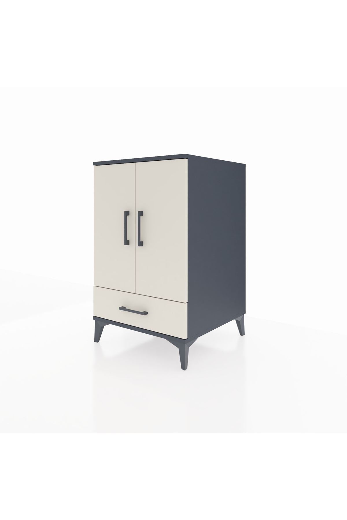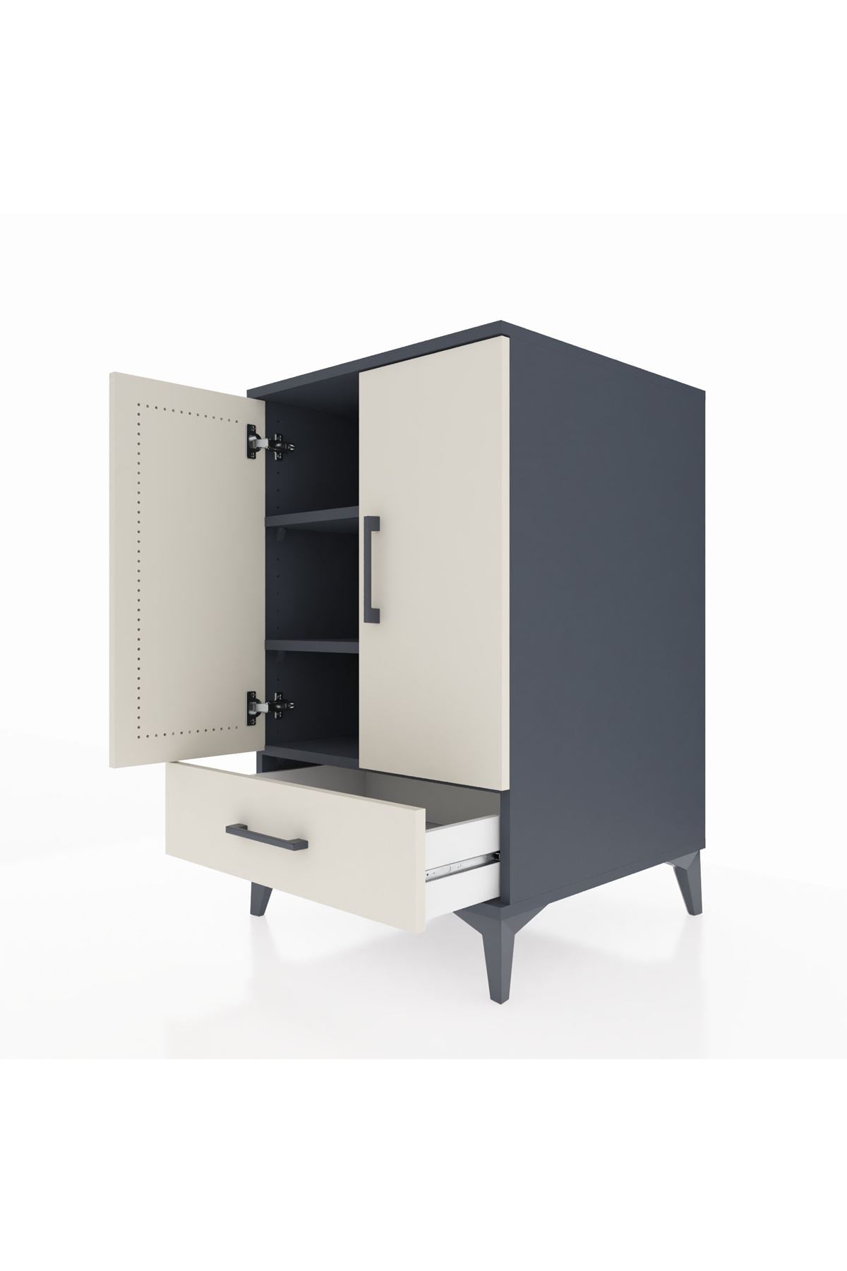 Alt değiştirme üniteleri ve bebek bakım ürünleri için pratik saklama sunar. Ayarlanabilir raflar sayesinde bez, ıslak mendil ve kıyafetler kategori bazında yerleştirilebilir; metal kulplar kolay kavranır, hızlı açma-kapama sağlar. Düşük yüksekliği sayesinde ebeveynlerin erişimi rahat, üst yüzeyi gece bakım malzemeleri için kullanışlı bir platform oluşturur.