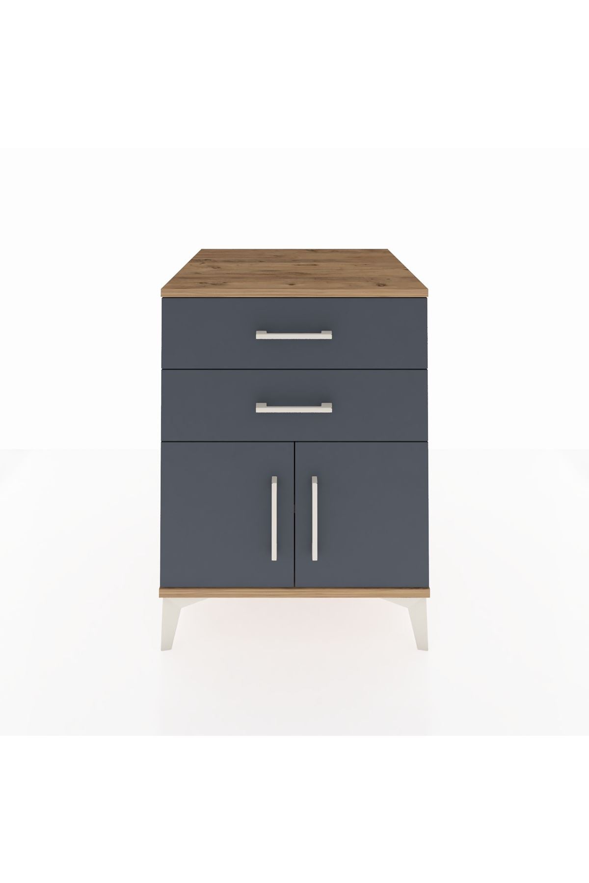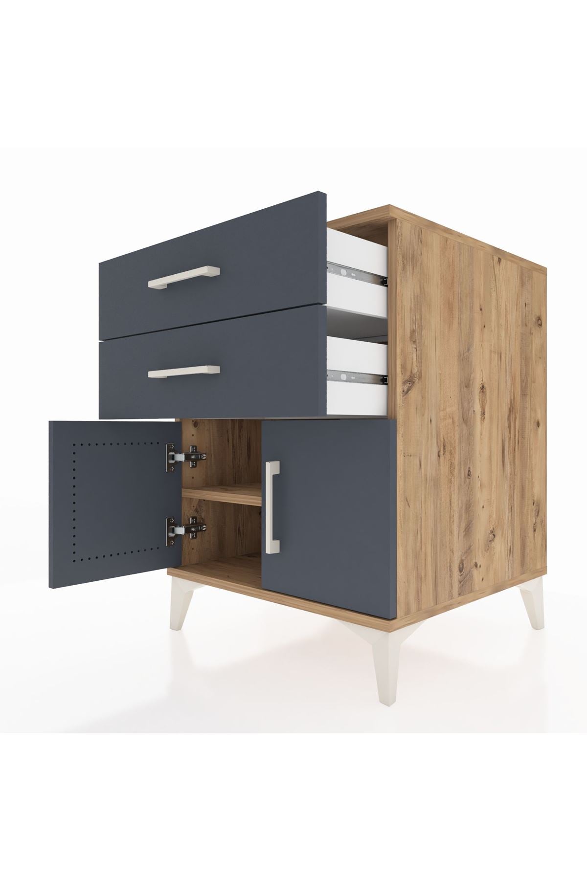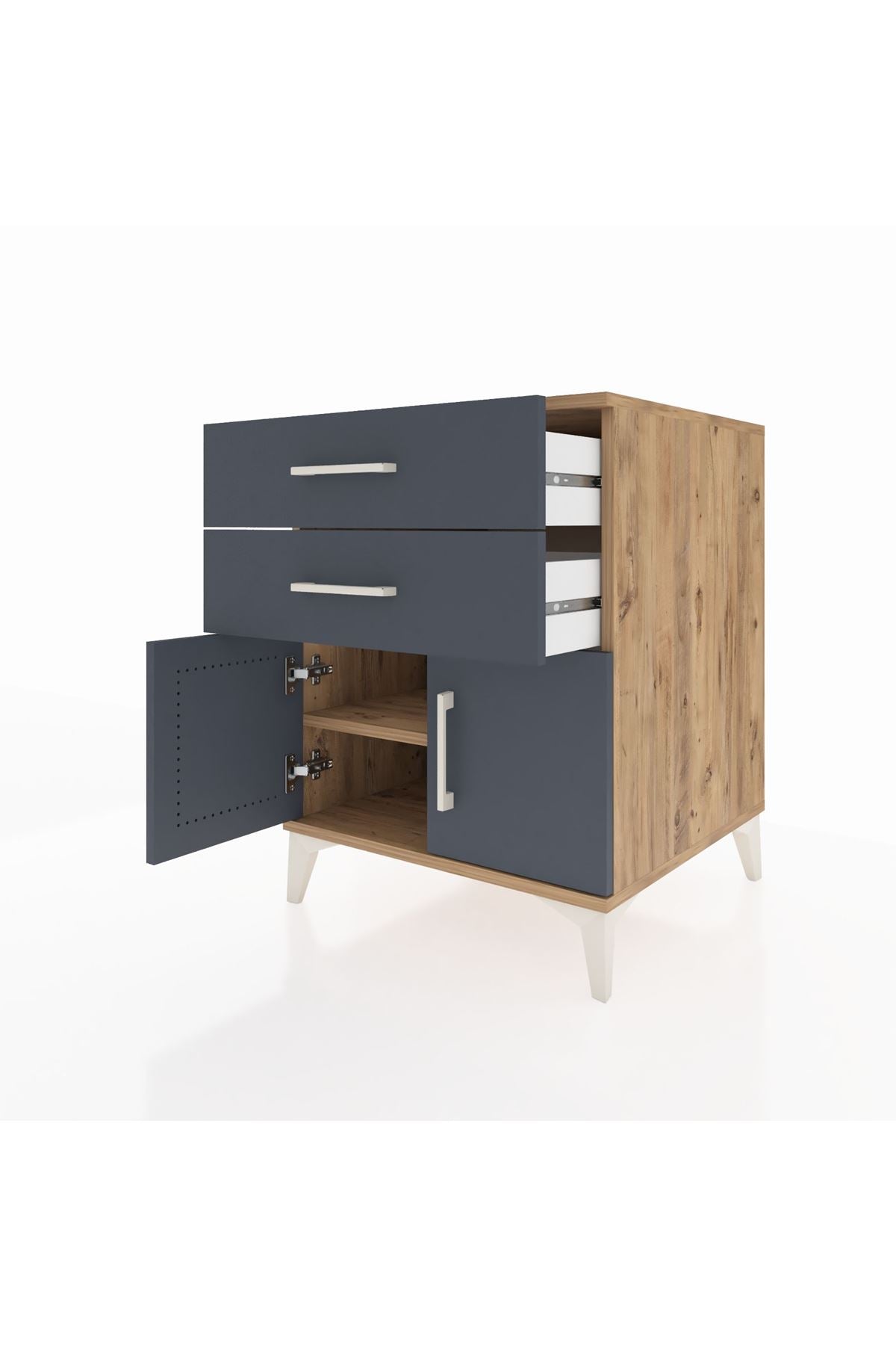 Kronos Komodin Tek Raflı 2 Çekmeceli 2 Kapaklı 60x59x80 Çam-Antrasit