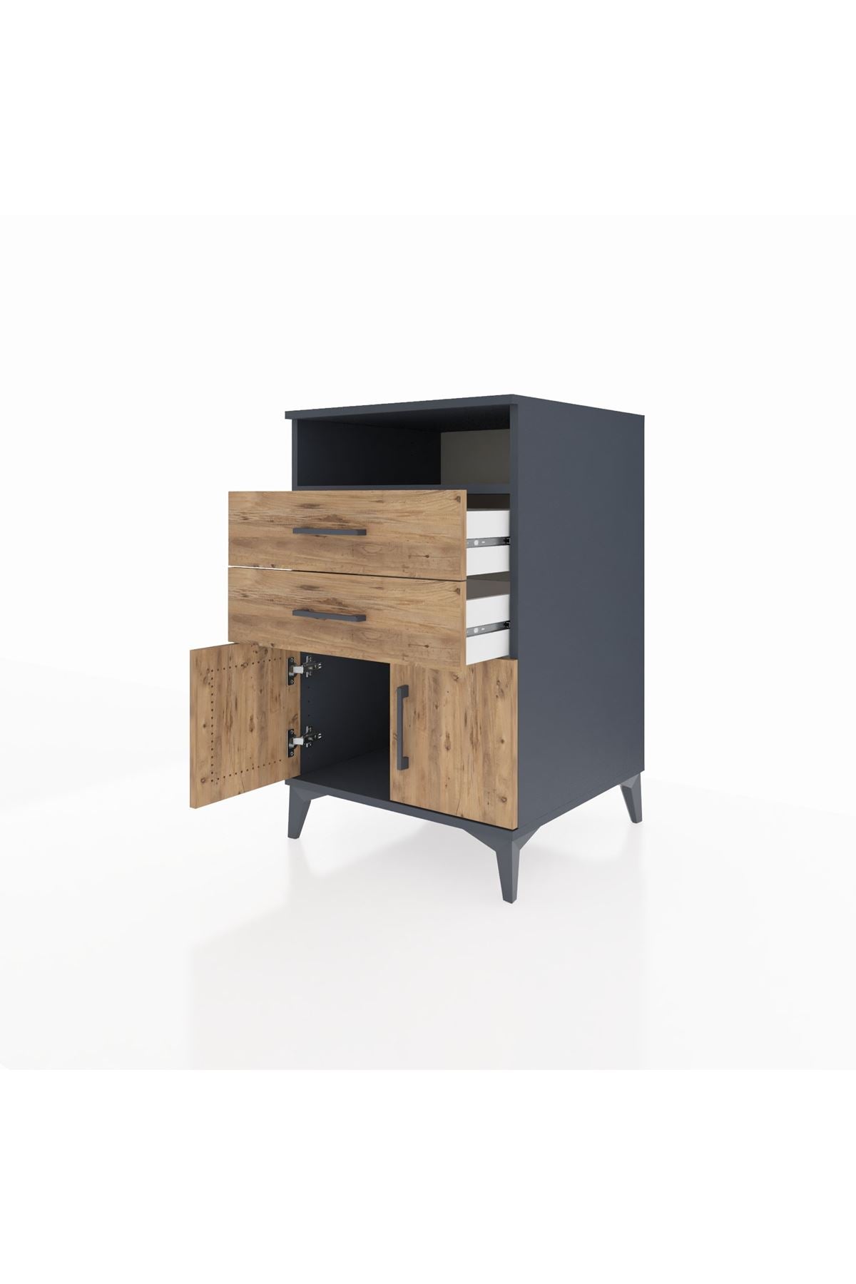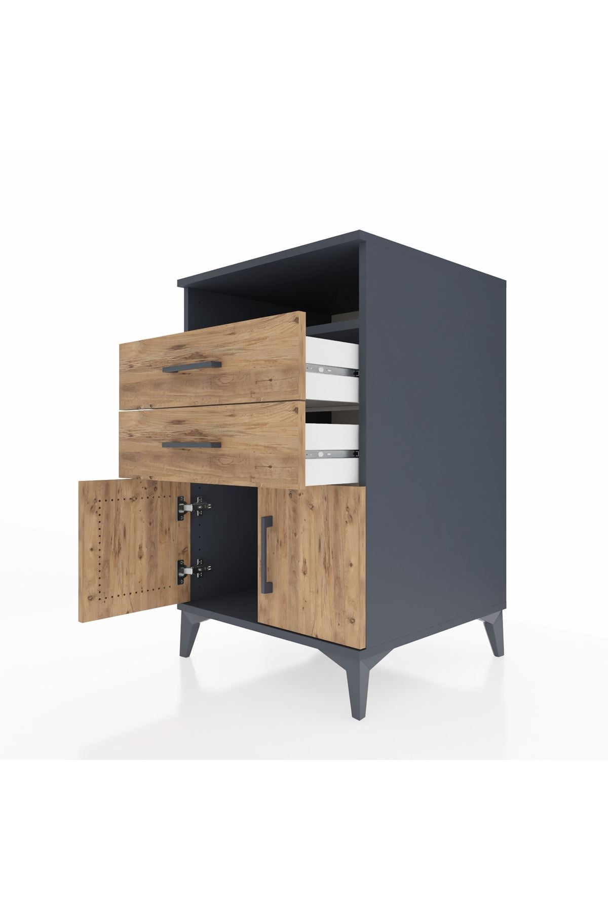 Kronos Komodin Tek Raflı 2 Çekmeceli 2 Kapaklı 60x59x96 Antrasit-Çam – Fonksiyonel ve Şık Depolama Çözümü