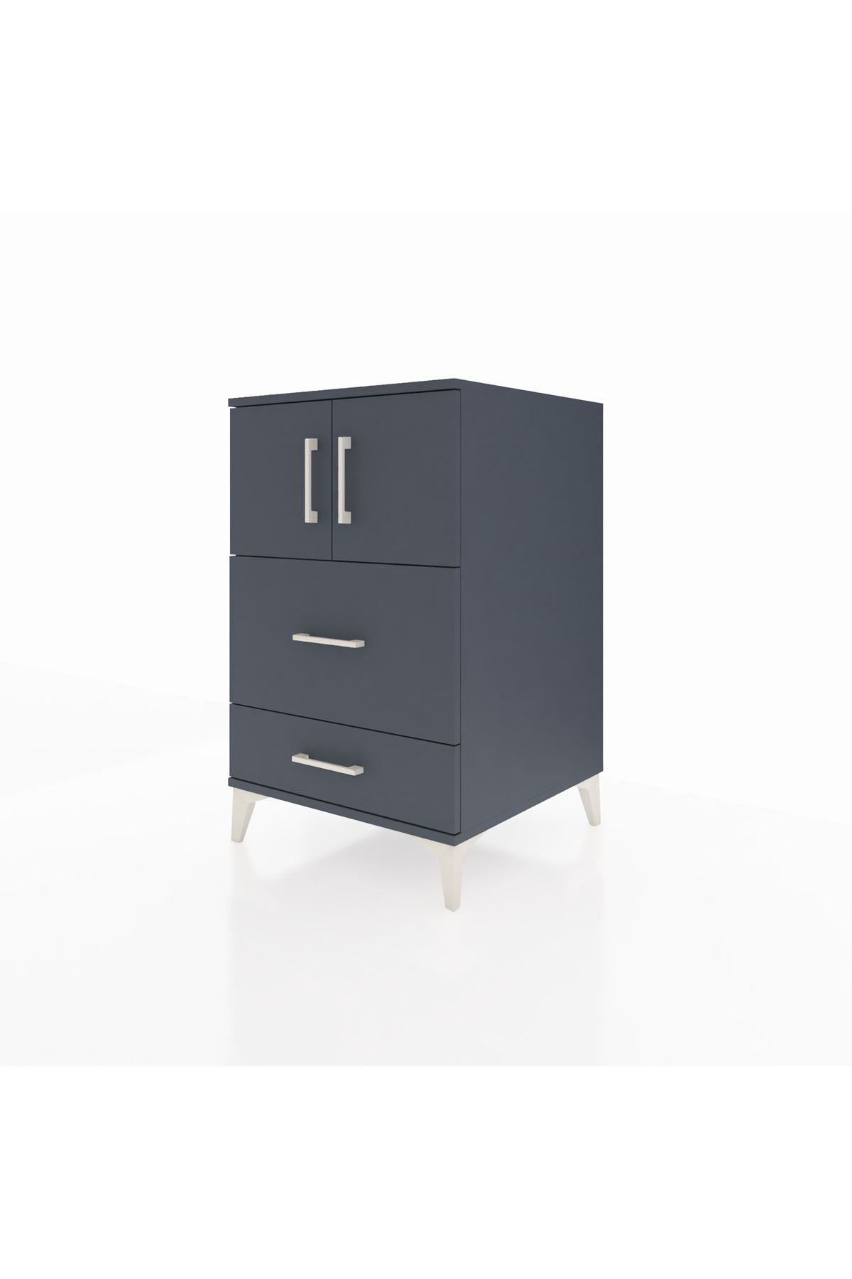 Bu komodin, evinizde düzen ve şıklık sağlar. Antrasit rengi modern ve sofistike bir hava verir; sade hatları ve dengeli ölçüleri her odada uyum sağlar. Metal ayaklar hem estetik bir yükseliş sunar hem de mobilyanın zeminden izolasyonunu sağlayarak uzun ömürlü kullanım garanti eder. Metal kulplar ergonomik tutuş ve dayanıklılık sunar; çekmece ve kapak mekanizmaları pürüzsüz açılıp kapanma için özenle seçilmiştir. 1. sınıf suntalam yüzeyleri kolay temizlenir, darbelere ve nem değişimlerine karşı dirençlidir. Tek raflı iç bölme isteğe göre ayarlanabilir raf sistemi ile farklı yüksekliklere göre düzenlenebilir; çekmece sayısı konfigüre edilebilir yapısıyla kişisel depolama ihtiyacına göre şekillendirilebilir.