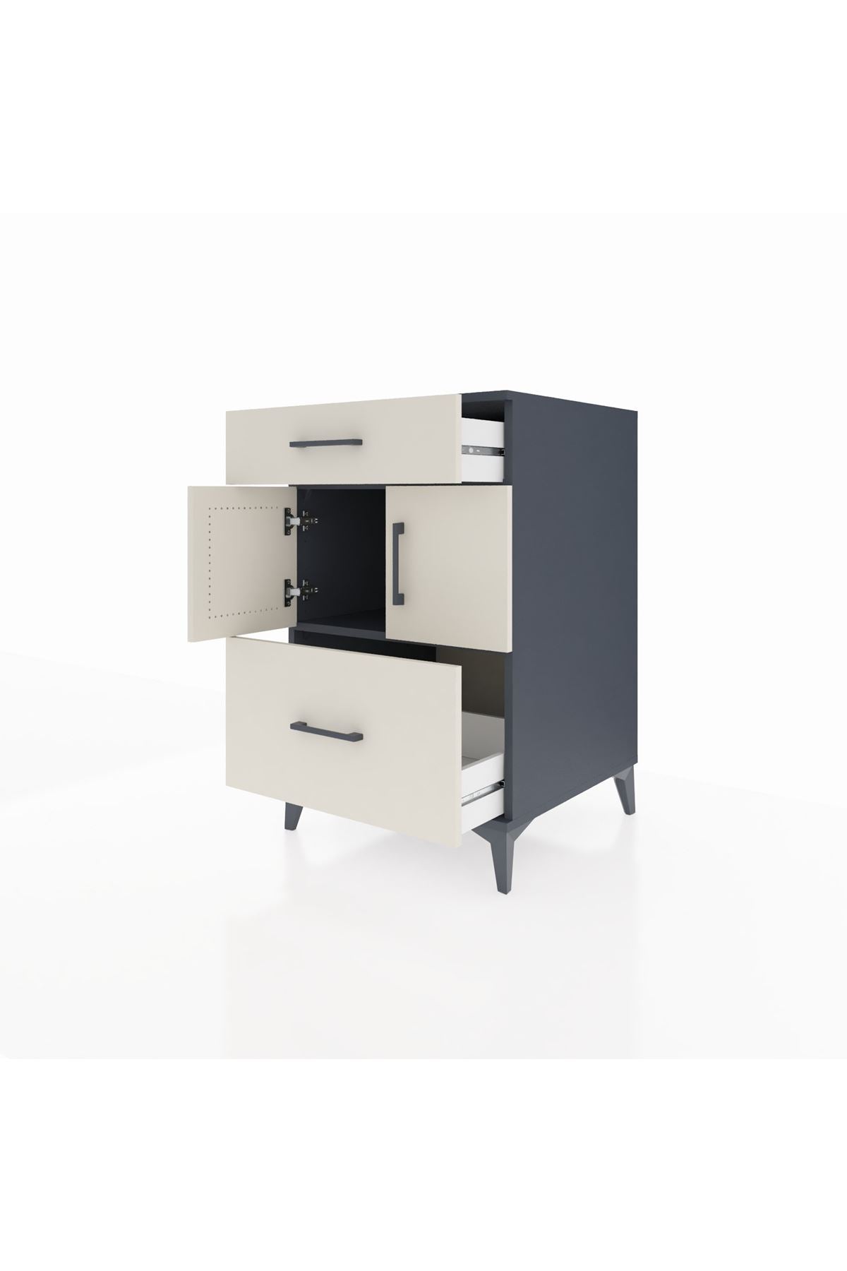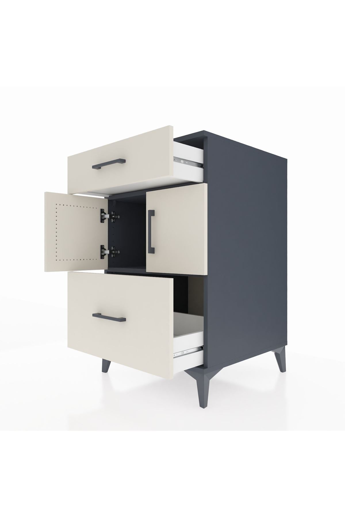 Kronos Komodin Tek Raflı 2 Çekmeceli 2 Kapaklı 60x59x96 Antrasit-Aytaşı