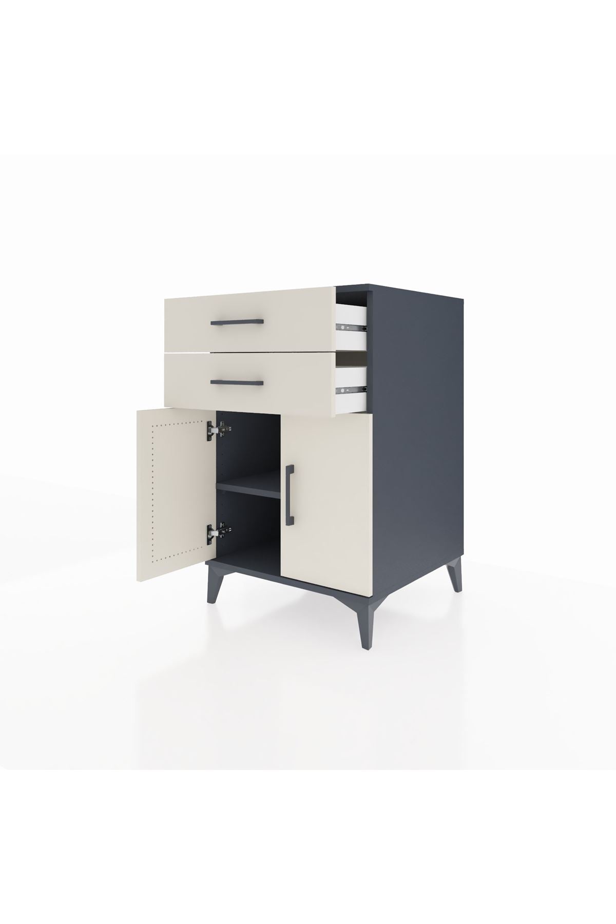 Kronos Komodin Tek Raflı 2 Çekmeceli 2 Kapaklı 60x59x96 Antrasit-Aytaşı