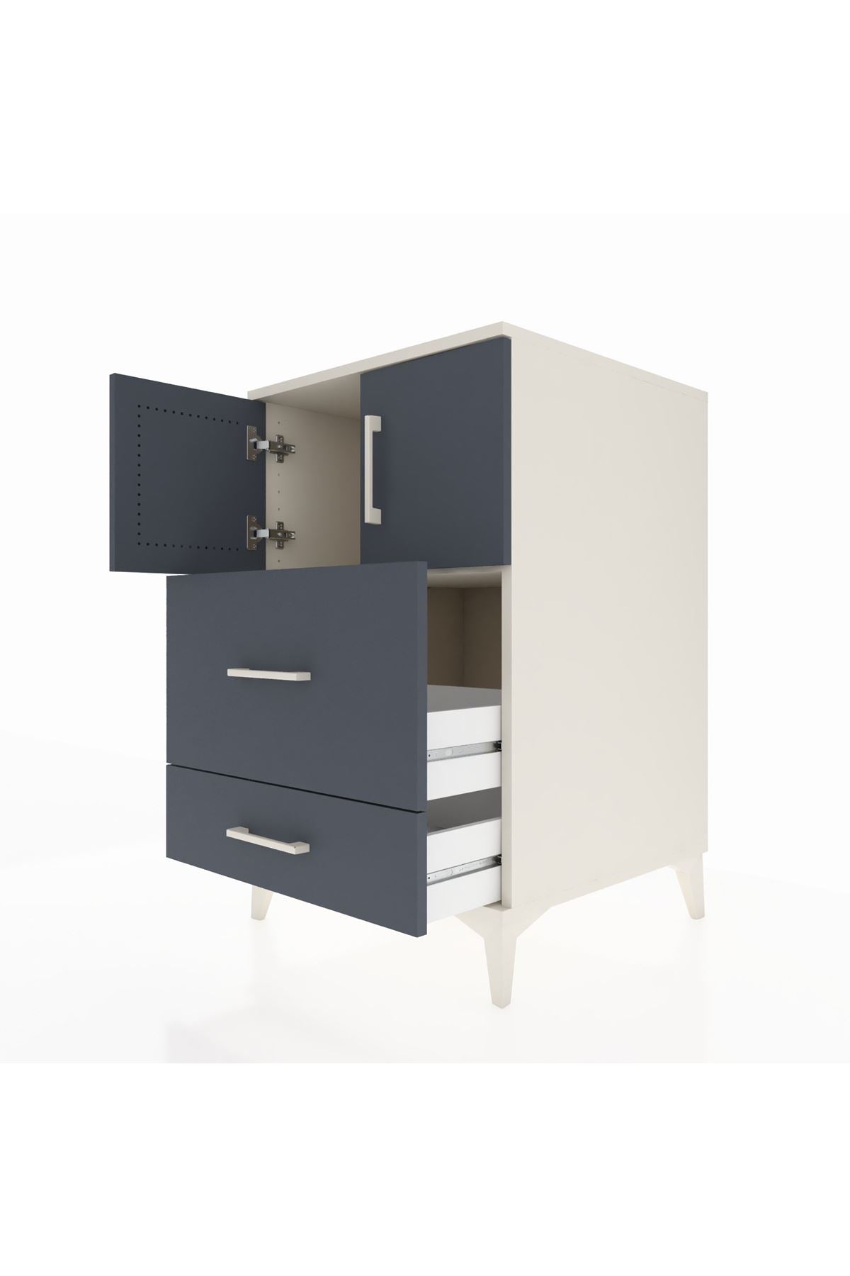 Kronos Komodin Tek Raflı 2 Çekmeceli 2 Kapaklı 60x59x96 Aytaşı-Antrasit – Fonksiyonel ve Şık Depolama