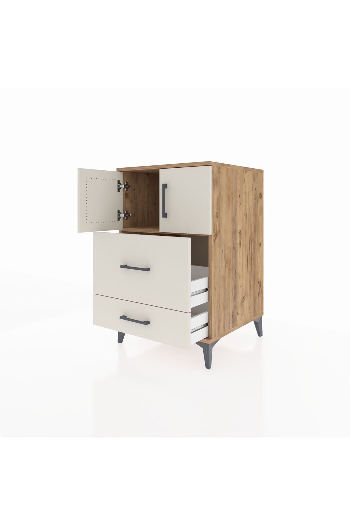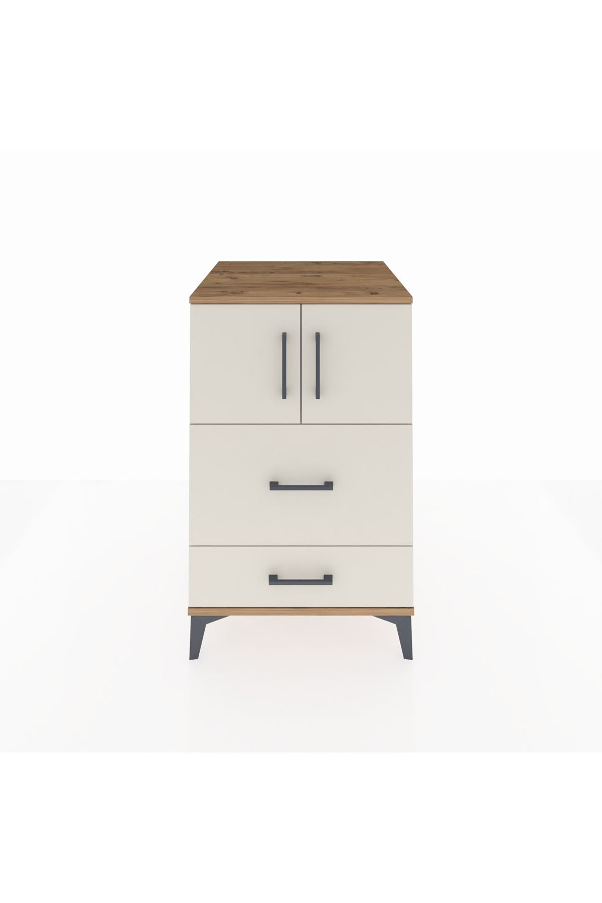 Kronos Komodin Tek Raflı 2 Çekmeceli 2 Kapaklı 60x59x96 Çam-Aytaşı – Fonksiyonel ve Şık Depolama Çözümü