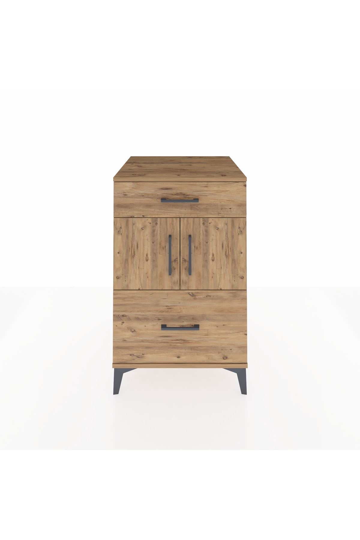 Birinci sınıf suntalam uzun ömürlü kullanım sağlar. Metal donanımlar sağlamlık katarken raflar ayarlanabilir, çekmece sayısı konfigüre edilebilir. Ürün, günlük kullanıma uygun dayanıklılık ve stabilite sunacak şekilde üretilmiştir.