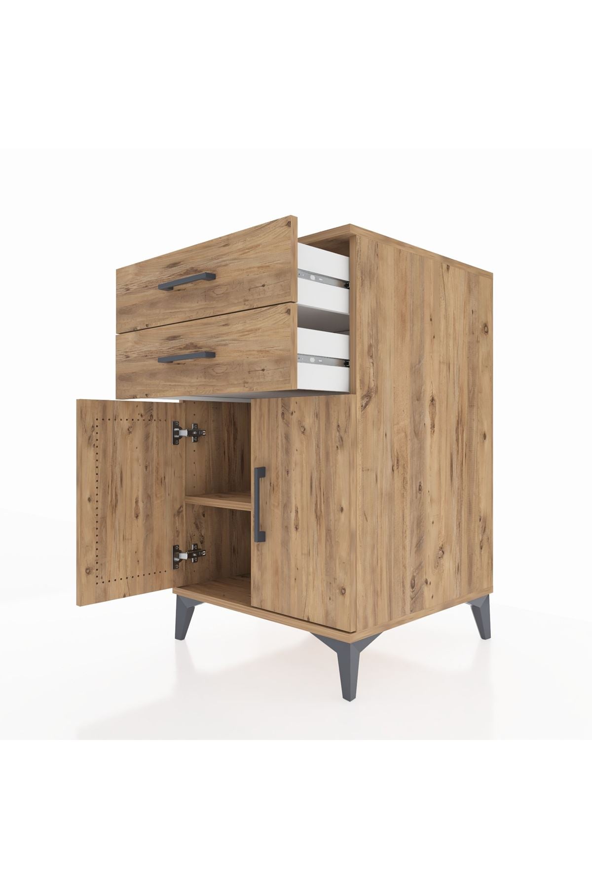 Kronos Komodin Tek Raflı 2 Çekmeceli 2 Kapaklı 60x59x96 Çam-Çam