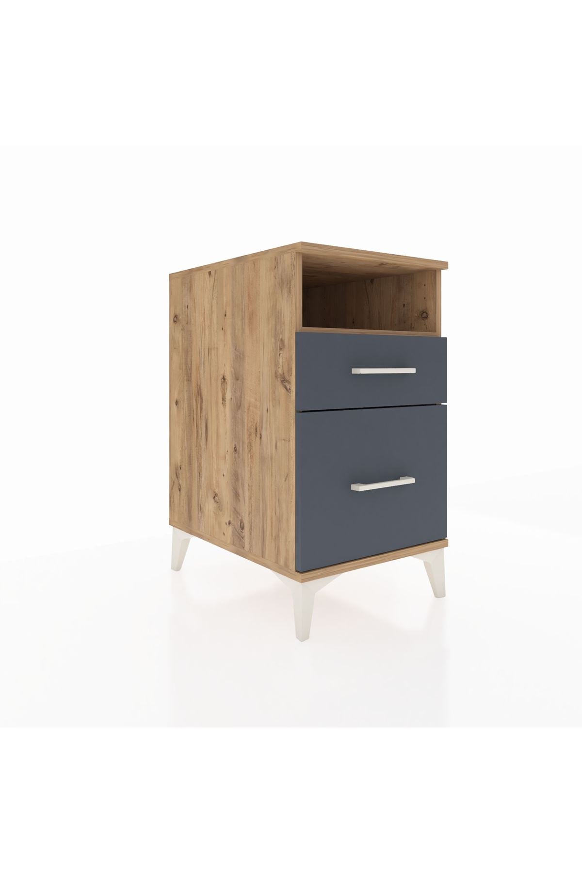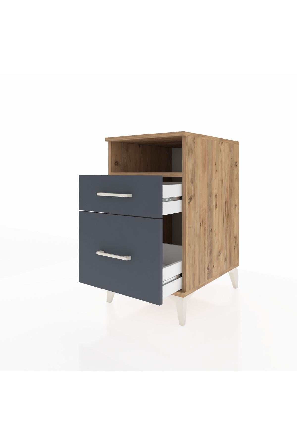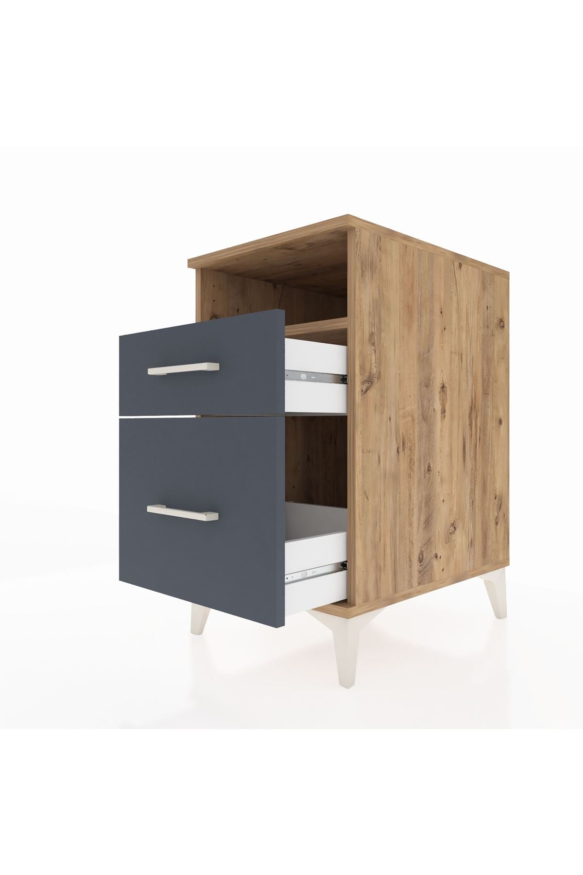 Kronos Komodin Tek Raflı 2 Çekmeceli 44x59x80 Çam-Antrasit