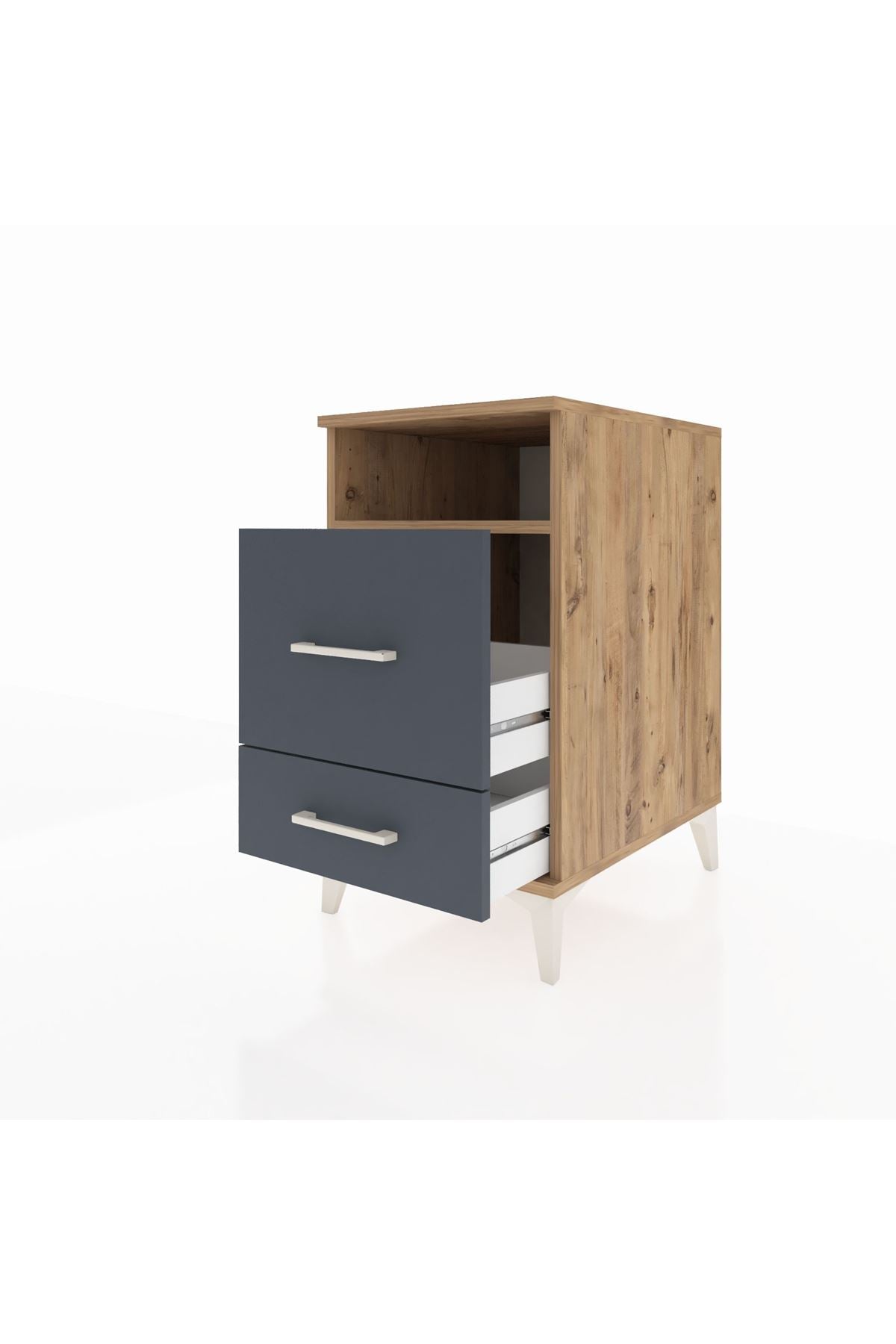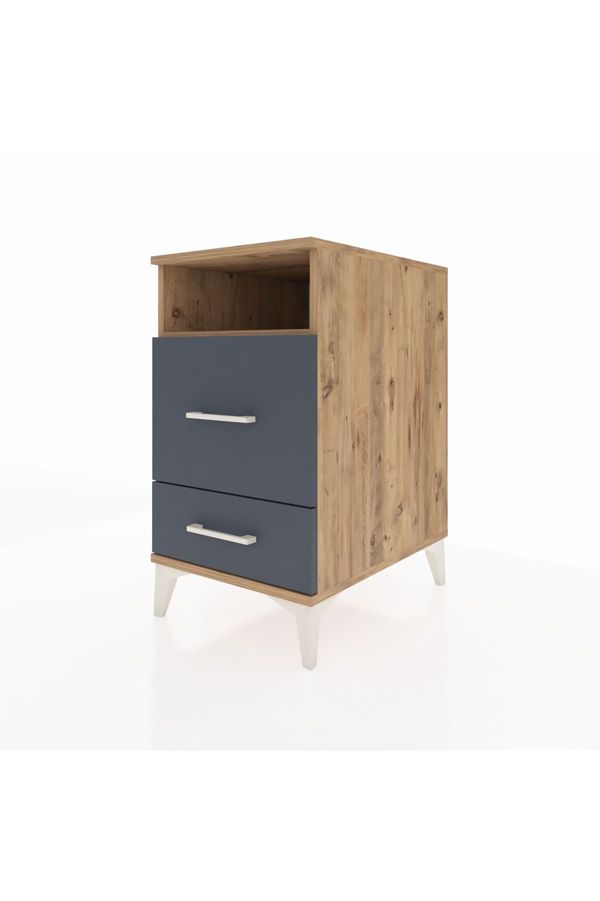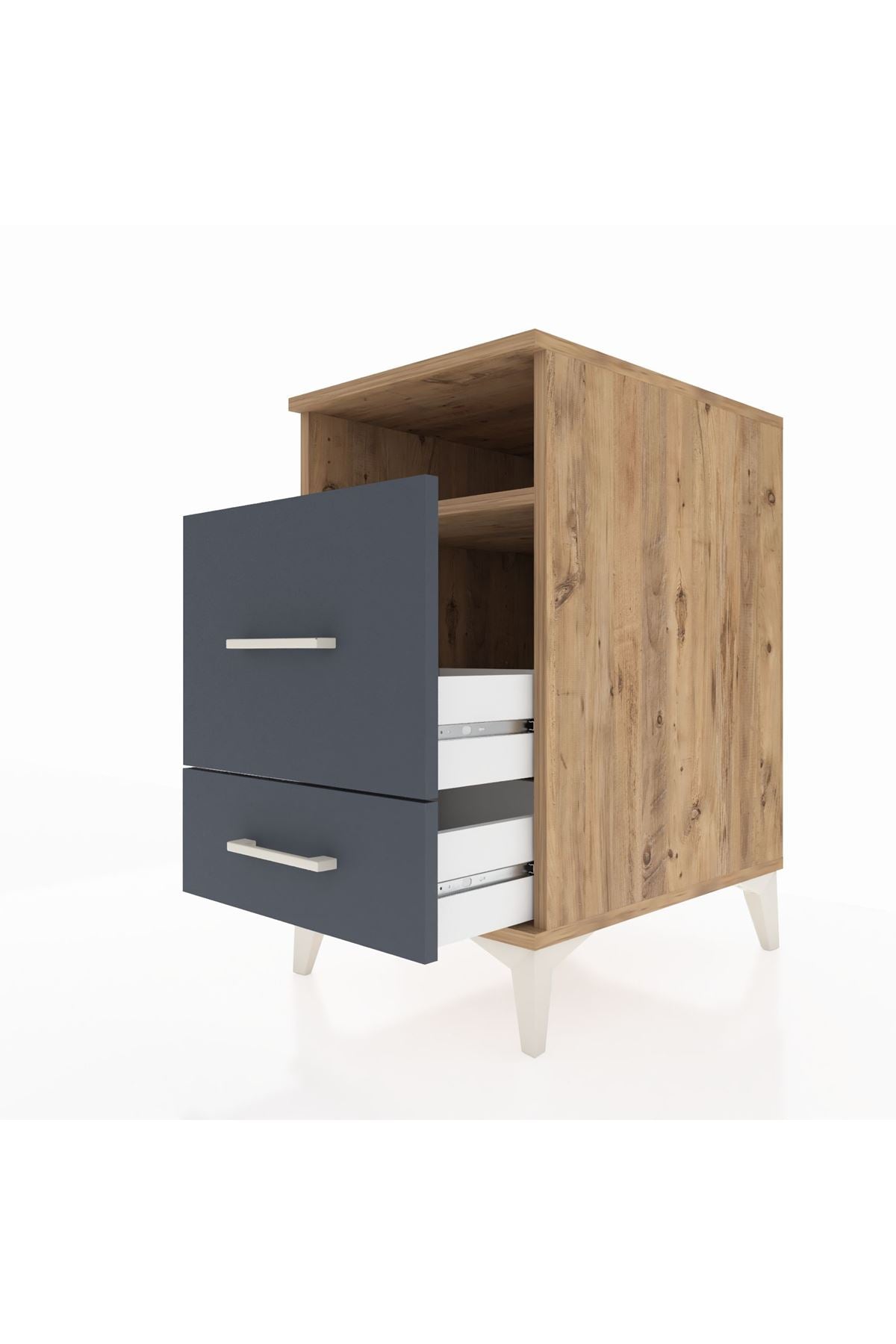 Kronos Komodin Tek Raflı 2 Çekmeceli 44x59x80 Çam-Antrasit