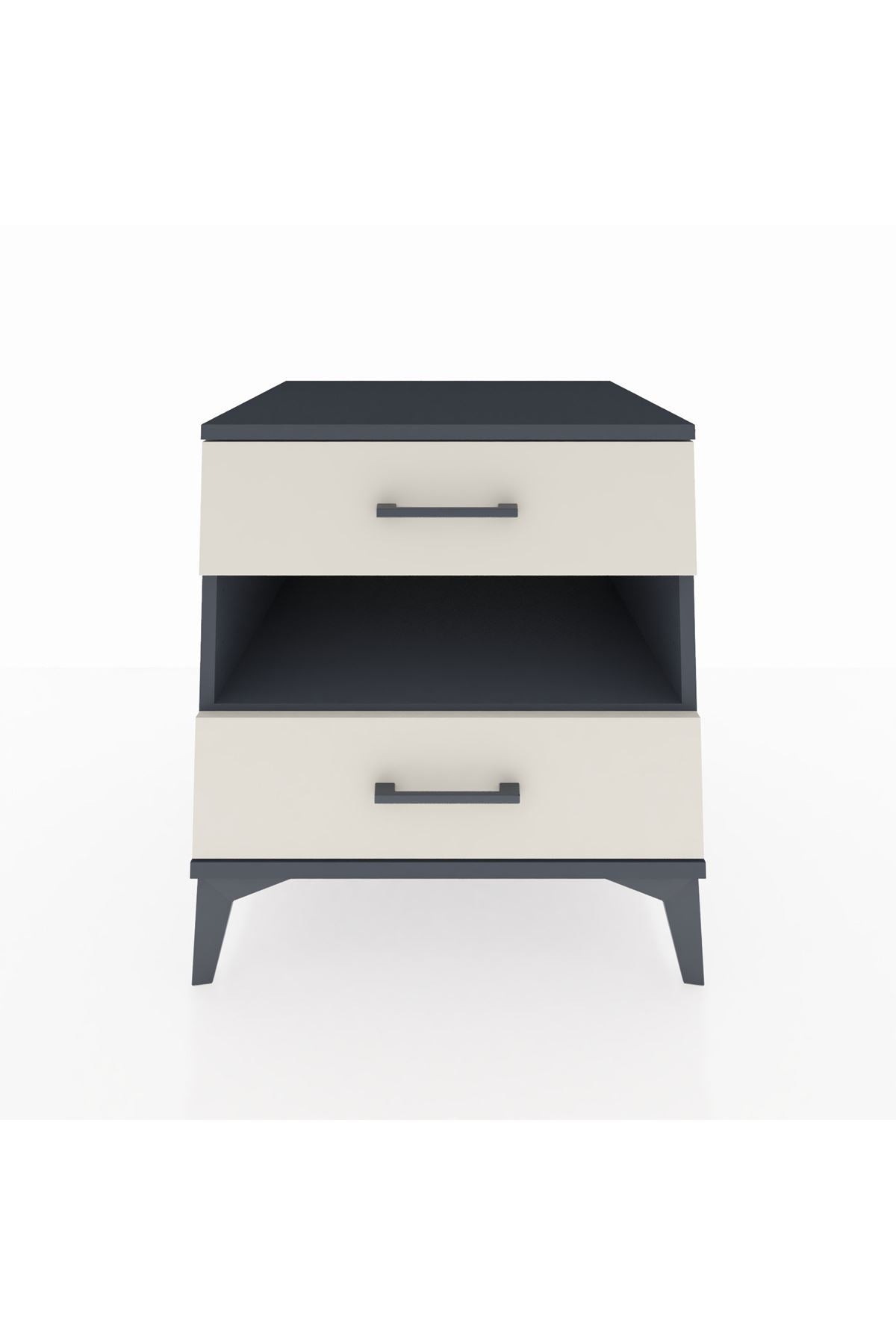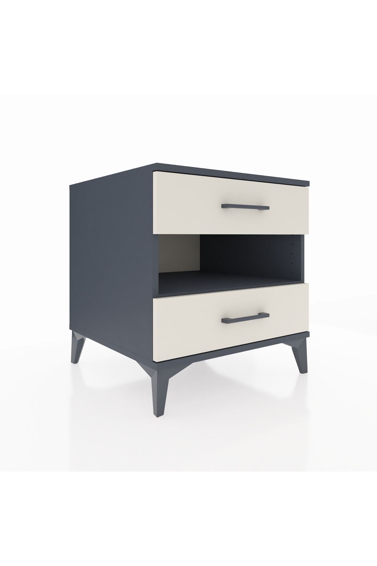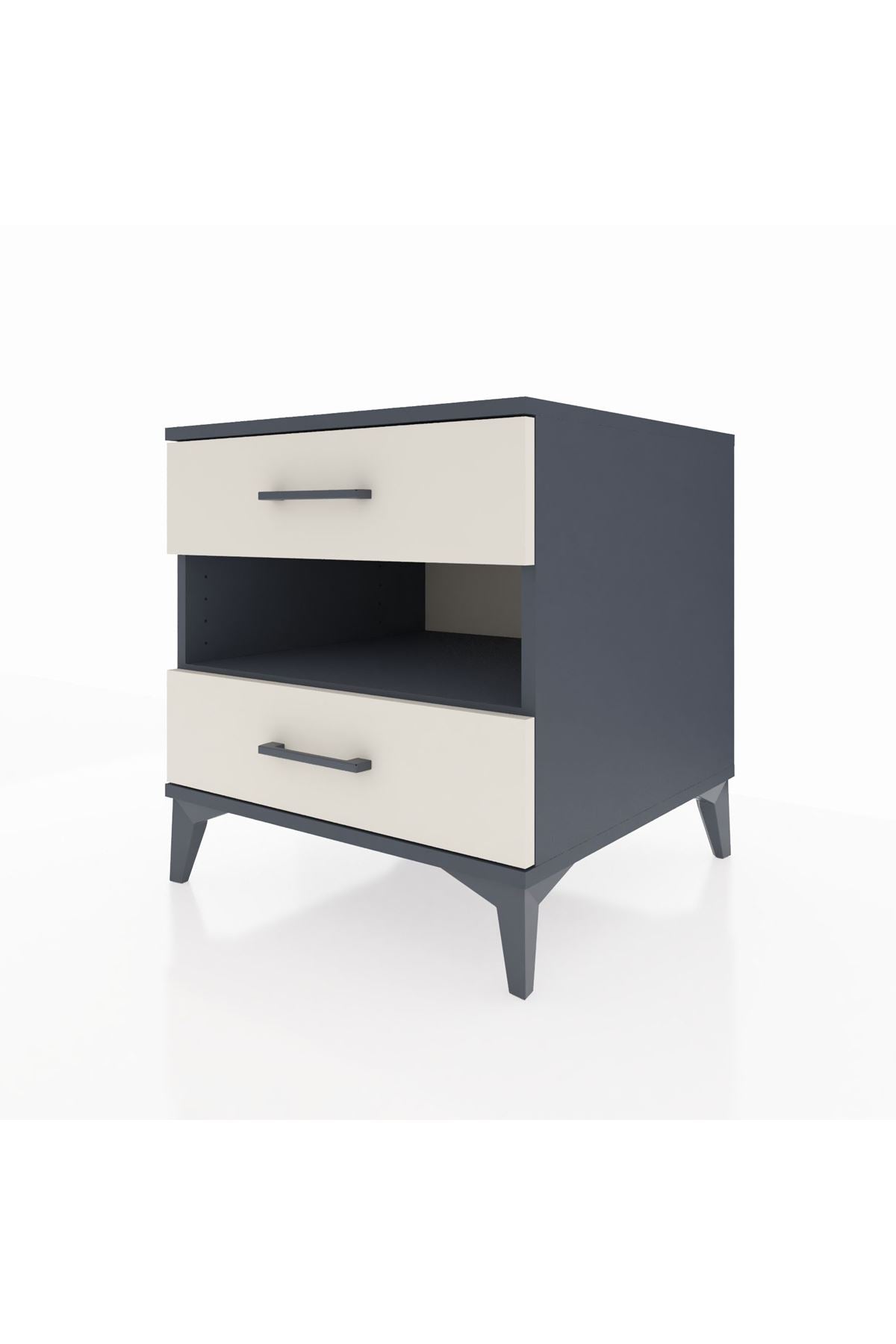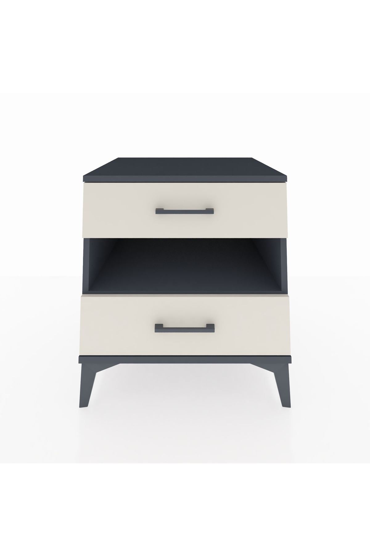 Kronos Komodin Tek Raflı 2 Çekmeceli 60x59x64 Antrasit-Aytaşı