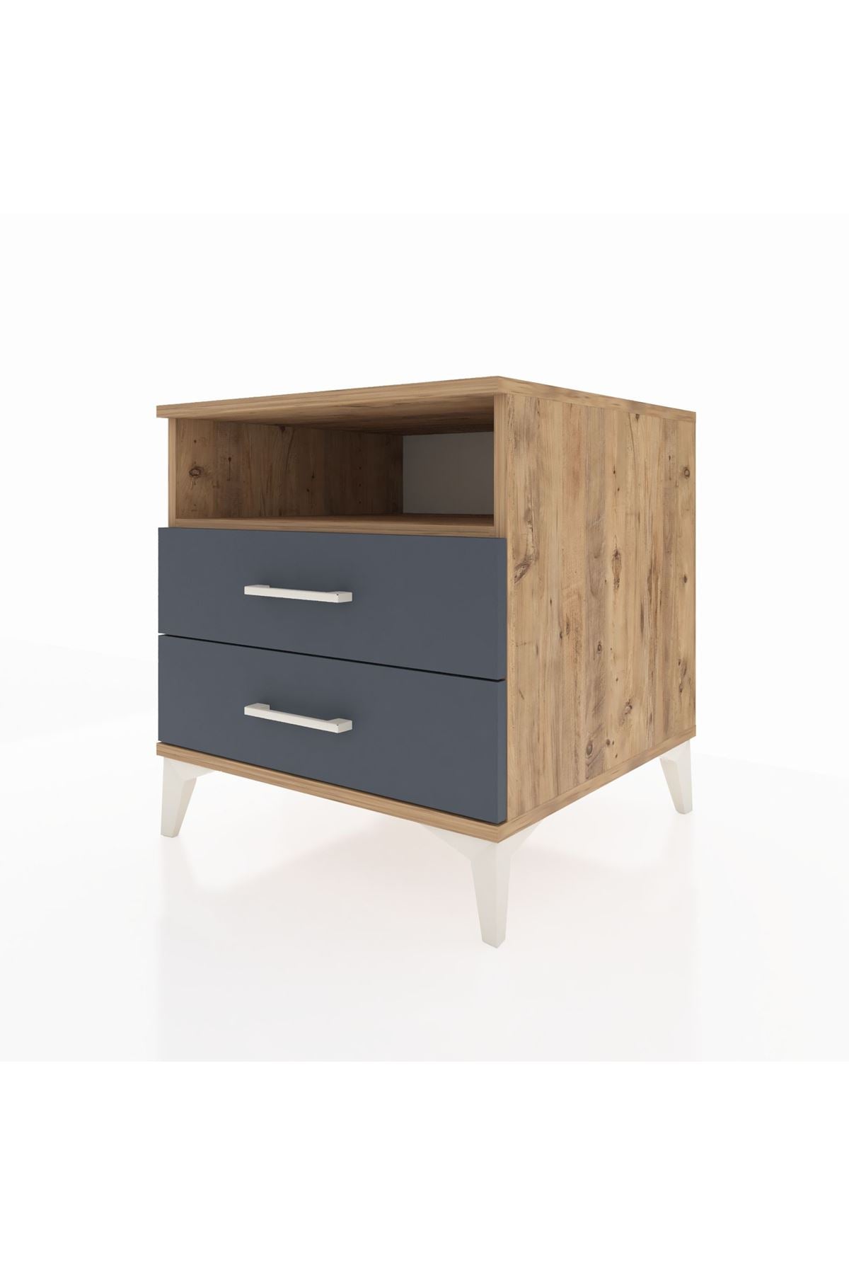 Kronos Komodin Tek Raflı 2 Çekmeceli 60x59x64 Çam-Antrasit