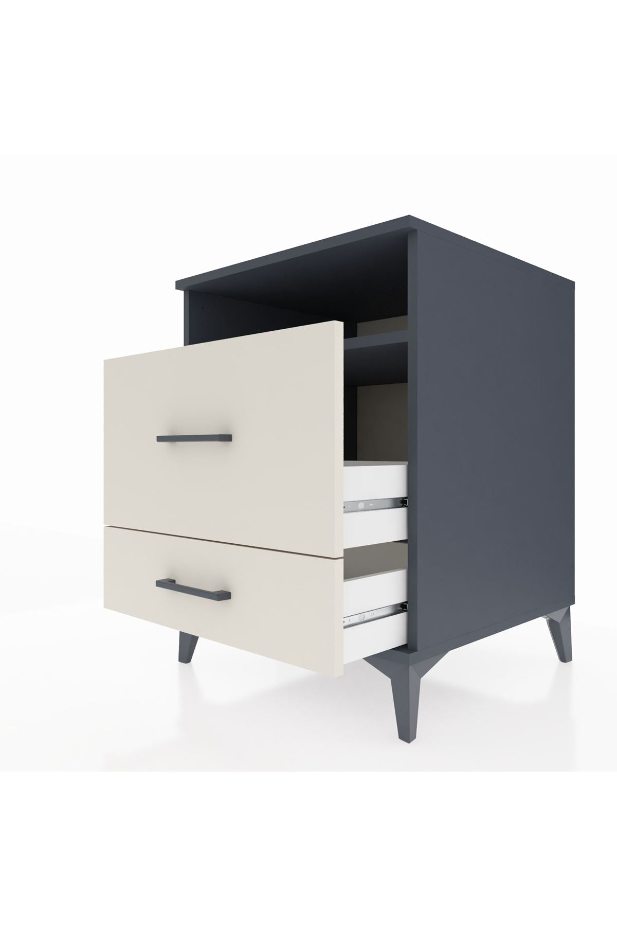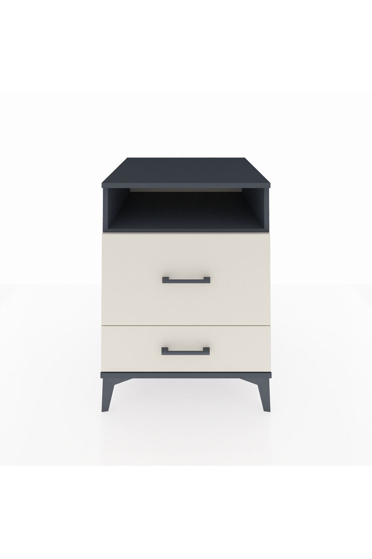 Kronos Komodin Tek Raflı 2 Çekmeceli 60x59x80 Antrasit-Aytaşı