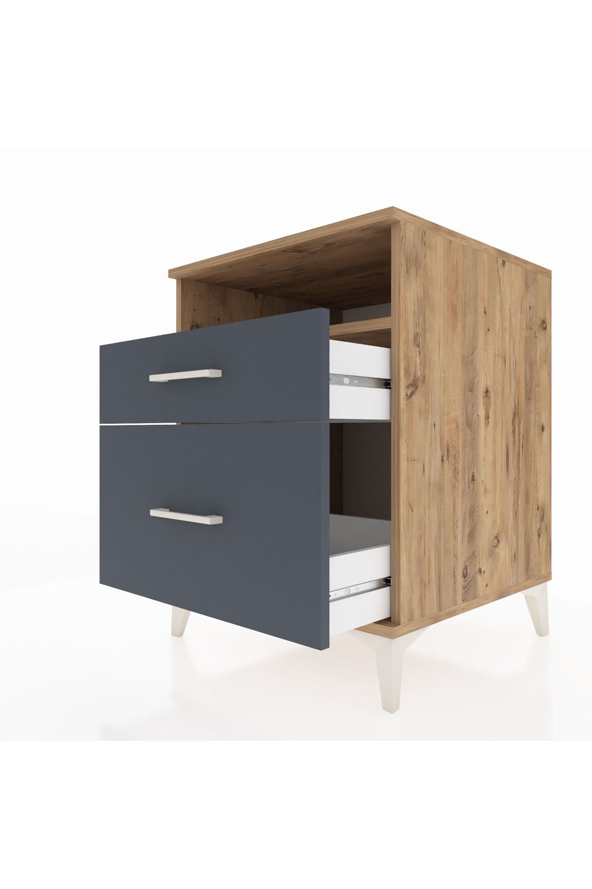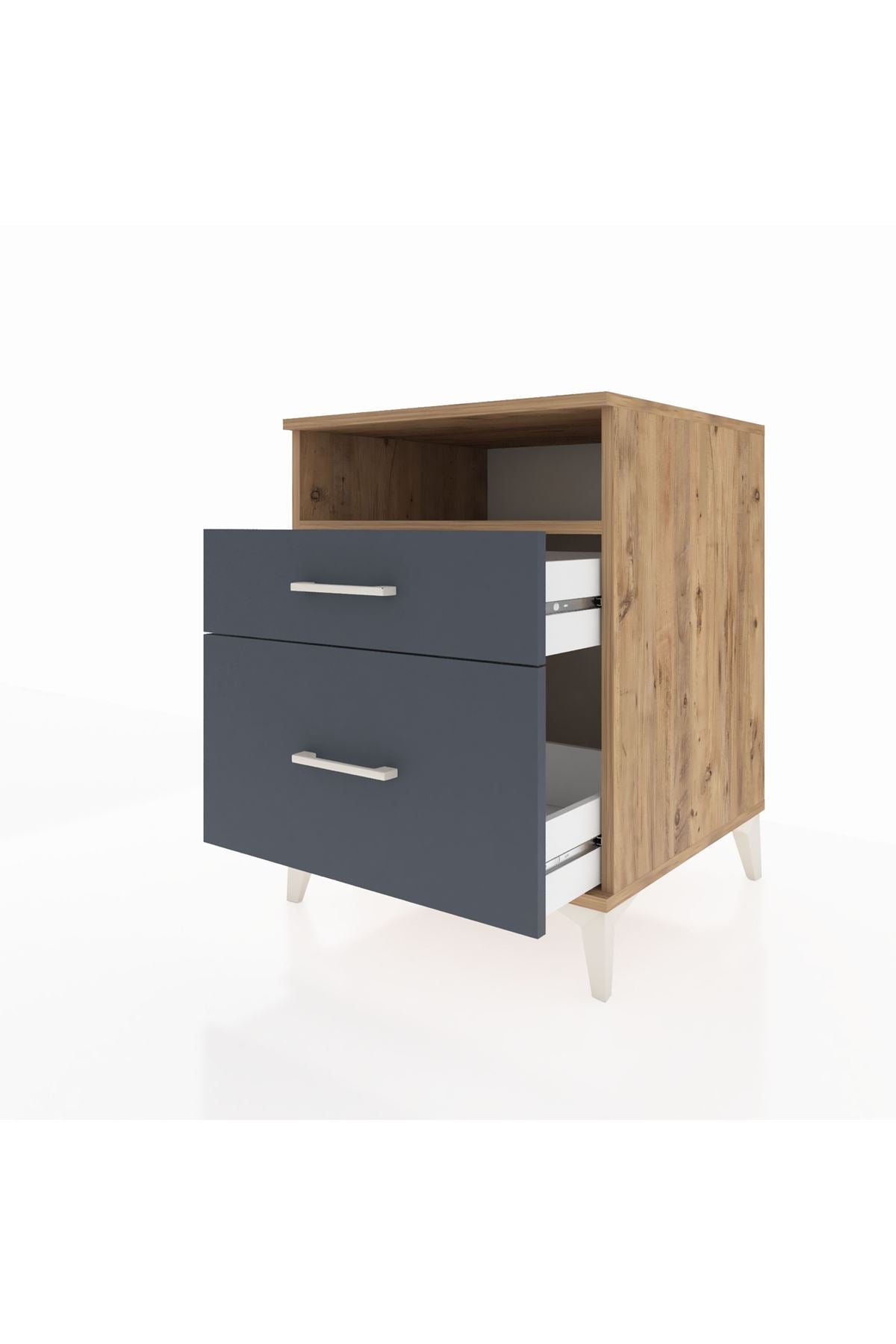 Kronos Komodin Tek Raflı 2 Çekmeceli 60x59x80 Çam-Antrasit
