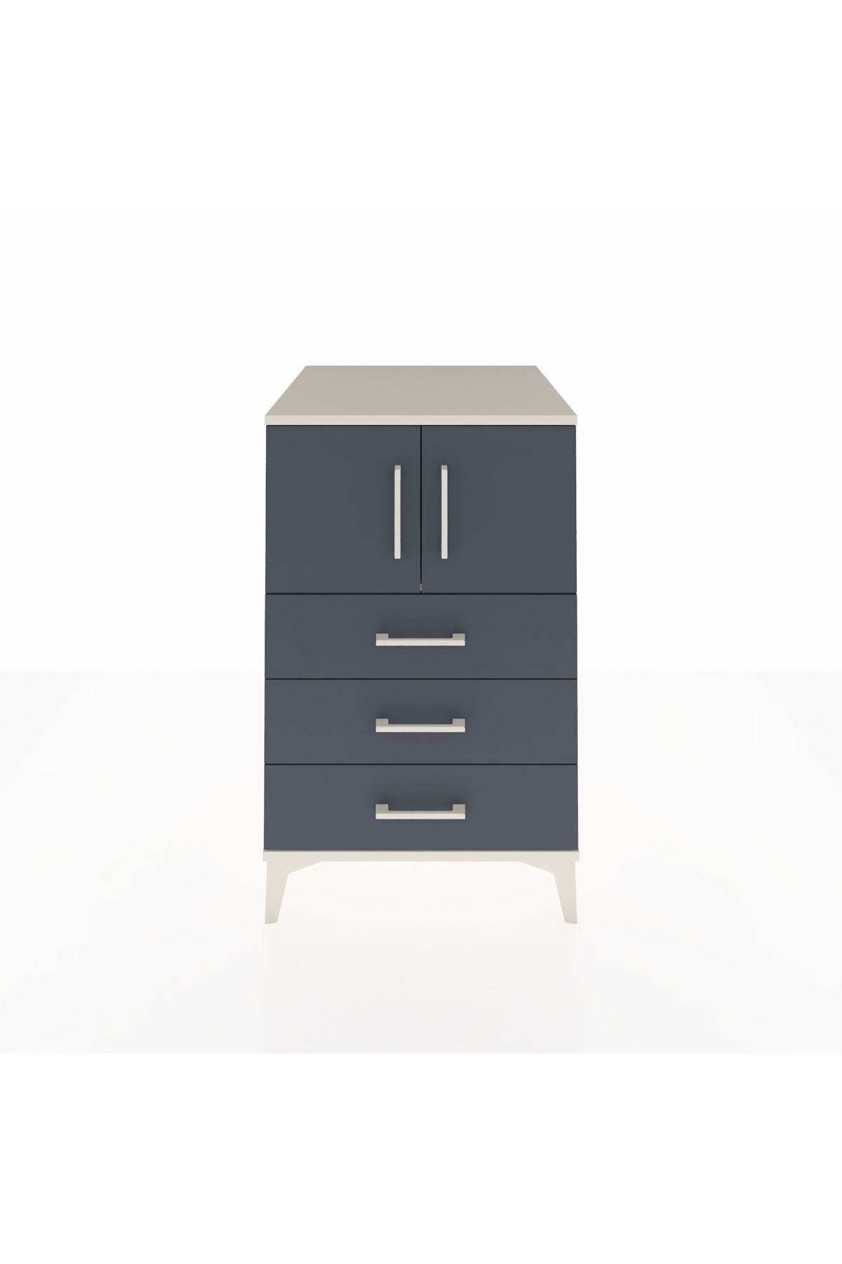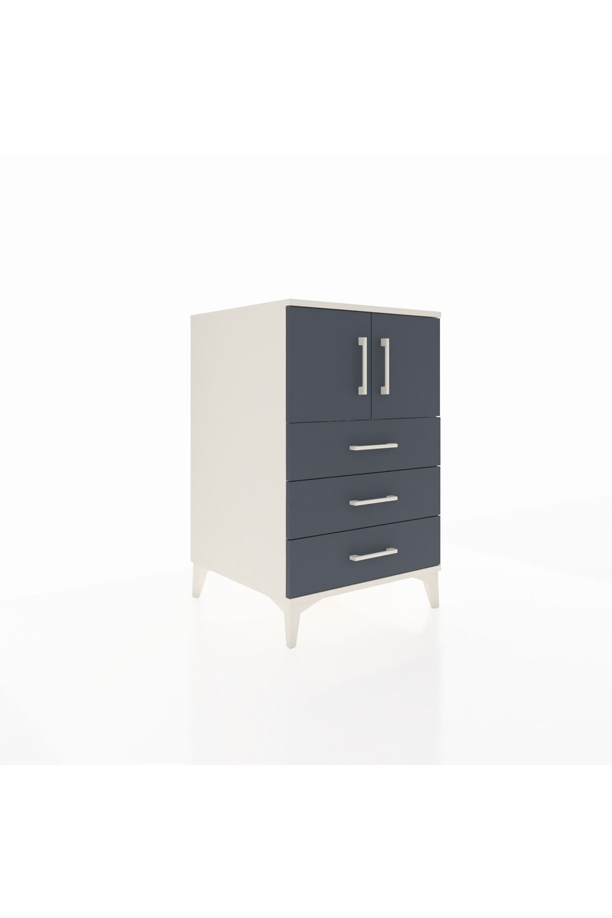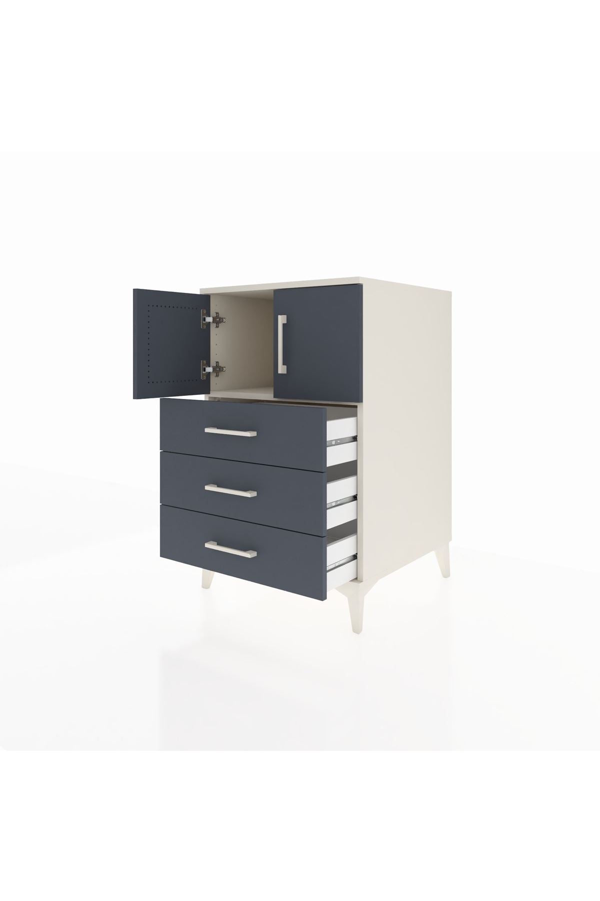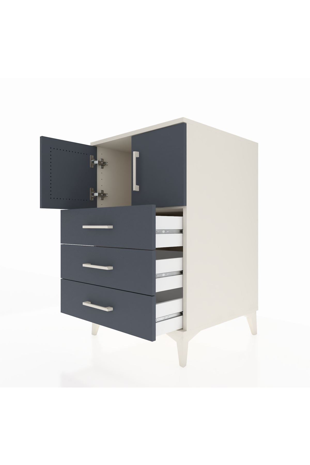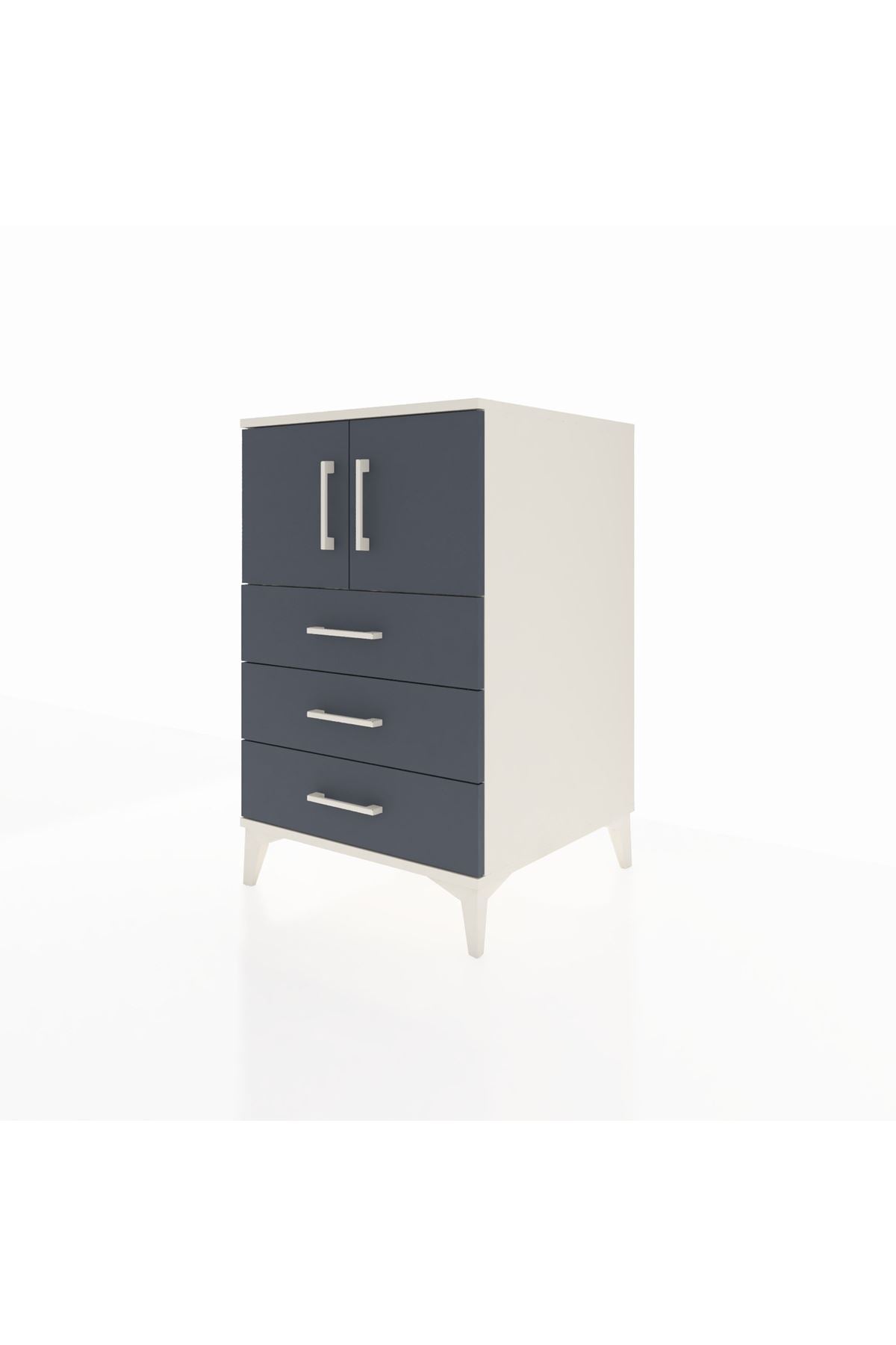 Kompakt ölçüleriyle dar alanlarda bile verimli depolama sağlar. Üst yüzeyi kitap, lamba veya dekoratif objeler için ideal bir platform sunar. Ayarlanabilir raf sayesinde farklı yüksekliklerde kutular, klasörler veya el sanatları malzemeleri rahatça yerleştirilebilir. Metal ayak yapısı zeminden yükselttiği için temizliği kolaylaştırır ve nemli zeminlerde kullanımda ekstra koruma sağlar. Çekmece konfigürasyonu değiştirilebilir olduğu için gece komodini, antre saklama ünitesi veya çocuk odası dolabı olarak farklı ihtiyaçlara kolayca uyum gösterir.