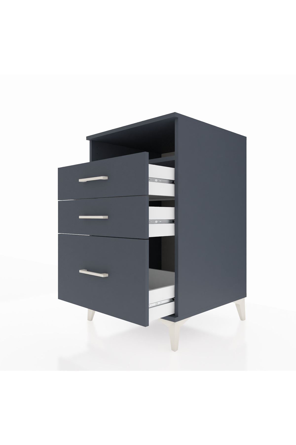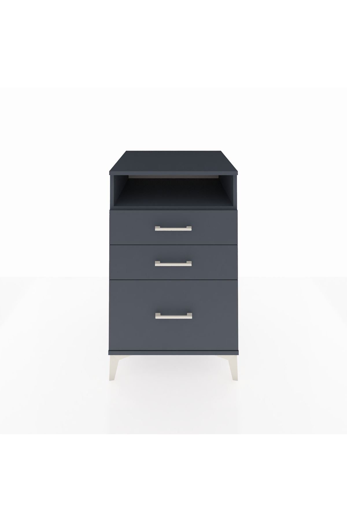 Kronos Komodin Tek Raflı 3 Çekmeceli 60x59x96 Antrasit-Antrasit