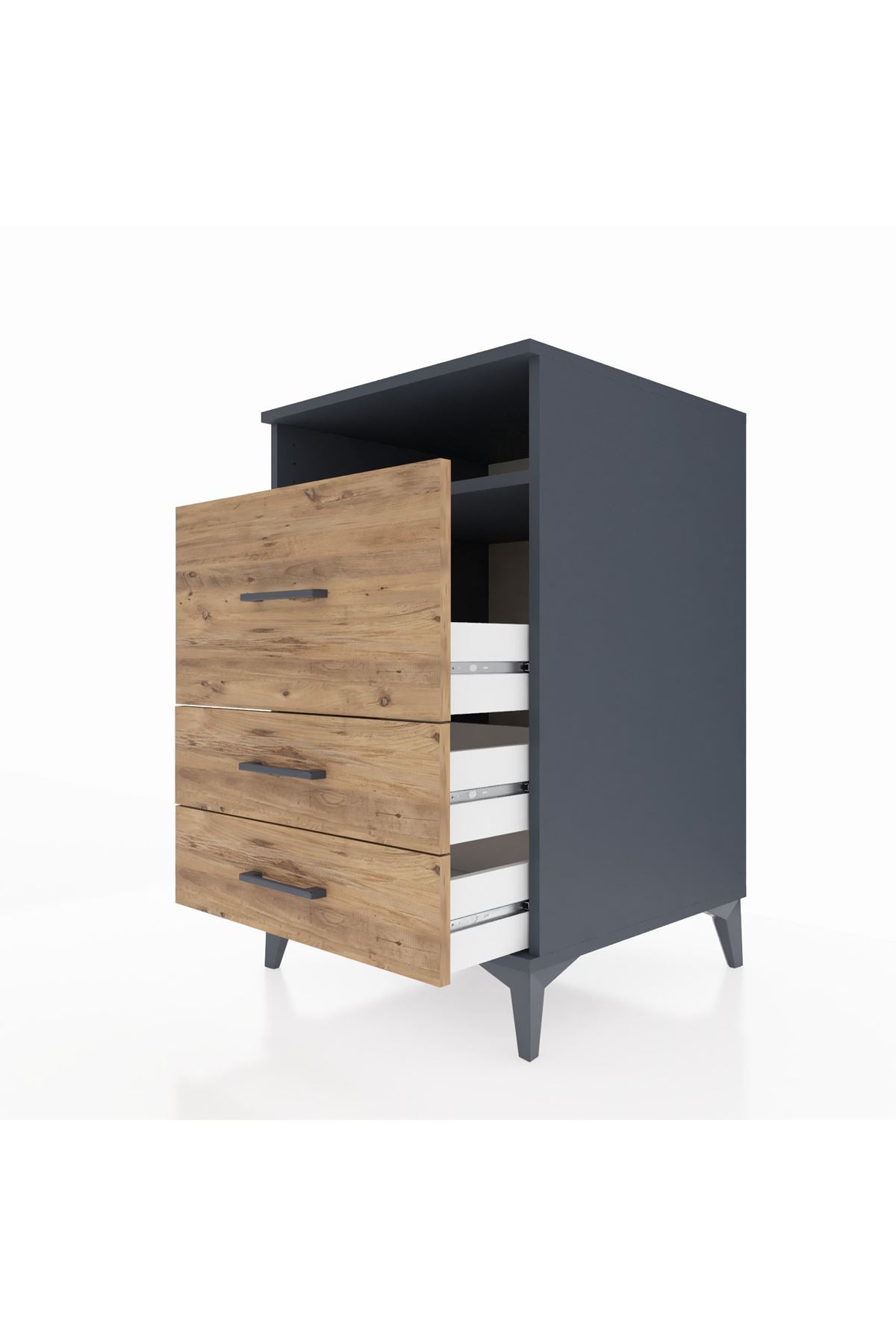 Kronos Komodin Tek Raflı 3 Çekmeceli 60x59x96 Antrasit-Çam – Zamansız Düzen