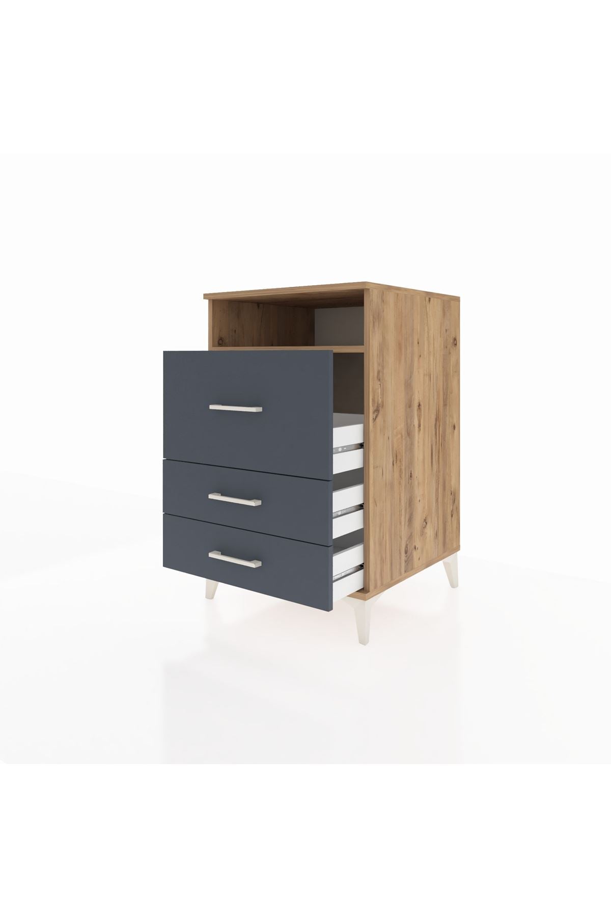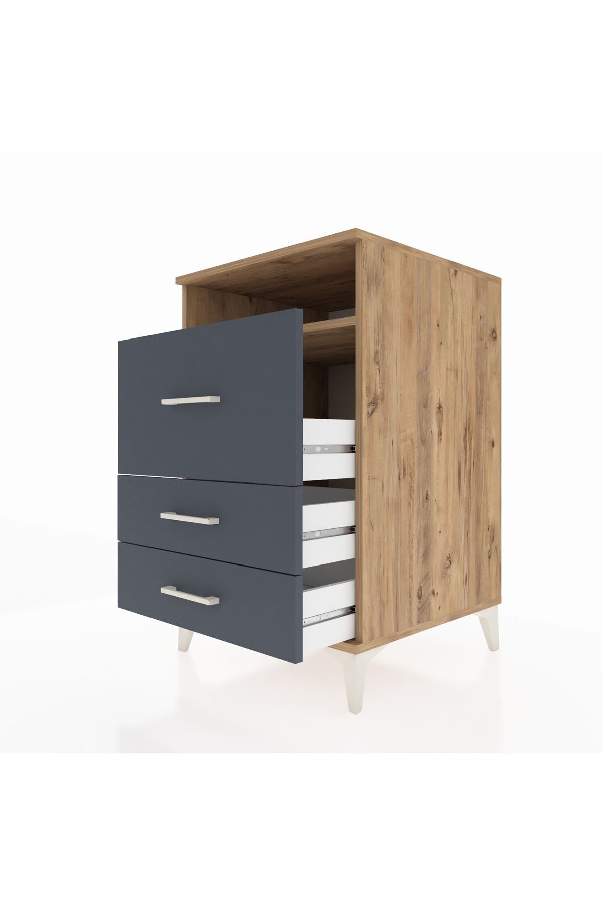 Kronos Komodin Tek Raflı 3 Çekmeceli 60x59x96 Çam-Antrasit – Fonksiyonel ve Zarif Depolama