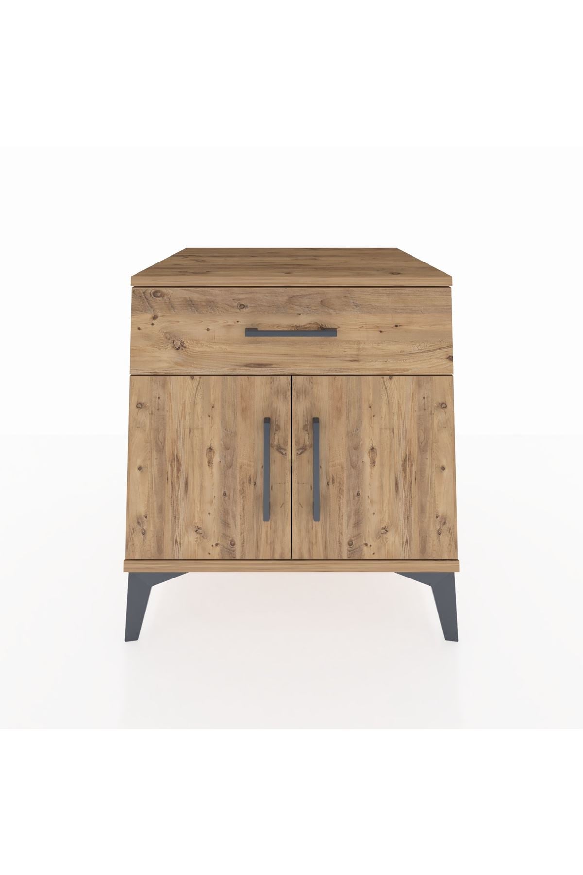 Kronos Komodin Tek Raflı Tek Çekmeceli 2 Kapaklı 60x59x64 Çam-Çam