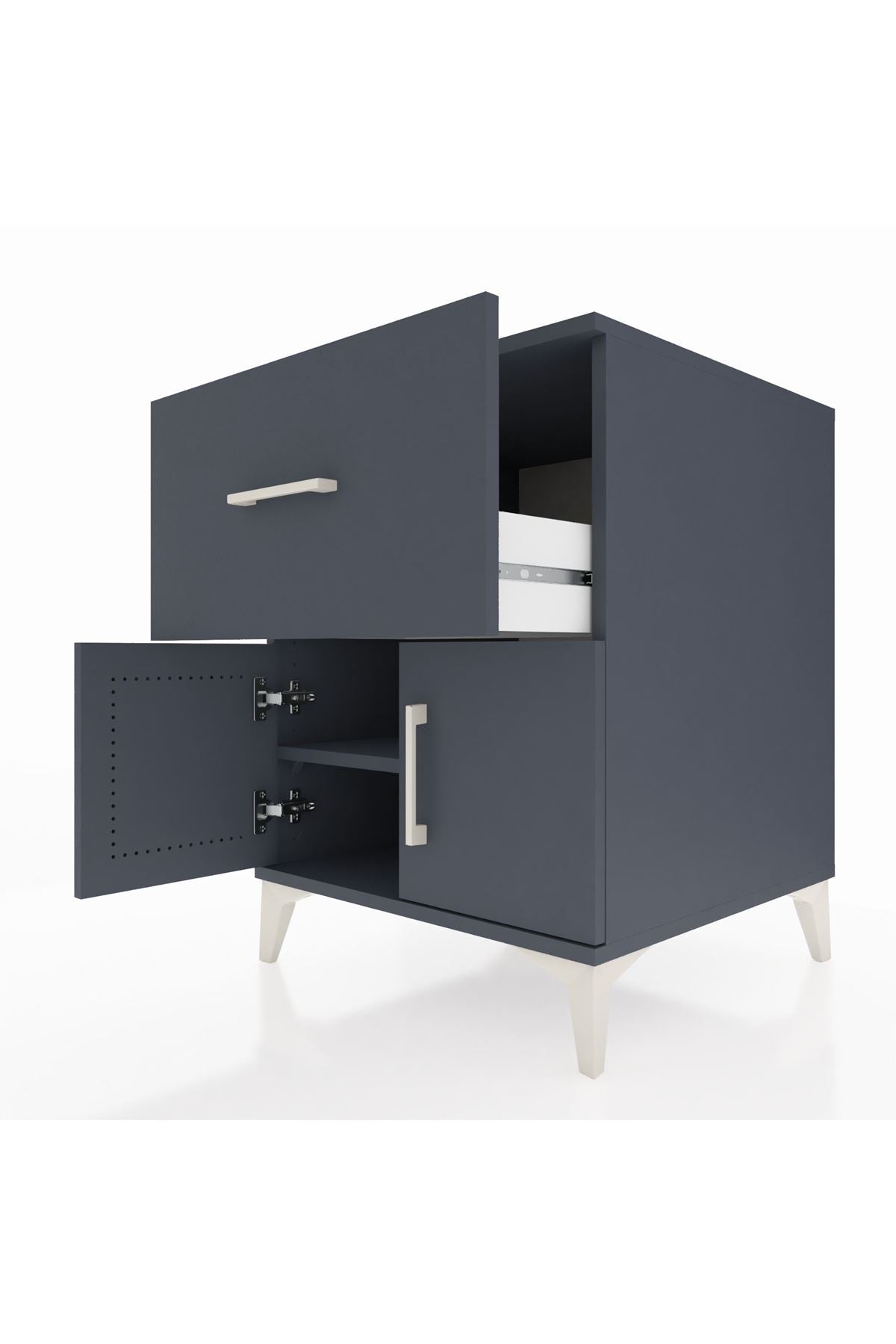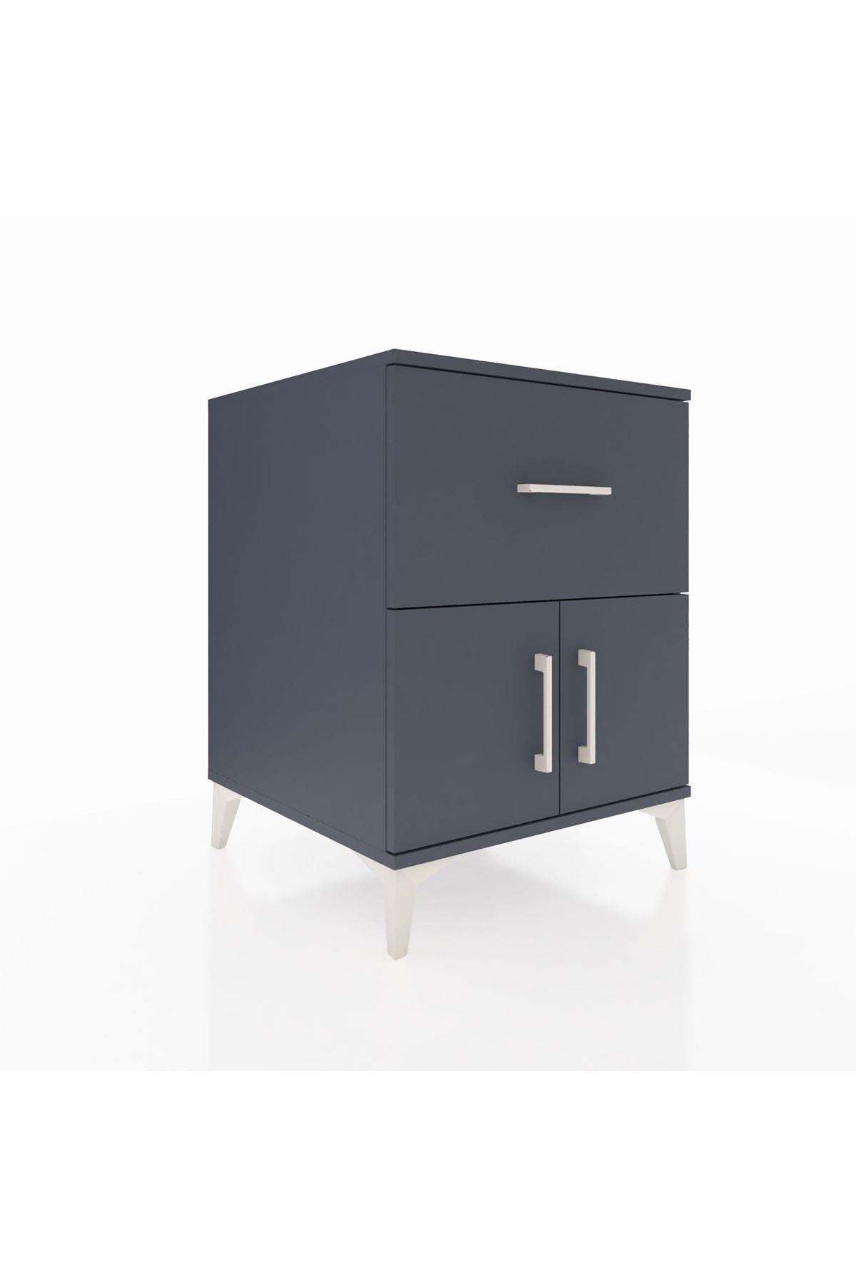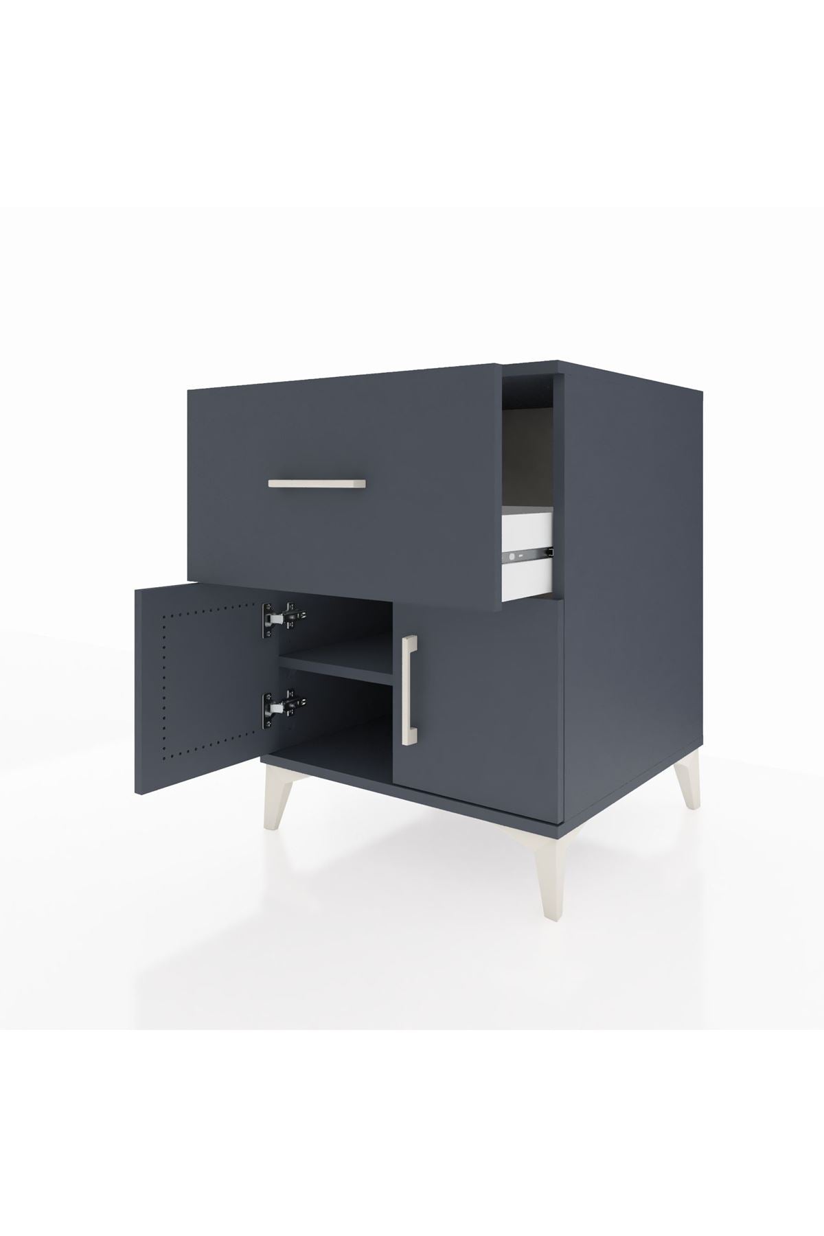 Kronos Komodin Tek Raflı Tek Çekmeceli 2 Kapaklı 60x59x80 Antrasit-Antrasit