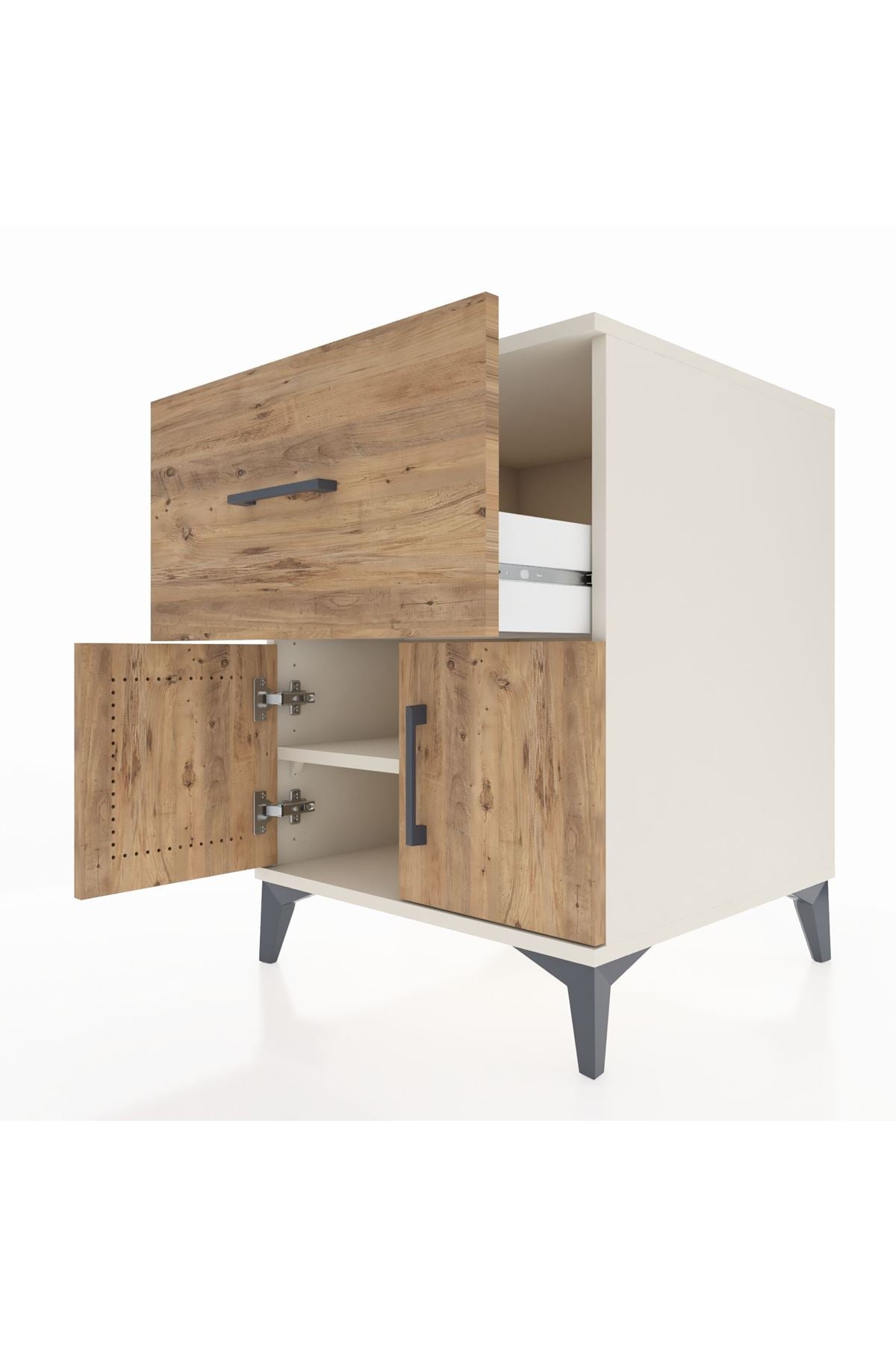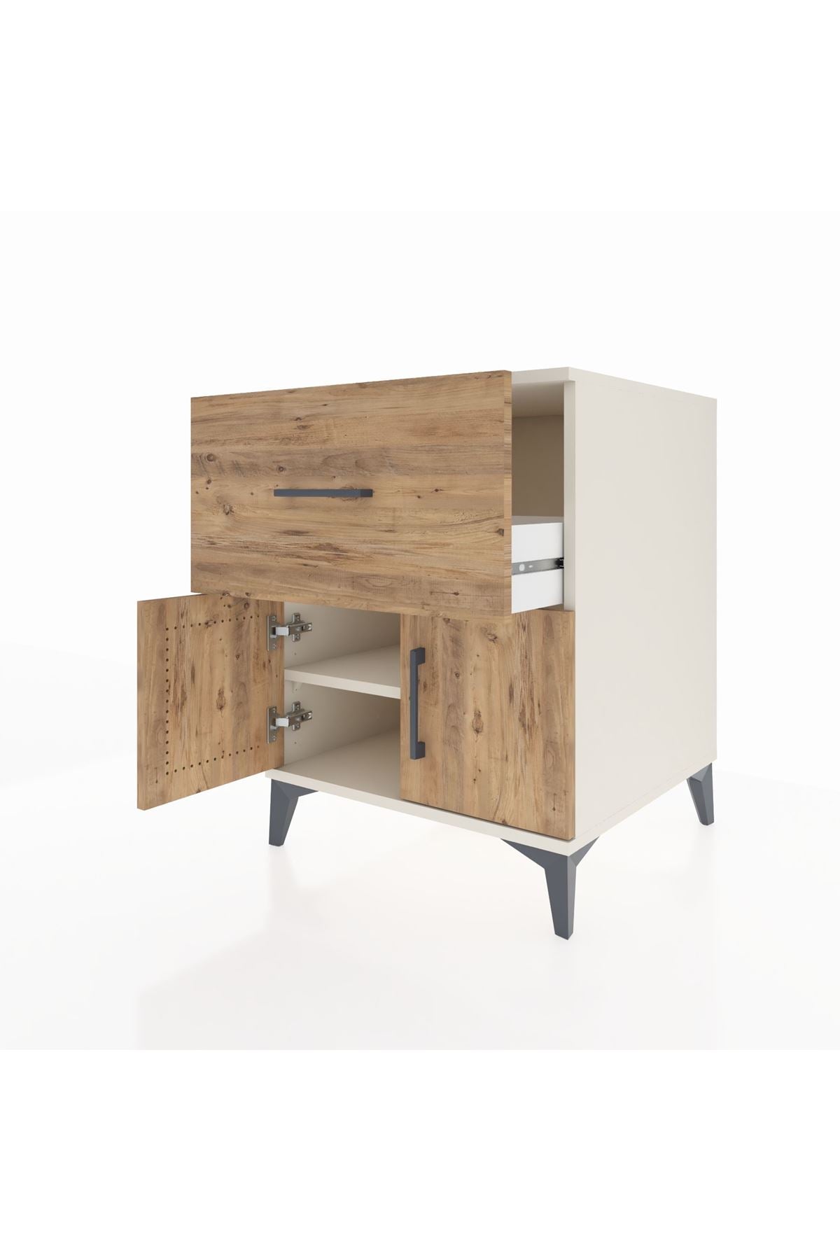Kronos Komodin Tek Raflı Tek Çekmeceli 2 Kapaklı 60x59x80 Aytaşı-Çam