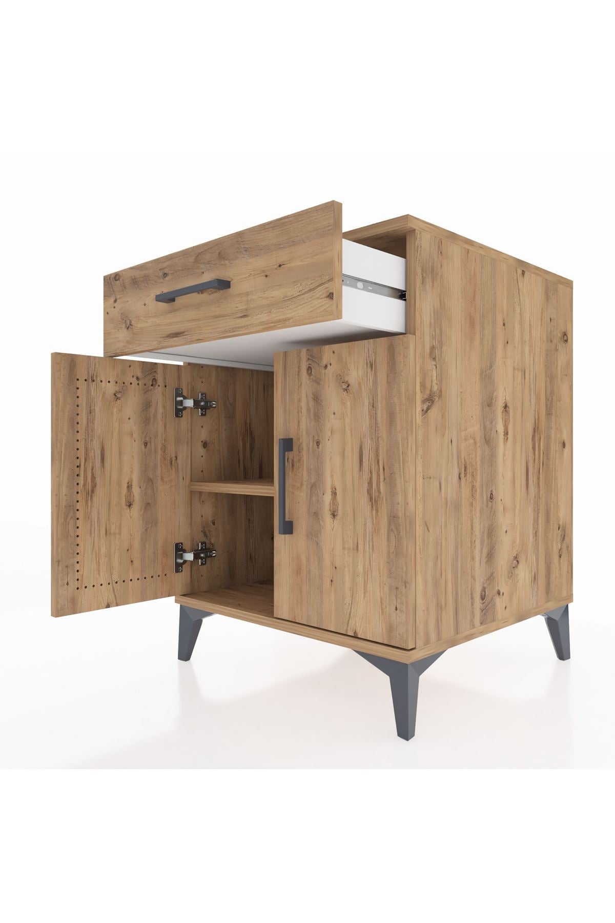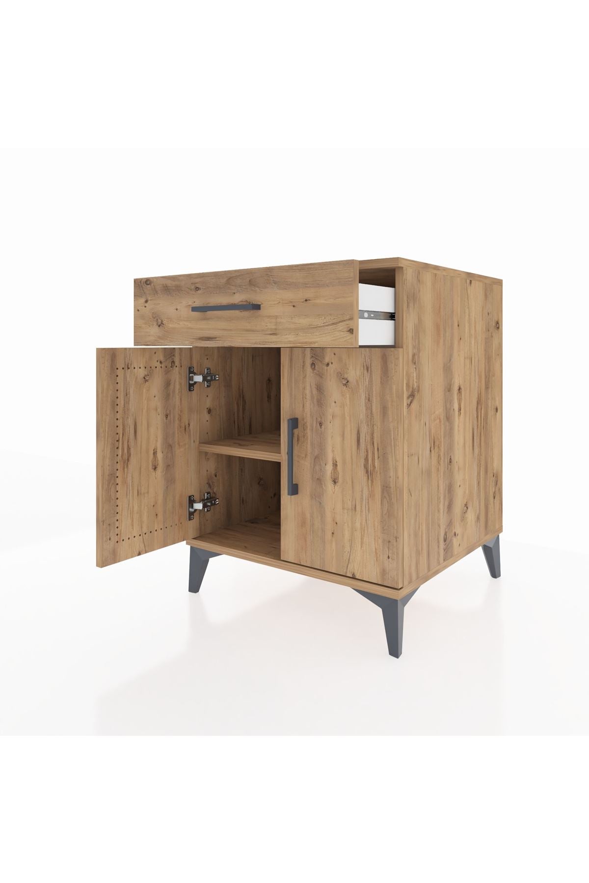 Kronos Komodin Tek Raflı Tek Çekmeceli 2 Kapaklı 60x59x80 Çam-Çam