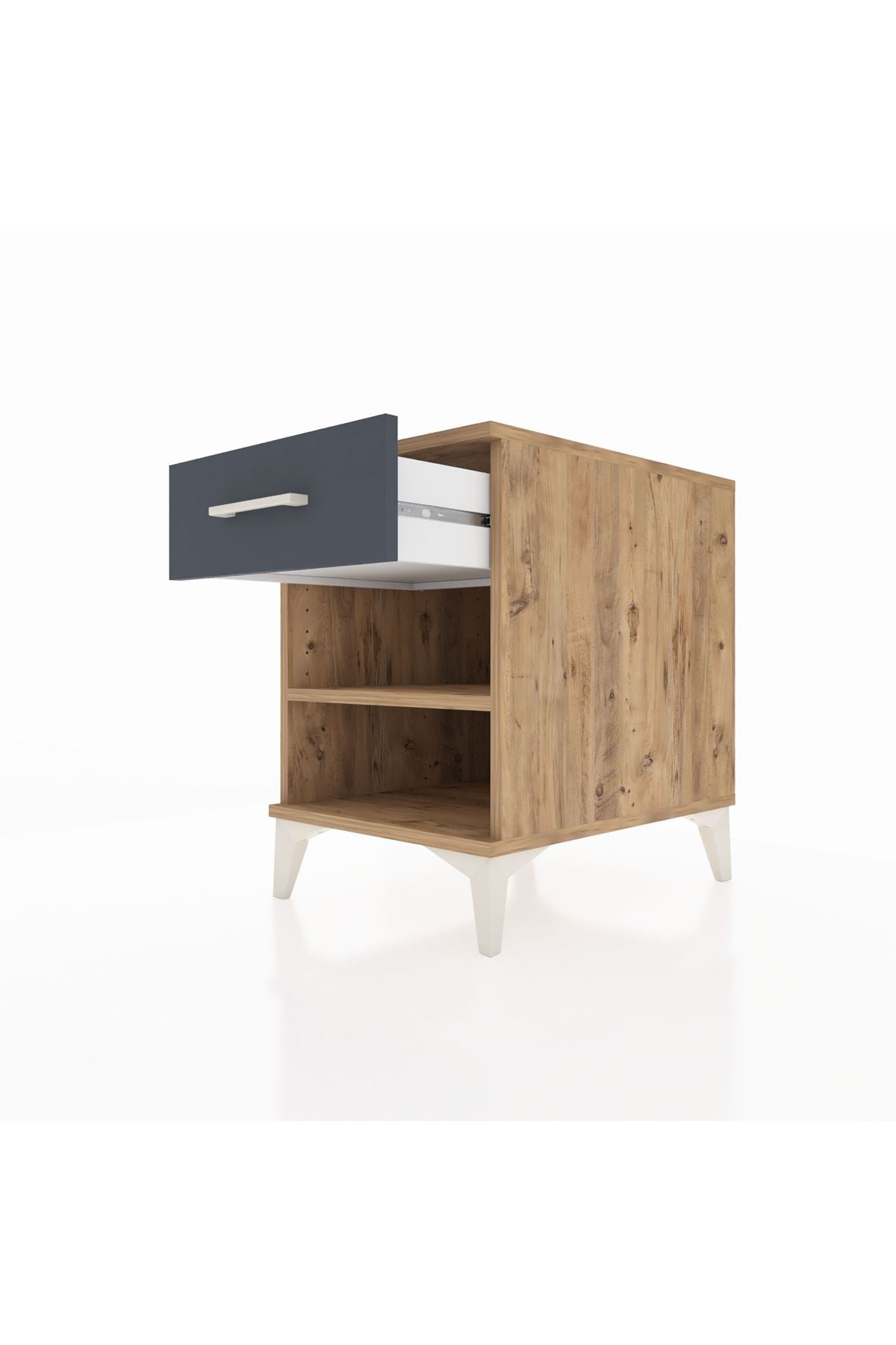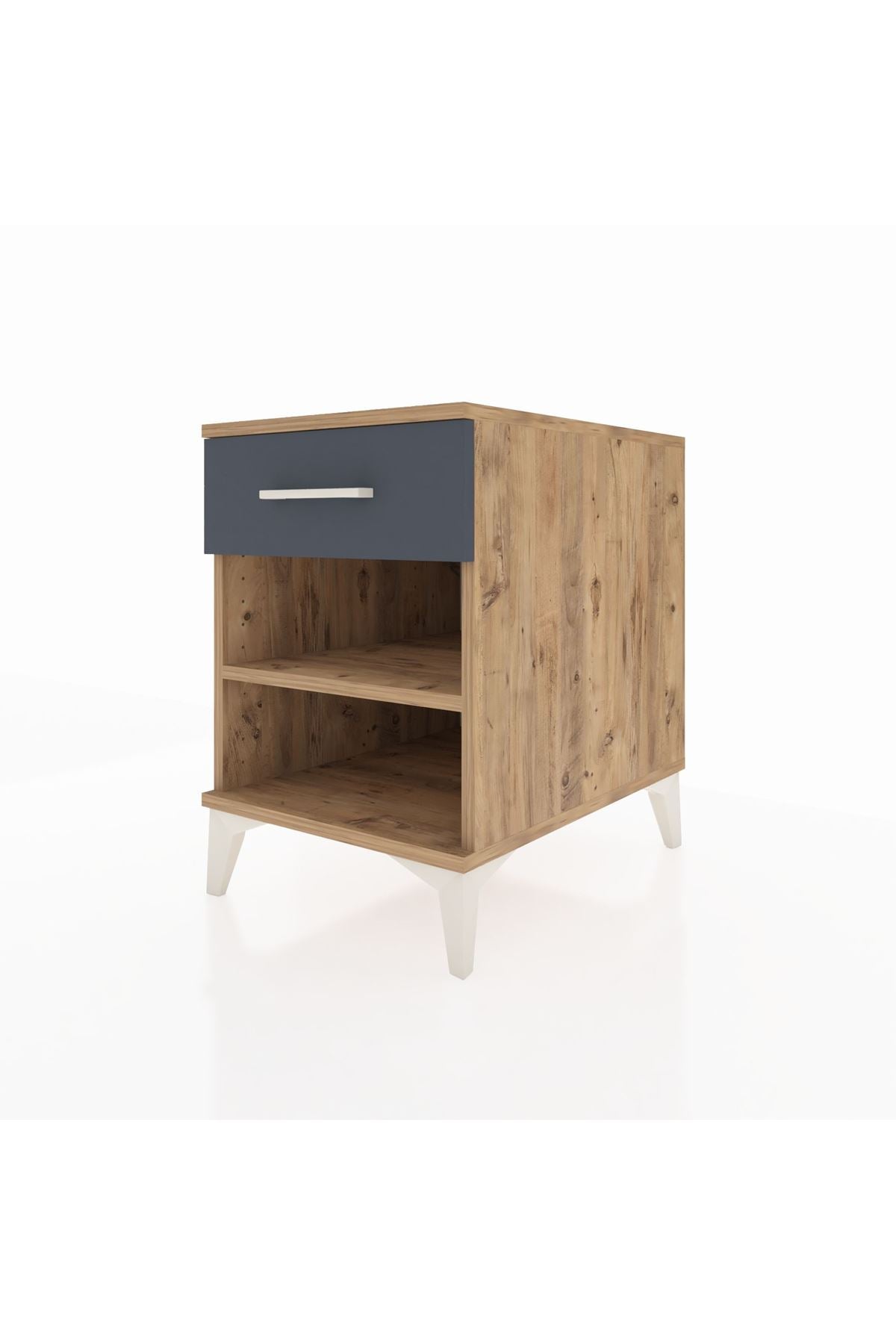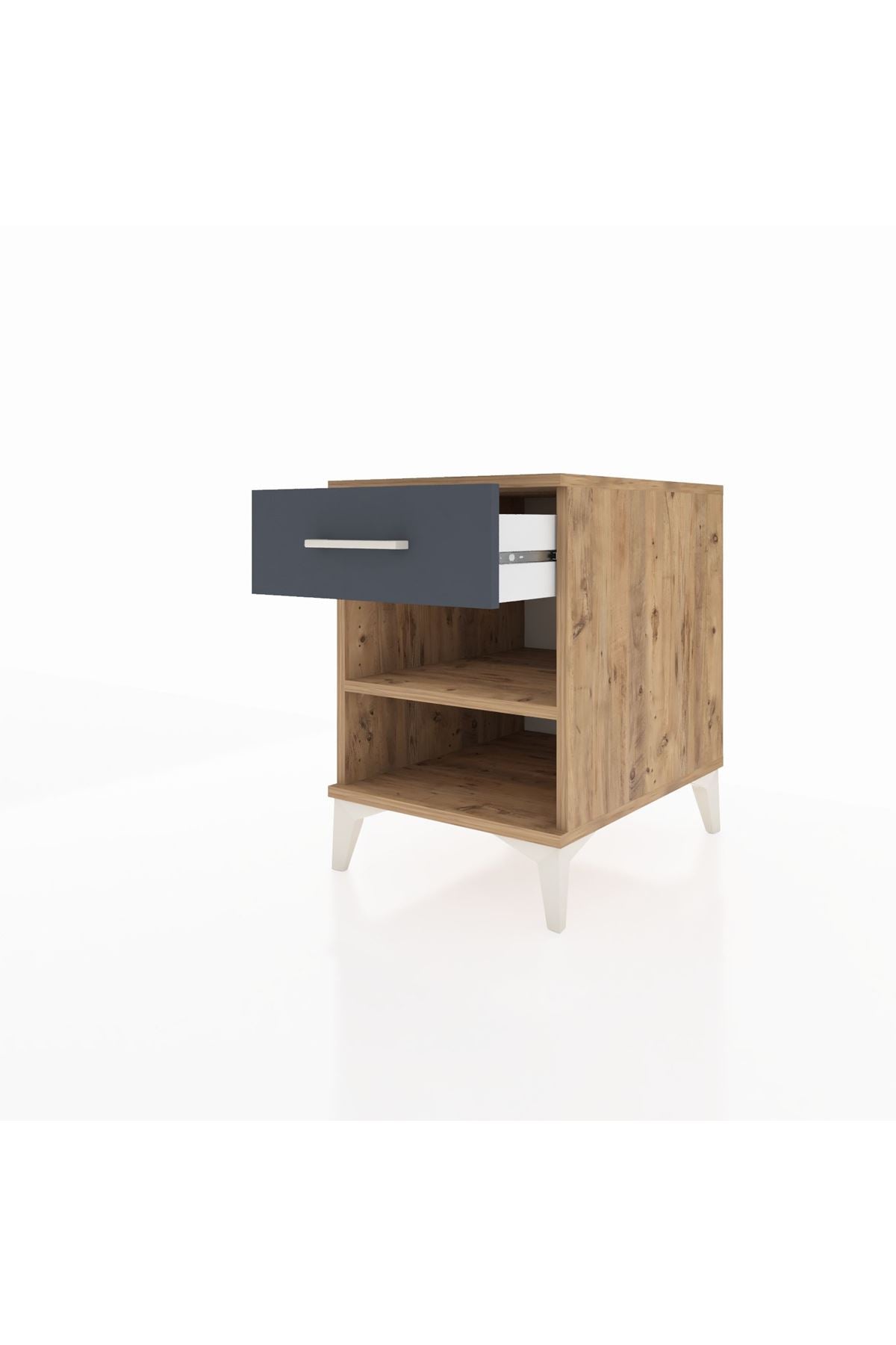 Kronos Komodin Tek Raflı Tek Çekmeceli 44x59x64 Çam-Antrasit