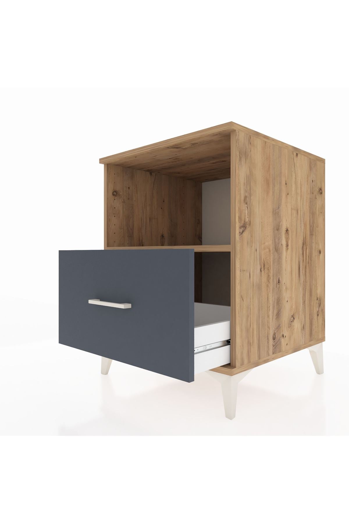 Kronos Komodin Tek Raflı Tek Çekmeceli 60x59x80 Çam-Antrasit