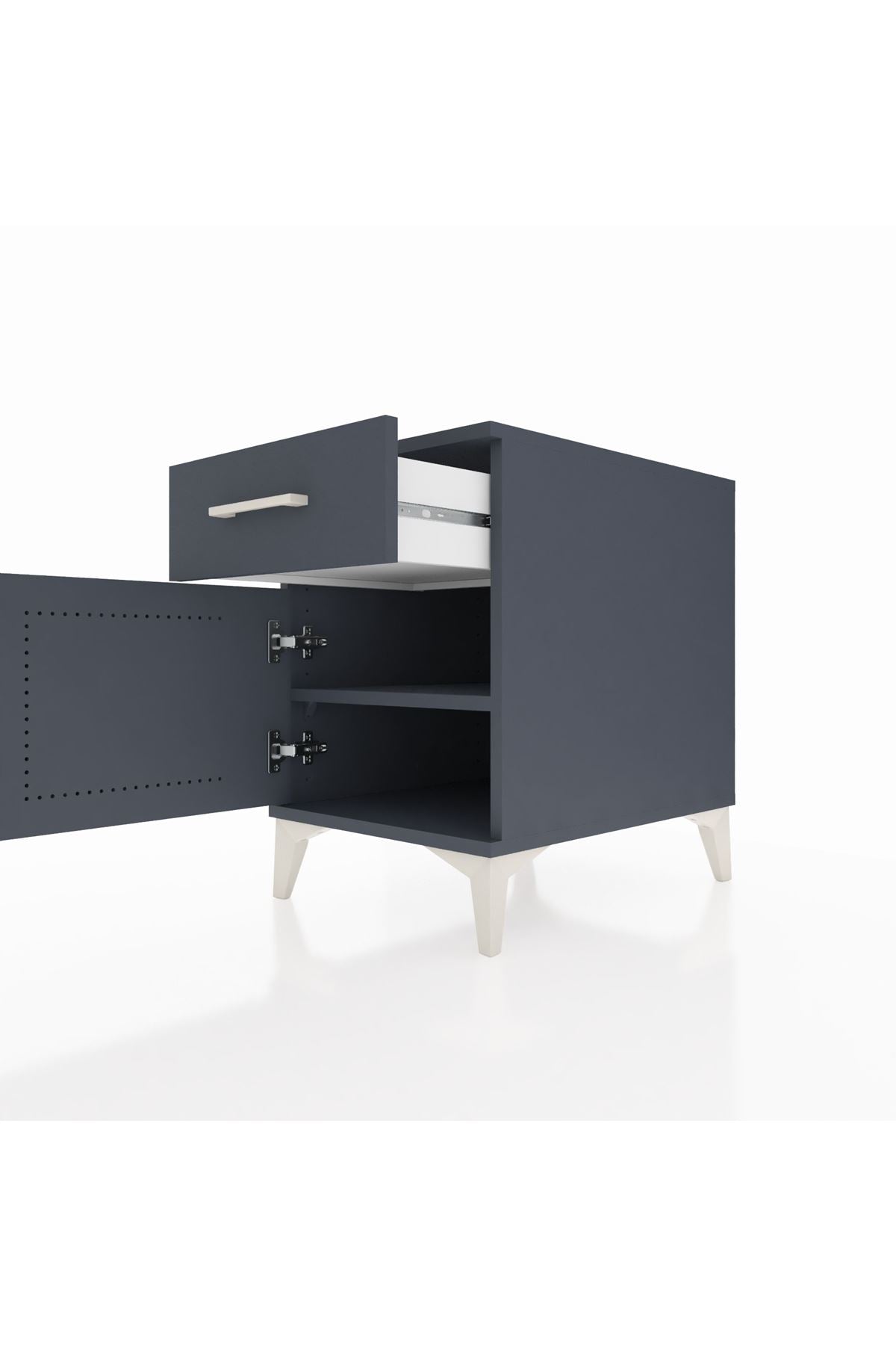 Kronos Komodin Tek Raflı Tek Çekmeceli Tek Kapaklı 44x59x64 Antrasit-Antrasit
