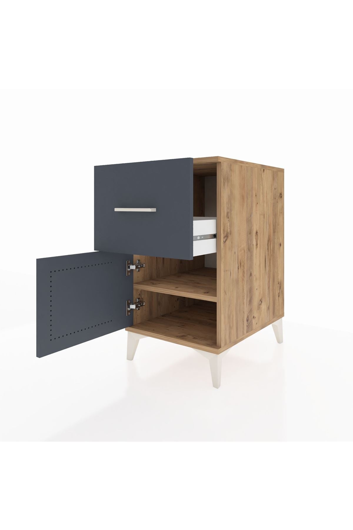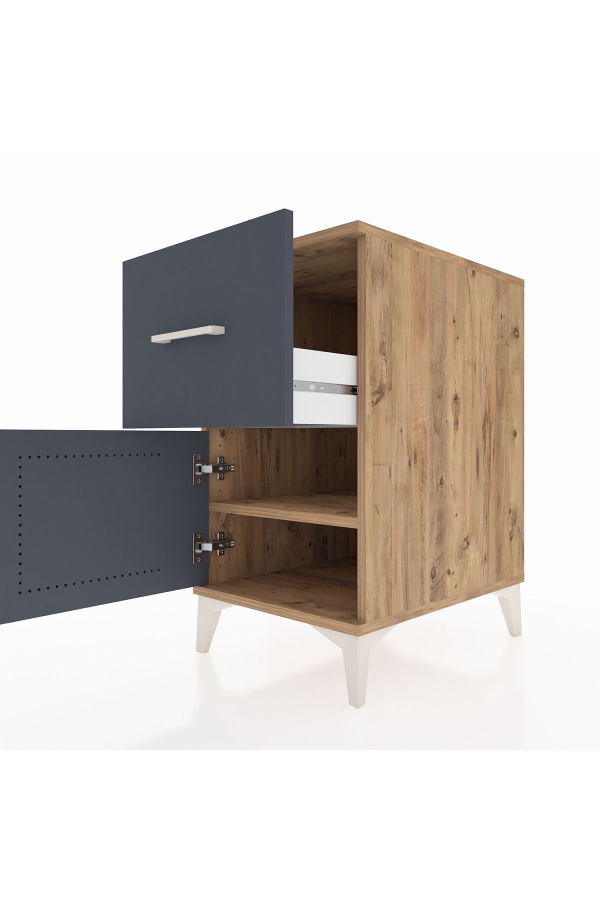 Kronos Komodin Tek Raflı Tek Çekmeceli Tek Kapaklı 44x59x80 Çam-Antrasit