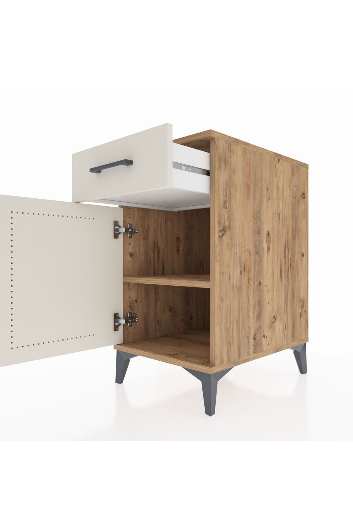 Kronos Komodin Tek Raflı Tek Çekmeceli Tek Kapaklı 44x59x80 Çam-Aytaşı